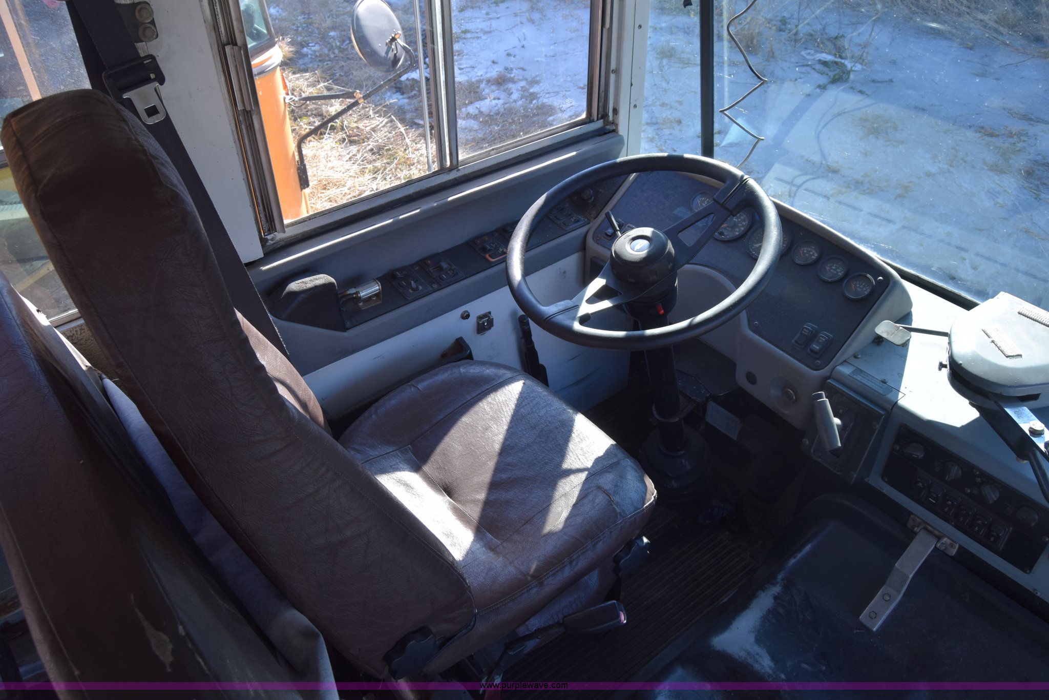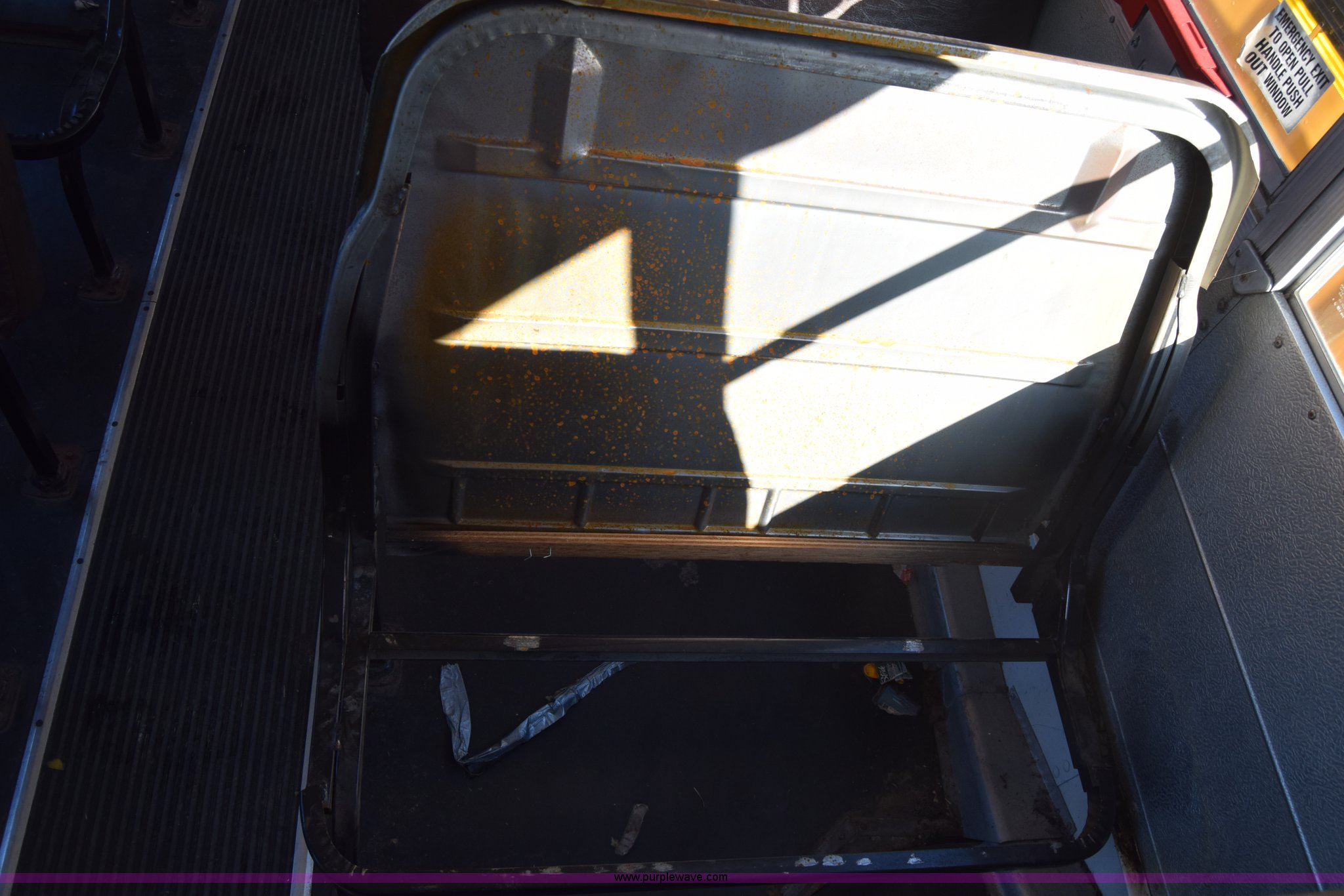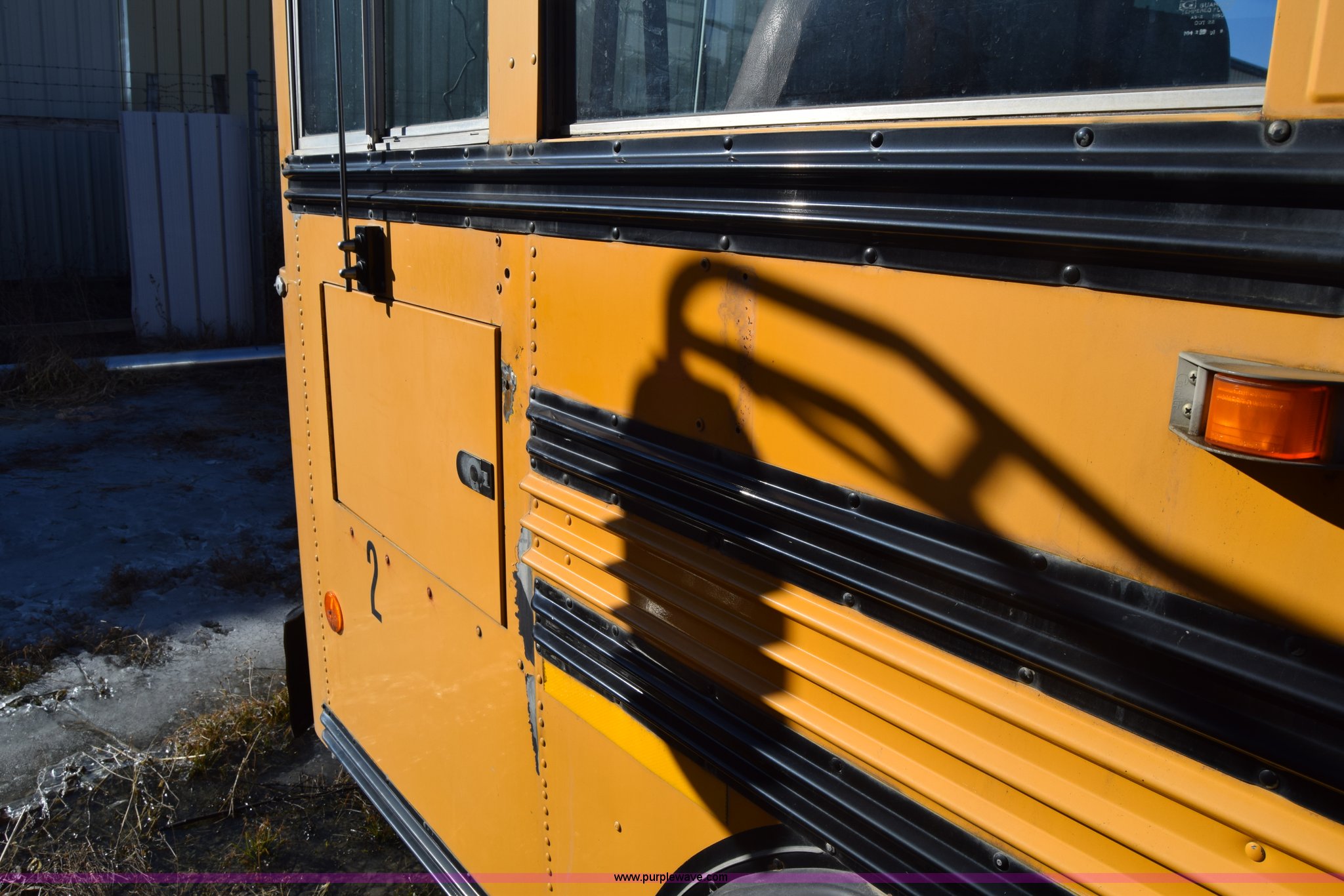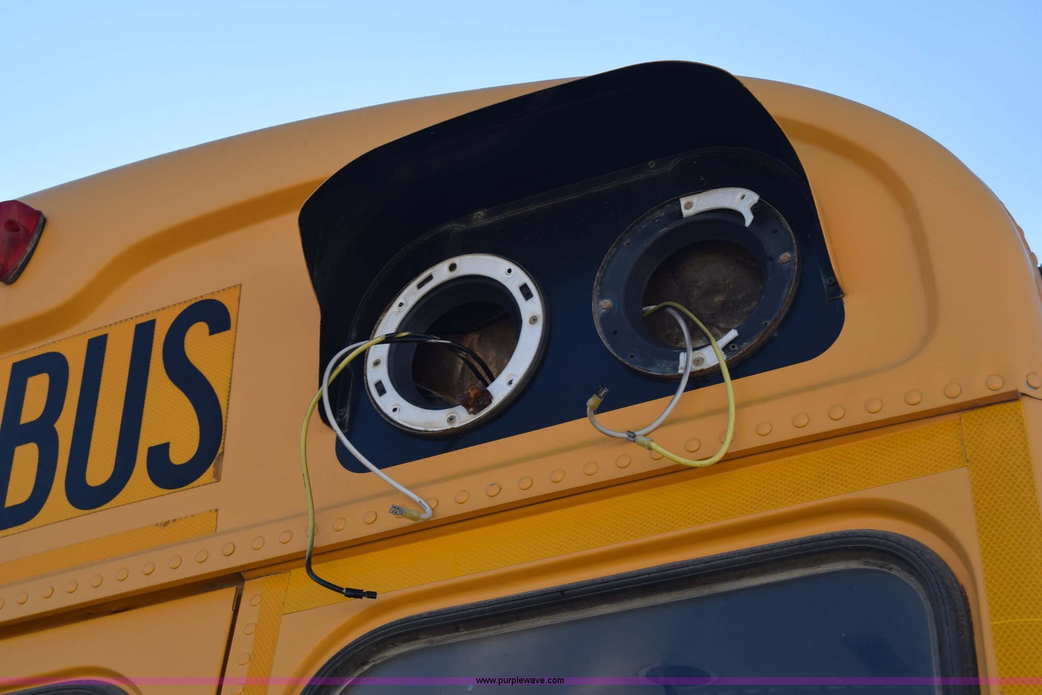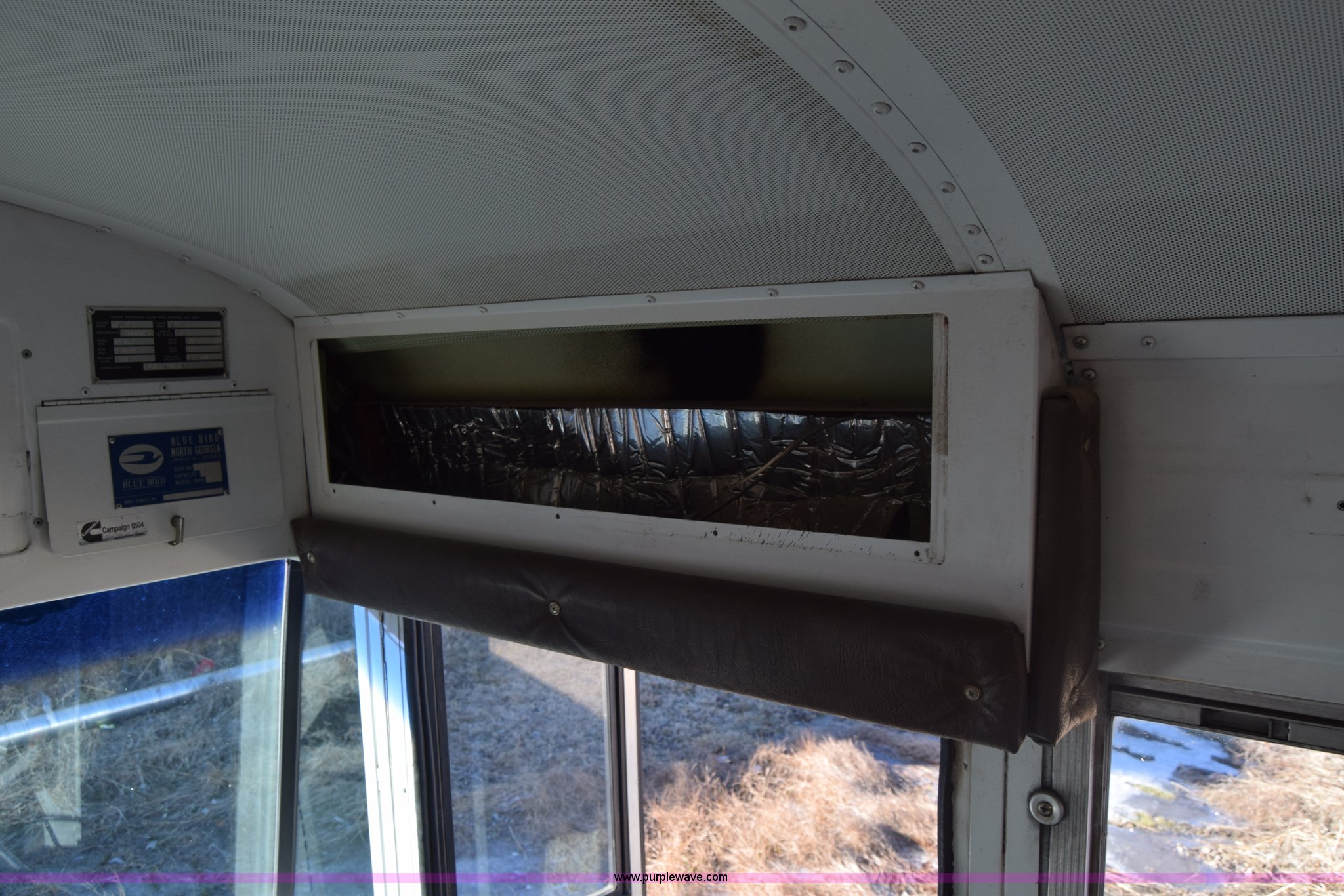 Purple Wave is selling a used Bus in Kansas. This item is a 2002 Blue Bird TC2000 school bus with the following: Unknown miles on odometer, Cummins 5.9L L6 diesel engine, Engine is blown, Automatic transmission, Heat, Cruise, 72 passenger capacity, 10R22.5 tires, GVWR 30,000 lbs, Dead battery, Seats, interior and exterior light have been removed, Dual tires have been removed, Stereo has been removed