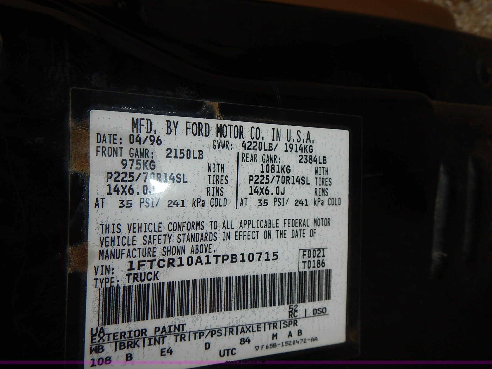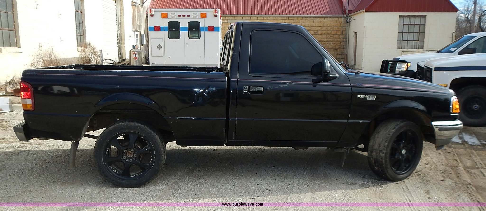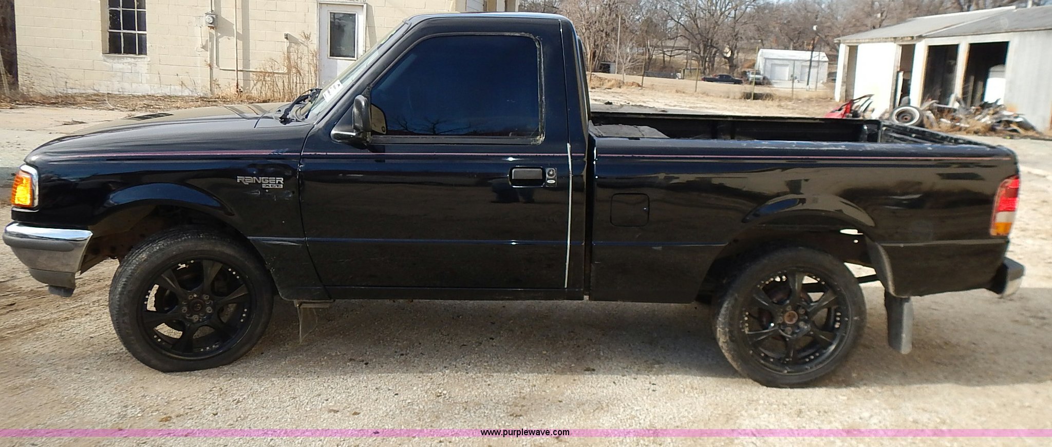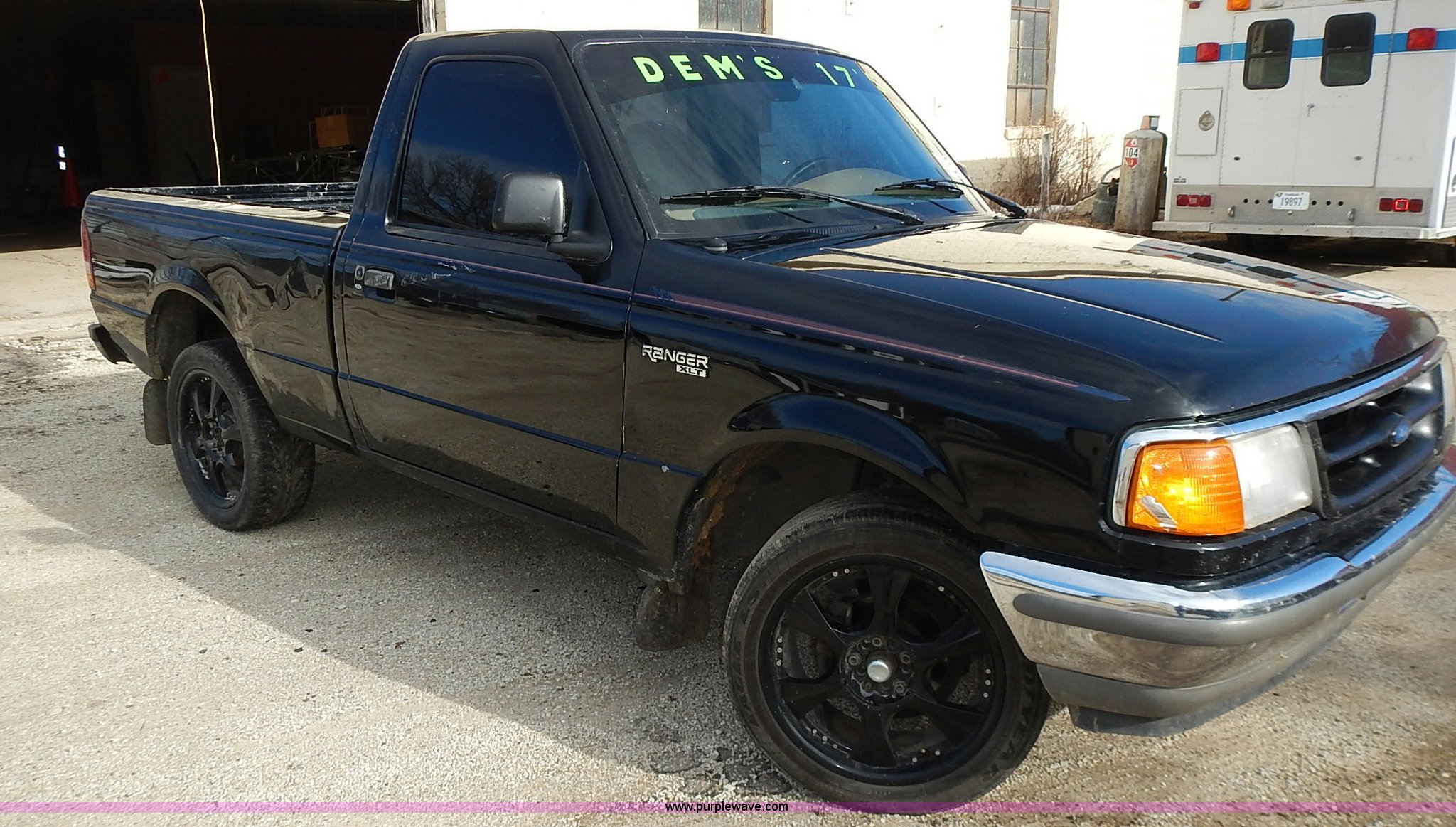Purple Wave is selling a used Compact Pickup or Van in Kansas. This item is a 1996 Ford Ranger XLT pickup truck with the following: 179,958 miles on odometer, 2.3L L4 SOHC 8V gas engine, Four speed manual transmission, AC and heat, AM/FM/CD, Manual windows and locks, Cloth interior, Alpine 12" speakers with box, Ball hitch, Trailer wiring, Custom wheels and tires, 225/50R18 tires, Recently replaced battery, Interior/exterior cosmetic damage, Dents, Scratches, Cracked rear view mirror, Tailgate doesn't unlatch, Exhaust needs to be replaced