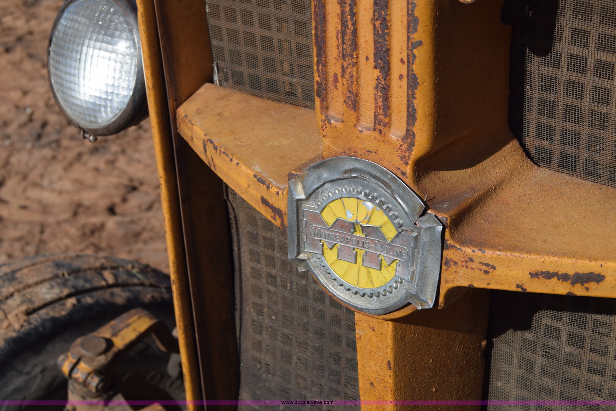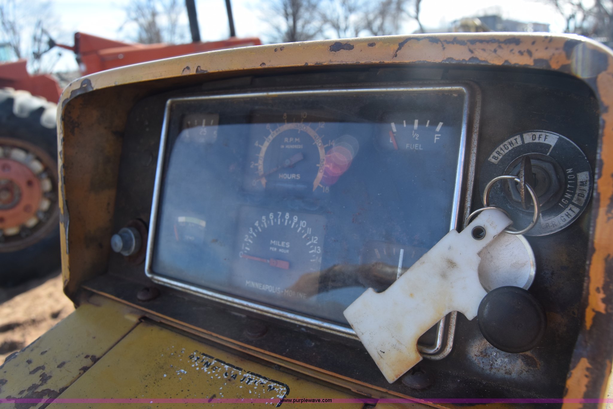 Purple Wave is selling a used Tractor in Kansas. This item is a Minneapolis Moline 445 tractor with the following: Four cylinder gas engine, 40 HP, Partial powershift transmission, 10F-2R gears, Work lights, Three point, 540 PTO, Rear hydraulic remote set, 8.5L-15 front tires, 14.9-28 rear tires