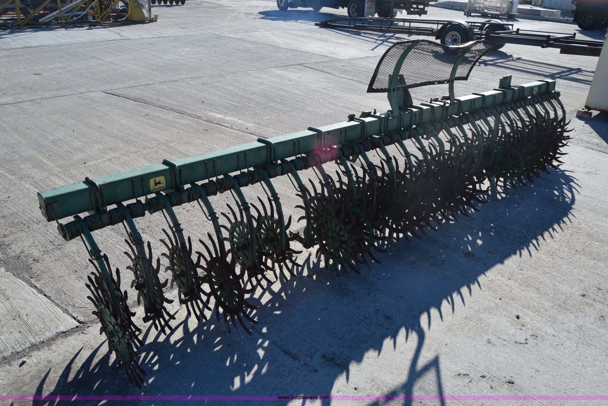 Purple Wave is selling a used Rotary Tillage in Missouri. This item is a John Deere 400 rotary hoe with the following: 15'W, Trash guard, Three point