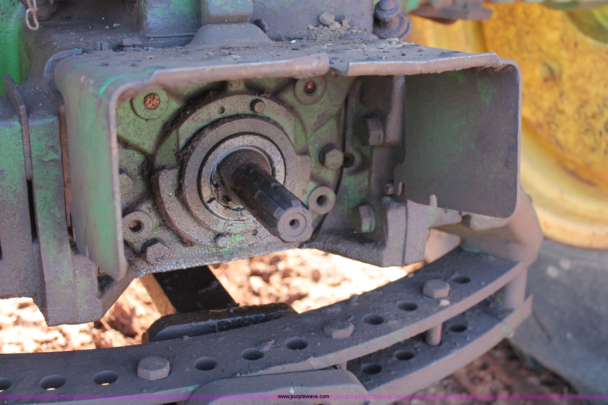 Purple Wave is selling a used Tractor in Oklahoma. This item is a 1967 John Deere 4020 tractor with the following: 720 hours on meter, John Deere six cylinder diesel engine, 90 HP, Synchro transmission, 8F-2R gears, Open cab, Suspension seat, 540/1000 PTO, Draw bar, Angle adjustable, (2) rear hydraulic remote sets, (3) suitcase weights, (2) wheel weights, 100" wheelbase, 16" front tires, 18.4R34 rear tires, Serial T213R166590R
