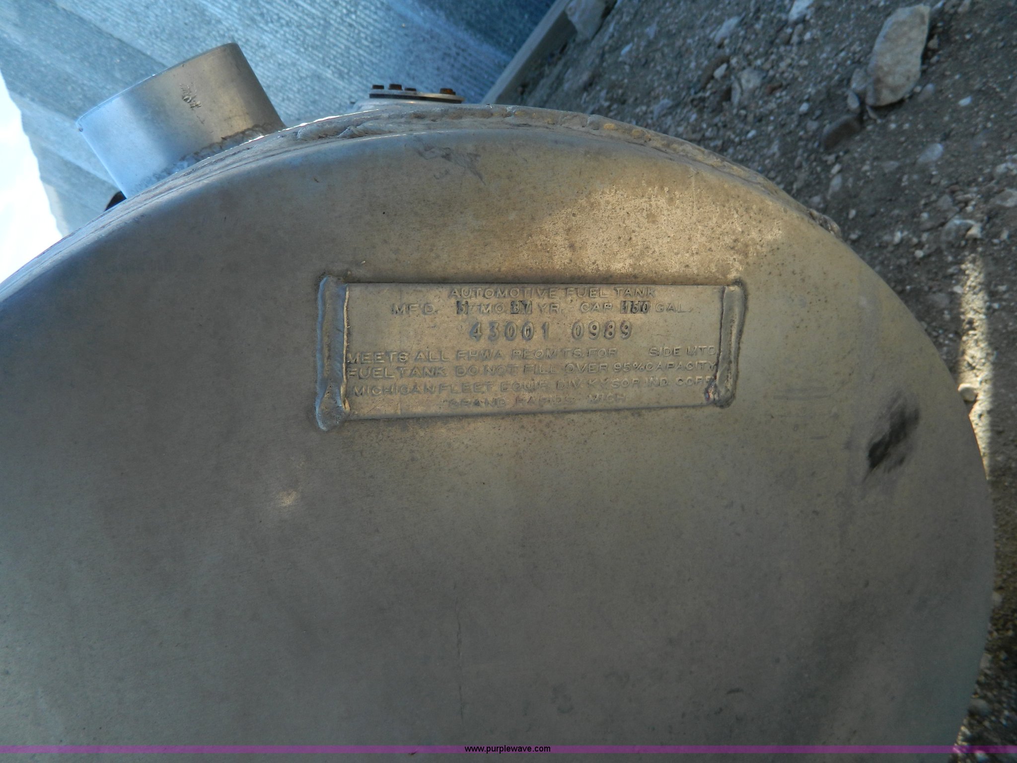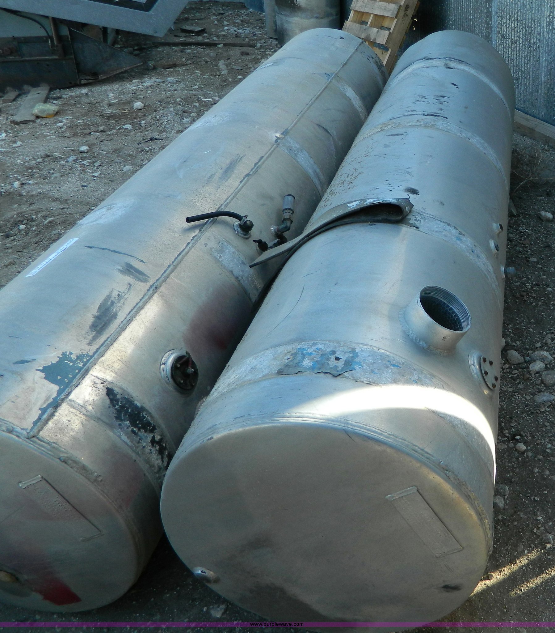 Purple Wave is selling a used Fuel and Lube in Kansas. This item is a (2) aluminum fuel tanks with the following: 150 gallon capacity, 8'L x 22" diameter