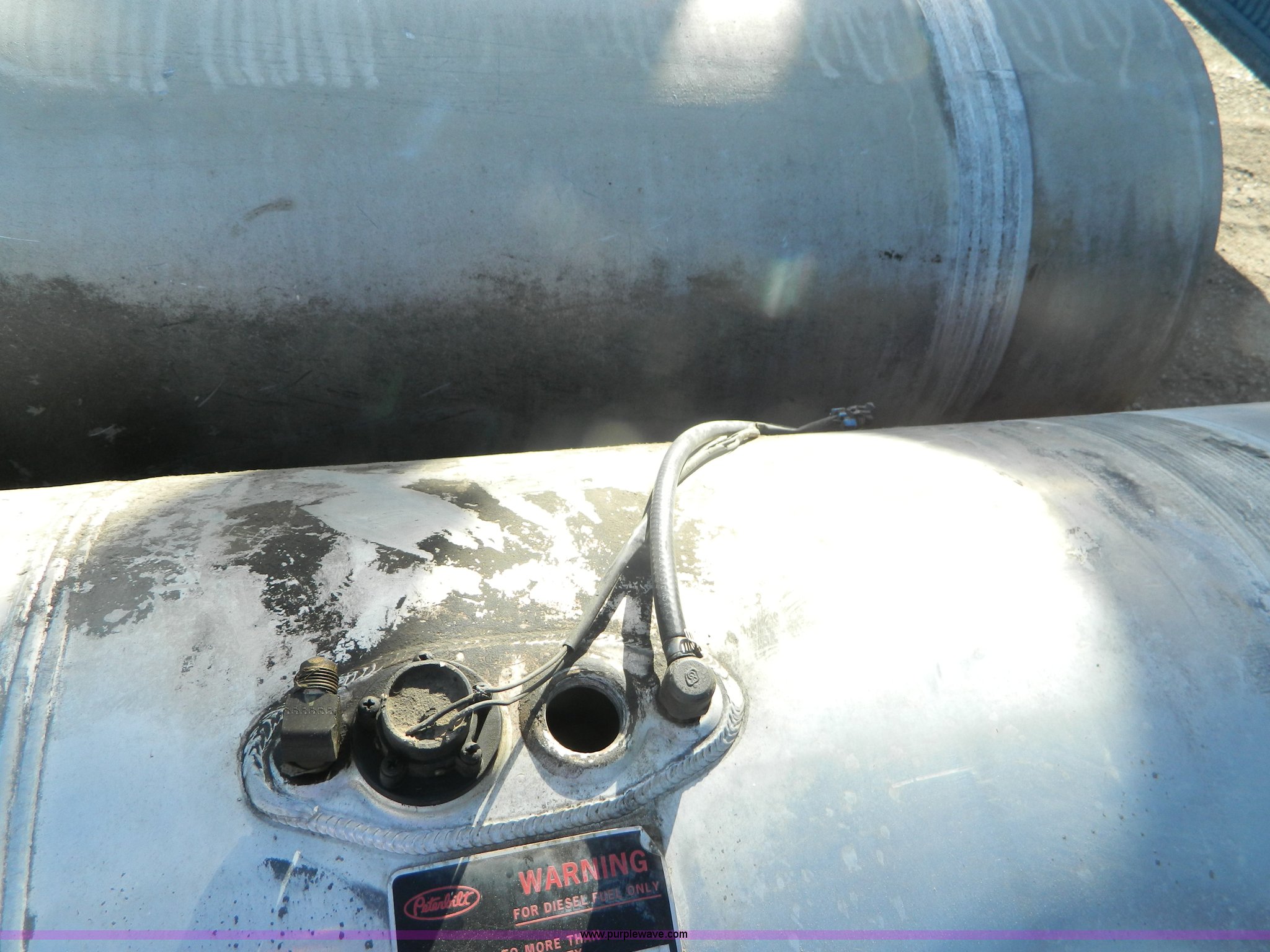 Purple Wave is selling a used Fuel and Lube in Kansas. This item is a (2) Peterbilt aluminum fuel tanks with the following: 263 gallon capacity, 6'L x 24" diameter