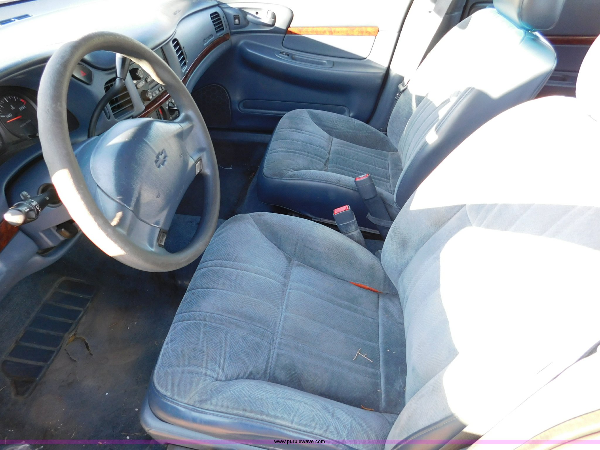 Purple Wave is selling a used Passenger Vehicle in Missouri. This item is a 2003 Chevrolet Impala with the following: 87,072 miles on odometer, 3.8L V6 OHV 12V gas engine, Automatic transmission, AC and heat, Tilt, Cruise, AM/FM/cassette, Power windows, locks, mirrors, and seats, Cloth interior, P225/60R16 tires, Transmission issue, Battery dead, Unknown operating condition, Interior/exterior cosmetic damage