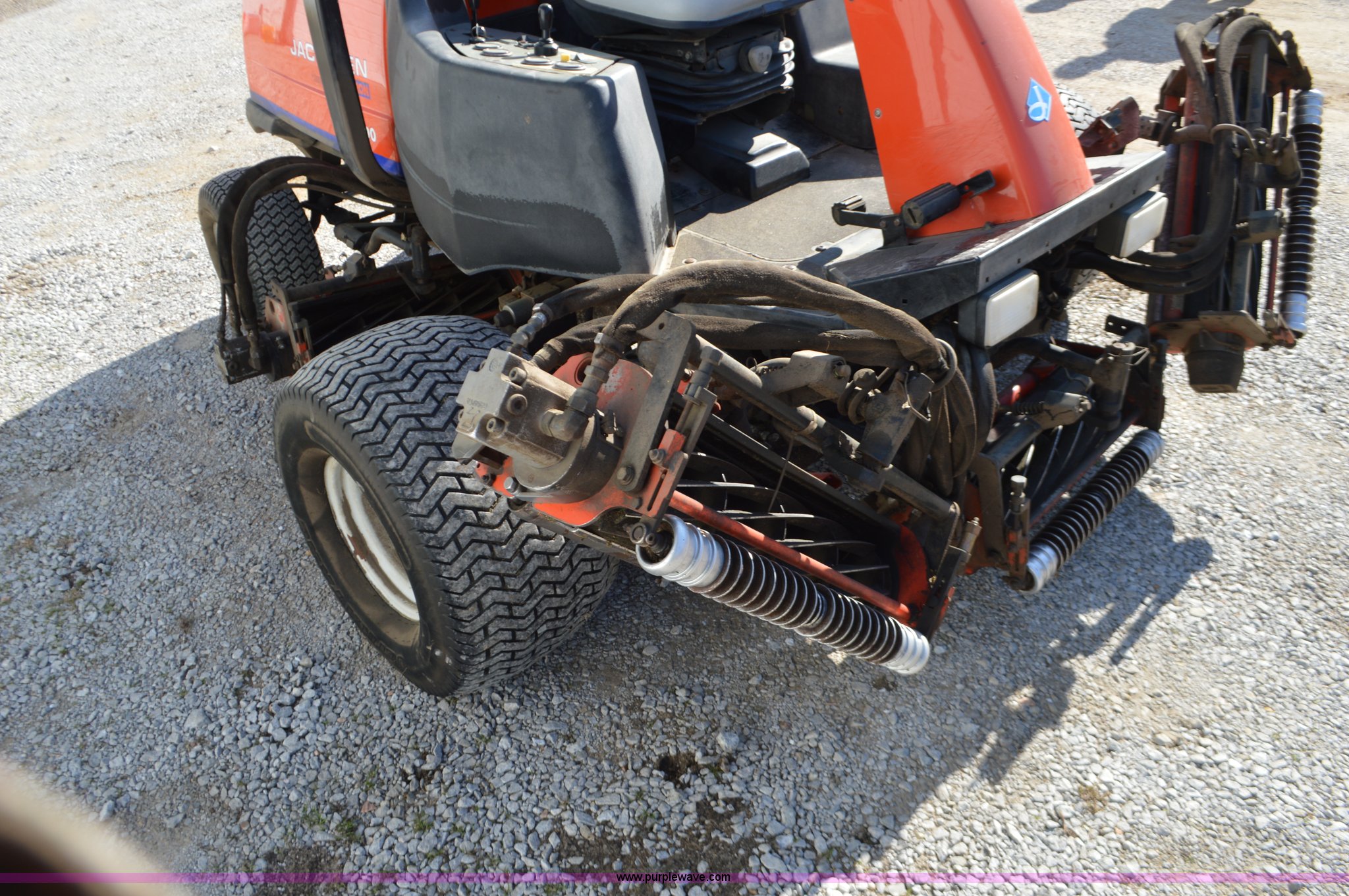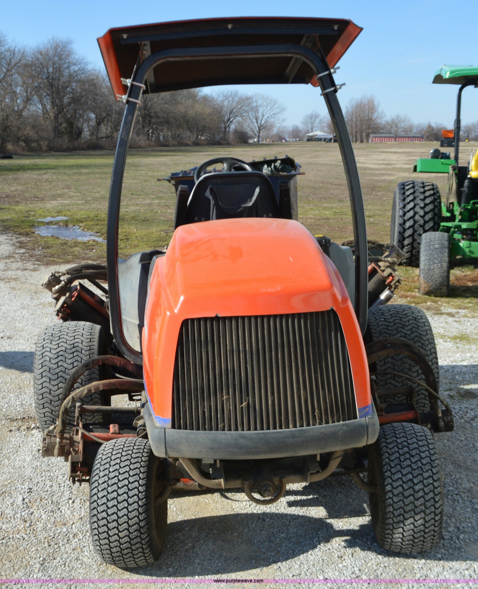 Purple Wave is selling a used Commercial Turf Mower in Missouri. This item is a Jacobsen LF3800 Greens King mower with the following: 3,522 hours on meter, Kubota four cylinder diesel engine, Hydrostatic transmission, (5) 22"W x 7" diameter reels, 26 x 14-12 front tires, 20 x 10 x 6 rear tires, Serial 622285627