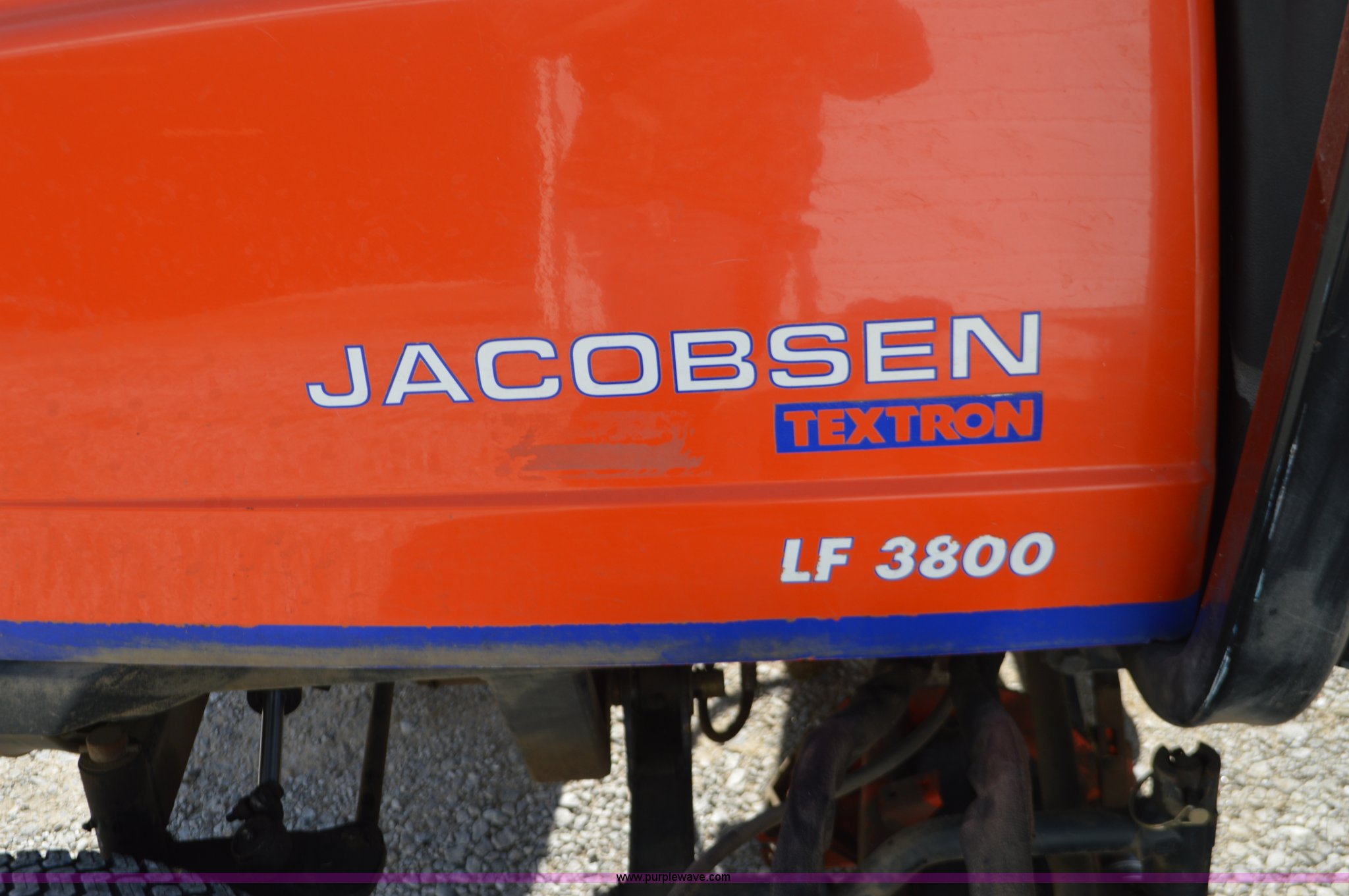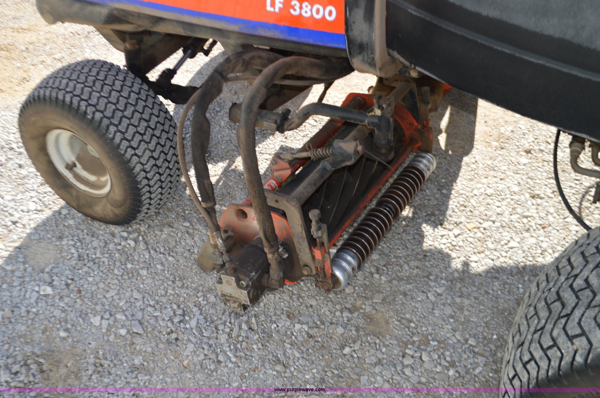 Jacobsen LF3800 Greens King mower. 3,522 hours on meter, Kubota four cylinder diesel engine, Hydrostatic transmission, (5) 22"W x 7" diameter reels, 26 x 14-12 front tires, 20 x 10 x 6 rear tires, Serial 622285627. City of Nevada. 501 South Jefferson. Nevada, MO 64772