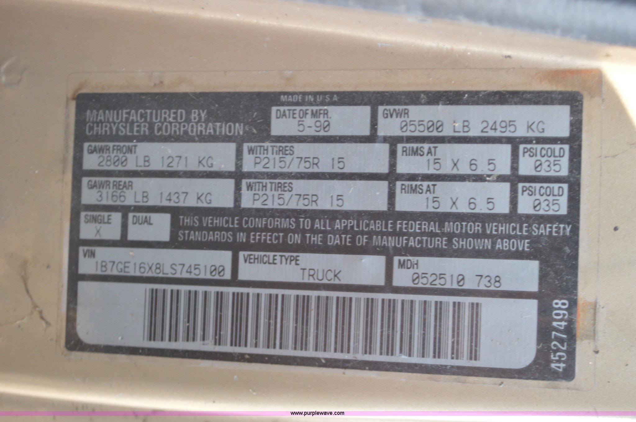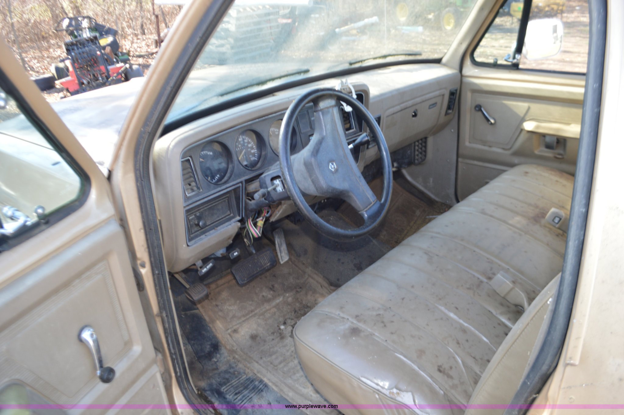 Purple Wave is selling a used 1/2 Ton Pickup or Van in Missouri. This item is a 1990 Dodge D150 pickup truck with the following: 152,714 miles on odometer, 3.9L V6 OHV gas engine, Automatic transmission, Heat, Manual windows and locks, Vinyl interior, 235/75R15 tires, Battery dead, Flat tire, Unknown operating condition