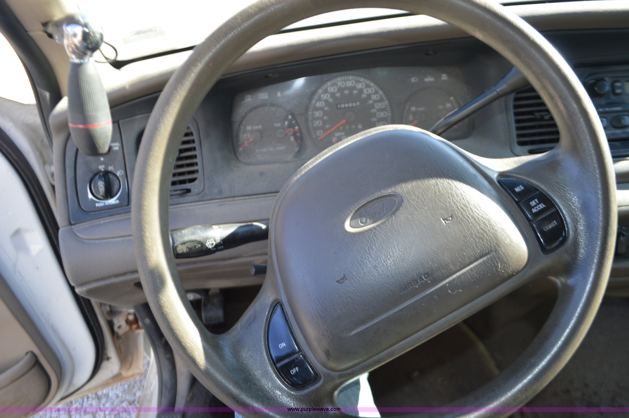 Purple Wave is selling a used Passenger Vehicle in Missouri. This item is a 2000 Ford Crown Victoria Police Interceptor with the following: 109,858 miles on odometer, 4.6L V8 SOHC 16V gas engine, Automatic transmission, AC and heat, Tilt, Cruise, AM/FM, Power windows, locks, and mirrors, Cloth interior, 225/60R16 tires