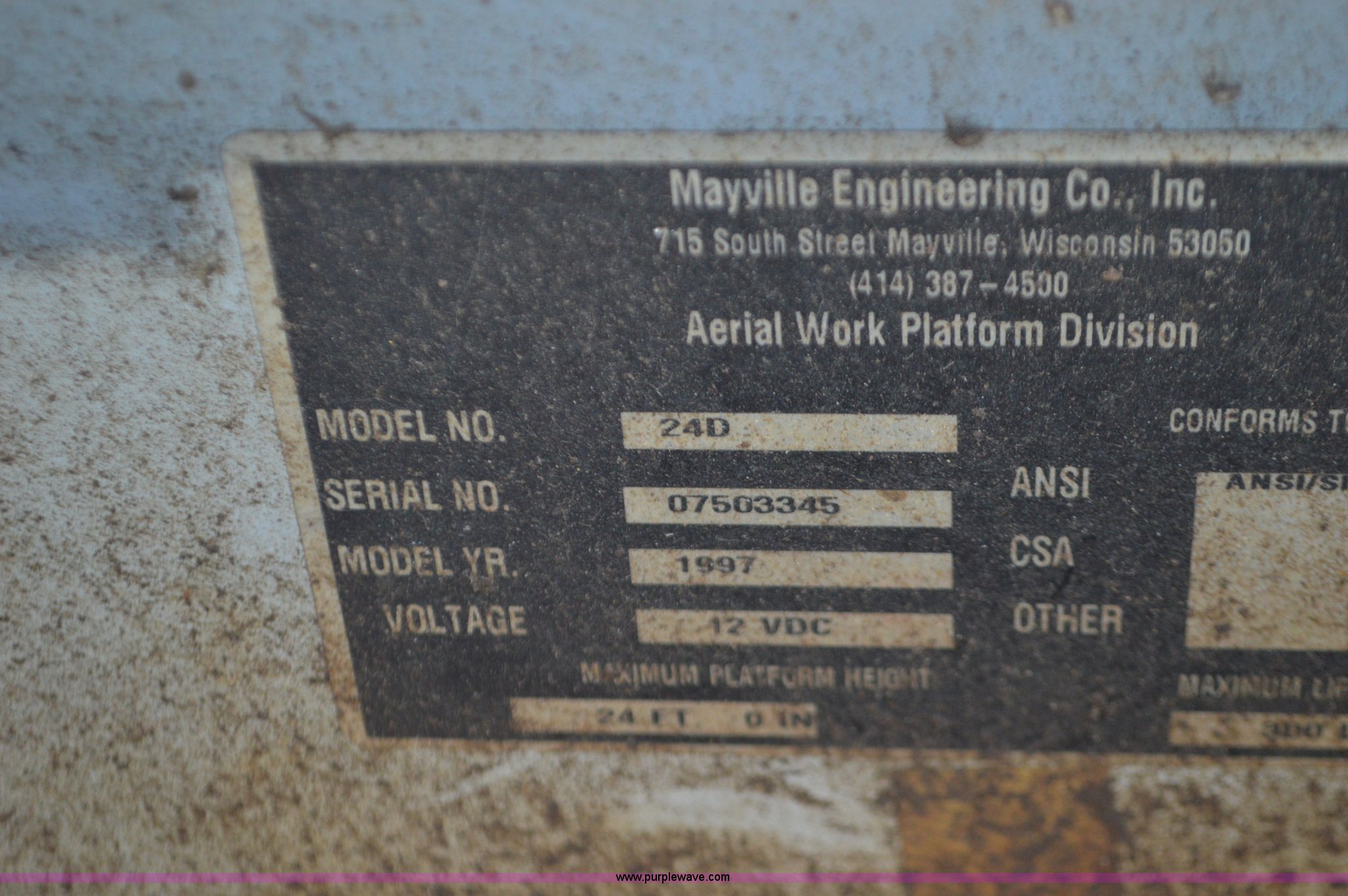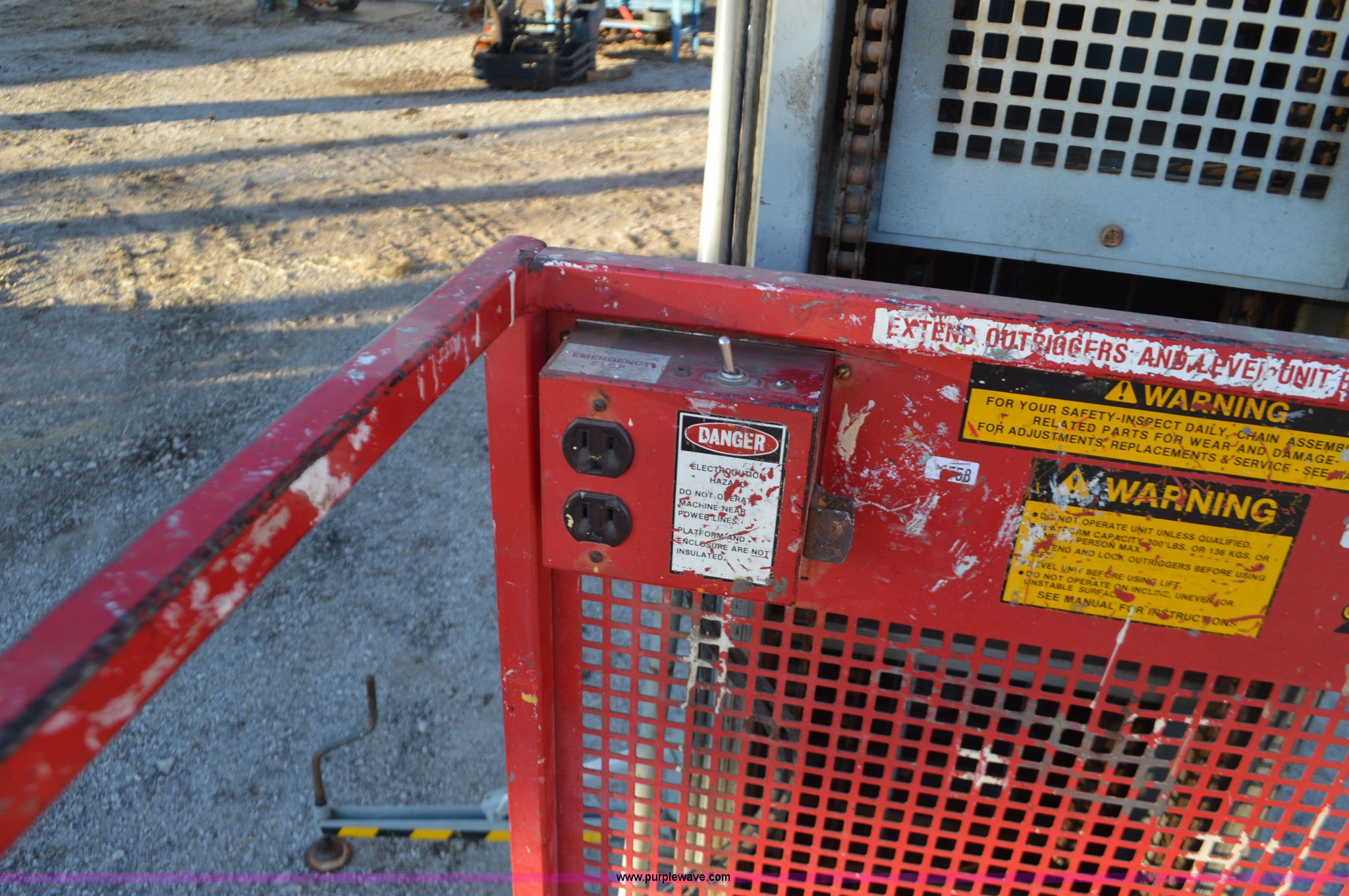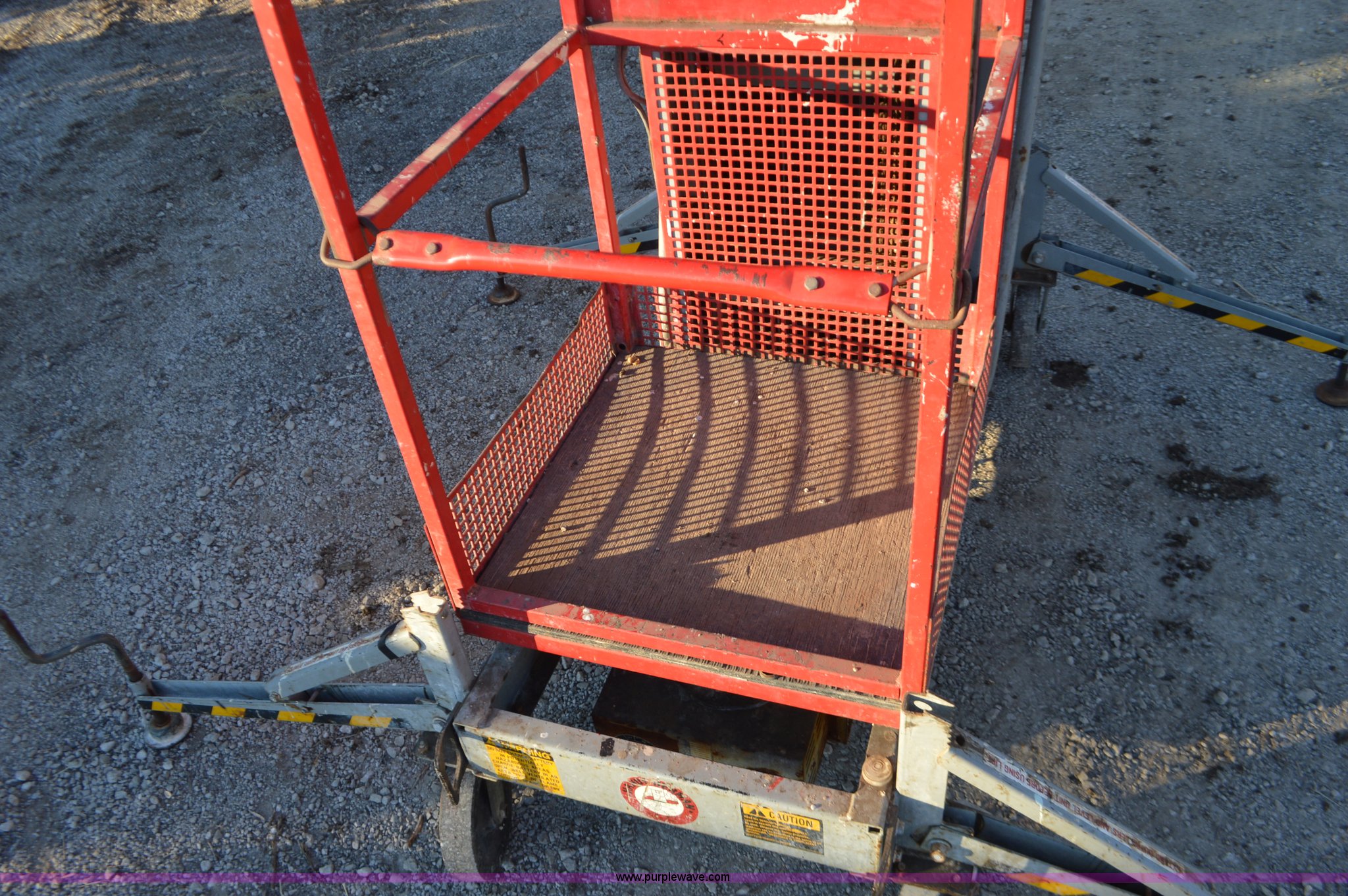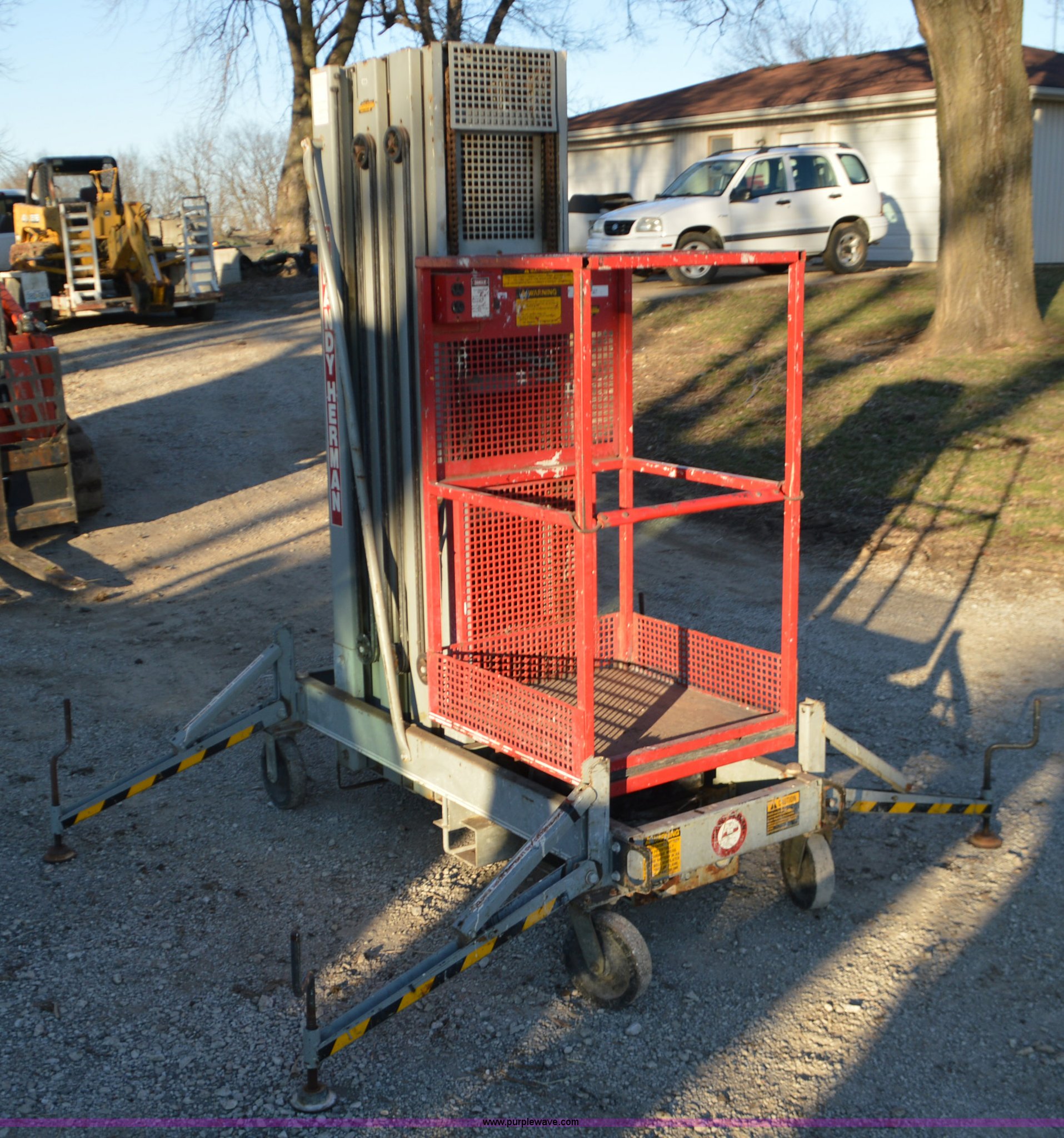 Purple Wave is selling a used Scissor or Vertical Lift in Missouri. This item is a 1997 Handy Herman 24D manlift with the following: 34' max lift height, 12V, 2' x 2' x 44" platform, Serial 07503345