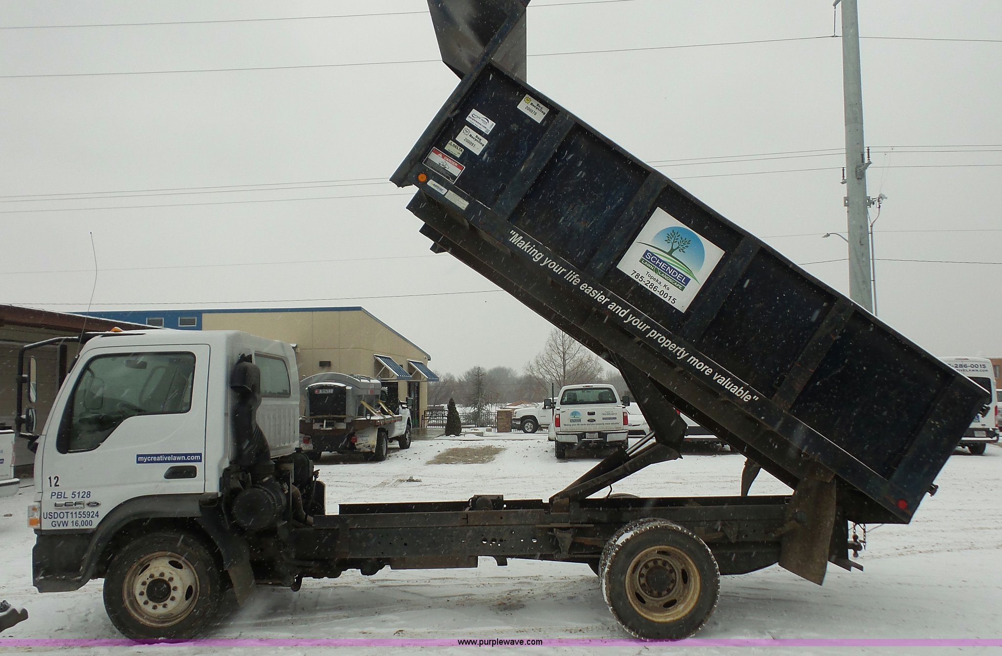 Purple Wave is selling a used Construction Dump Truck in Kansas. This item is a 2006 Ford LCF dump truck with the following: 76,843 miles on odometer, International 4.5L V6 turbo diesel engine, 200 HP, Automatic transmission, Single axle, Heat, Cruise, Suspension seat, Rayside dump bed, 14'L x 96"W, 36"H sides, Steel construction, Single ram hoist, Electric over hydraulic operation, Swining rear end gates, Receiver hitch, Spring suspension, Hydraulic brakes, 225/70R19.5 tires, GVWR 16,000 lbs, FAWR 5,000 lbs, RAWR 11,000 lbs, No front bumper