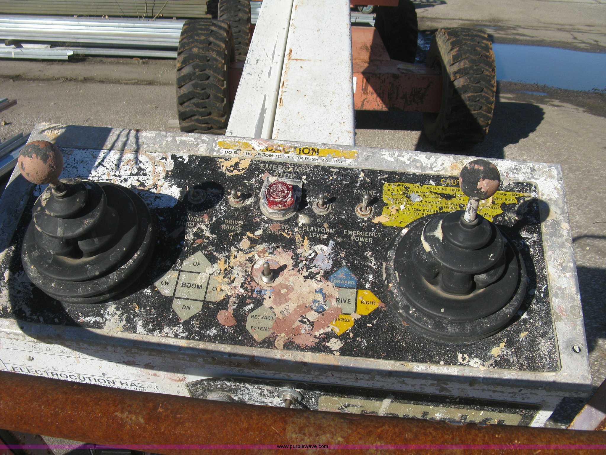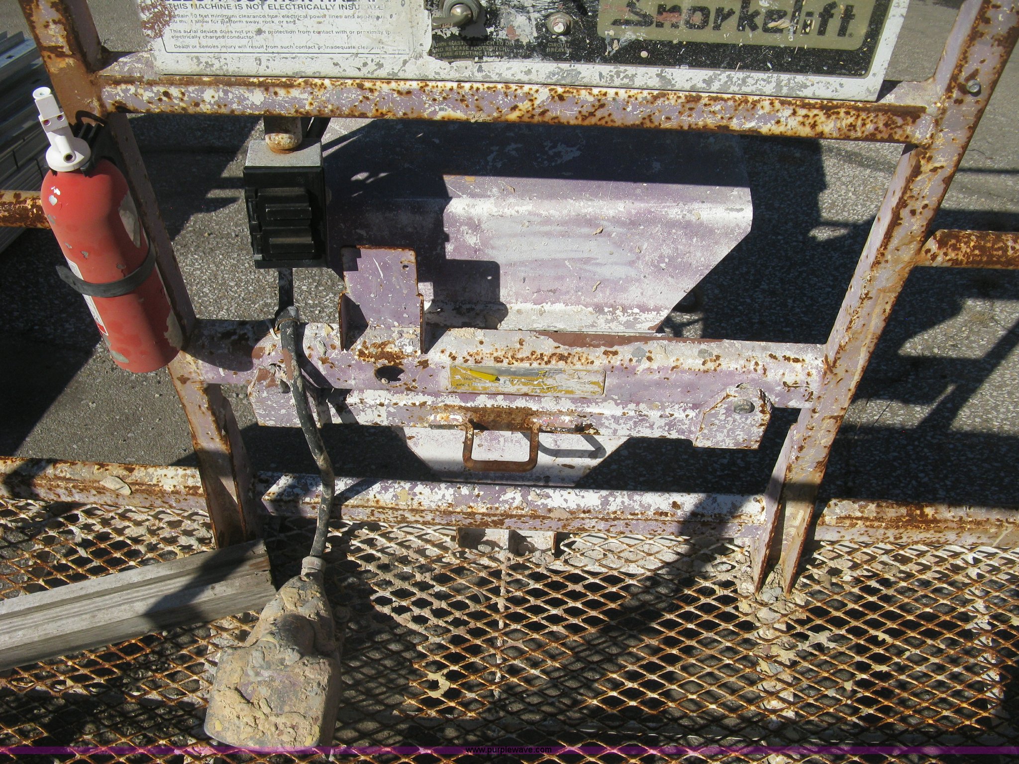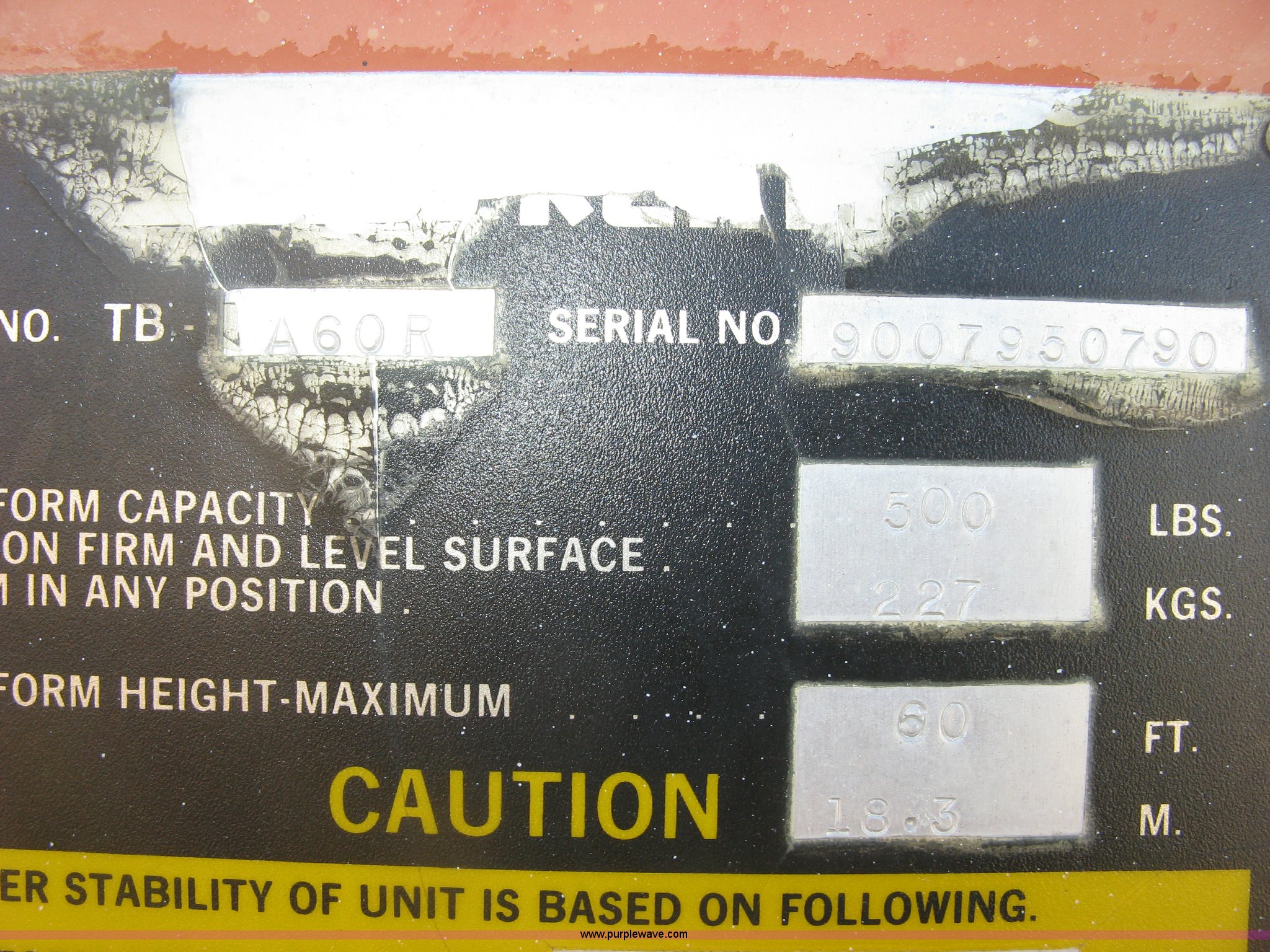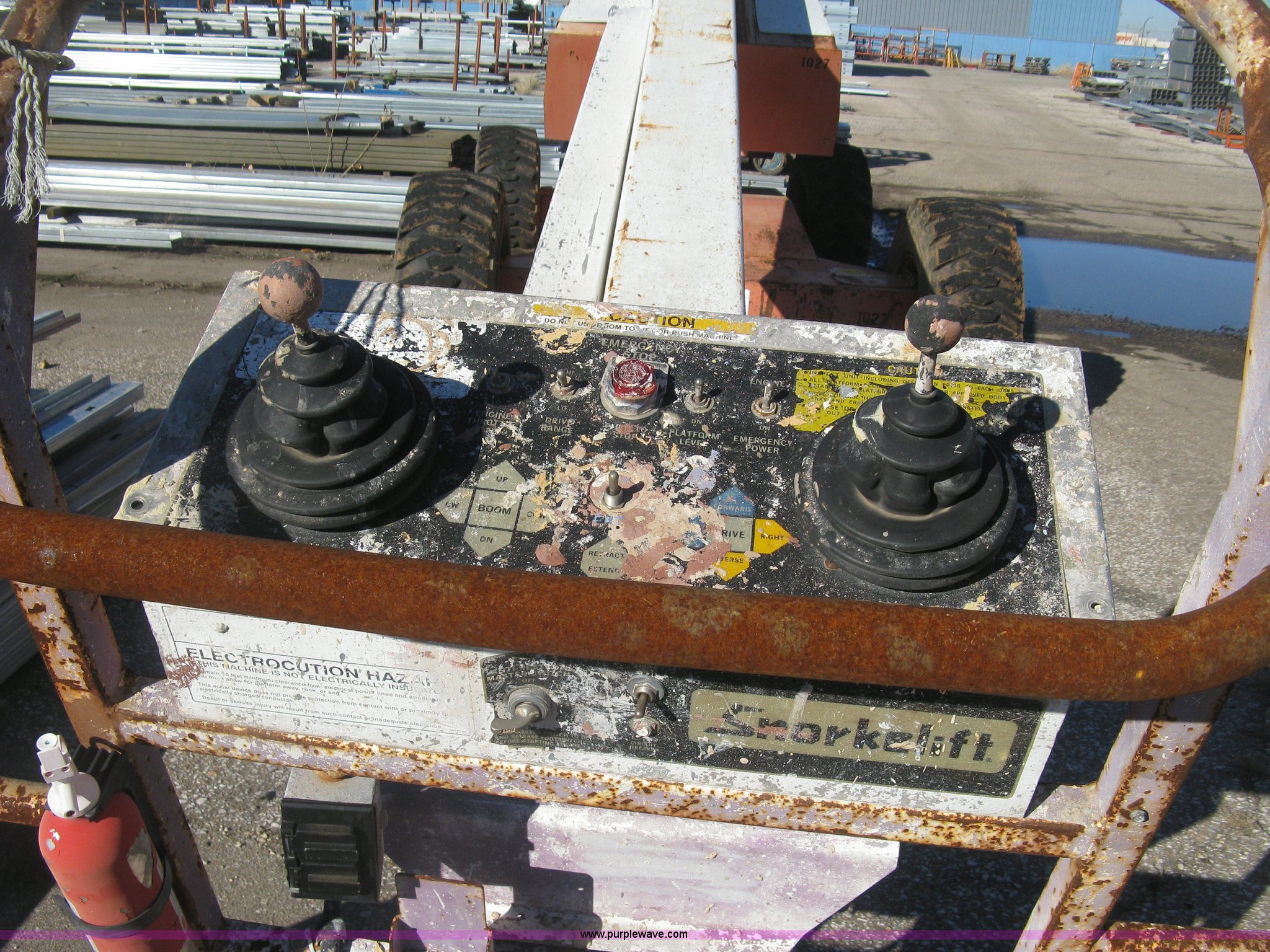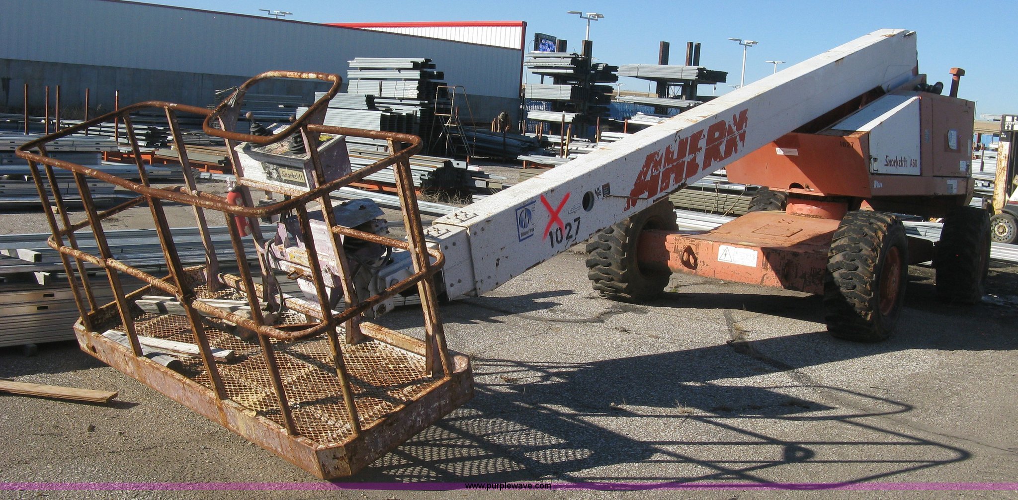 Purple Wave is selling a used Boom Lift in Kansas. This item is a Snorkelift A60R boom lift with the following: 5,823 hours on meter, No engine, 500 lbs maximum lift capacity, 60' maximum reach, 92"L x 30"W platform, Platform controls, AC power outlet, Platform rotation, 15-19.5 foam filled tires, Non-operational unit, Serial 9007950790, Unit# 1027