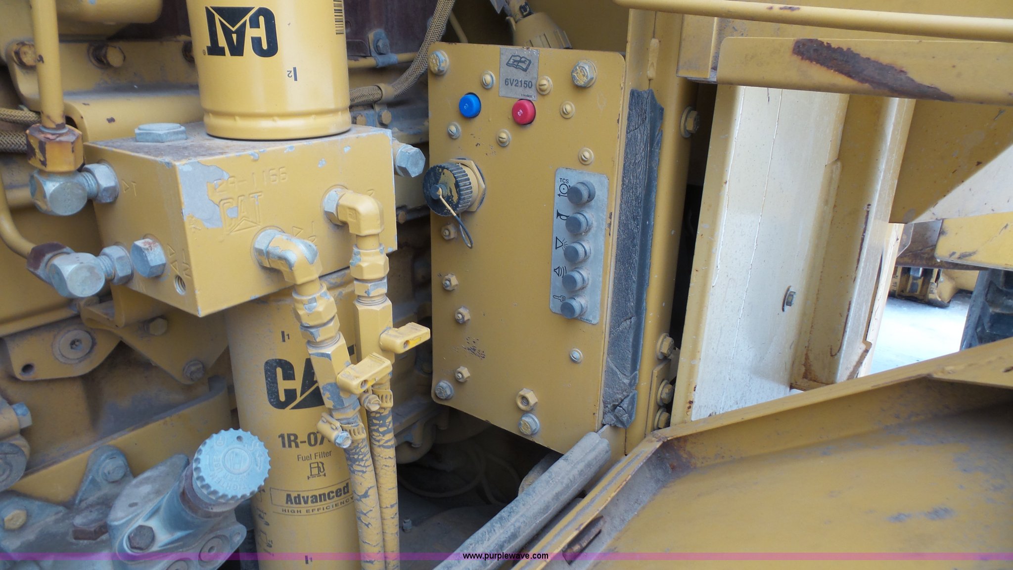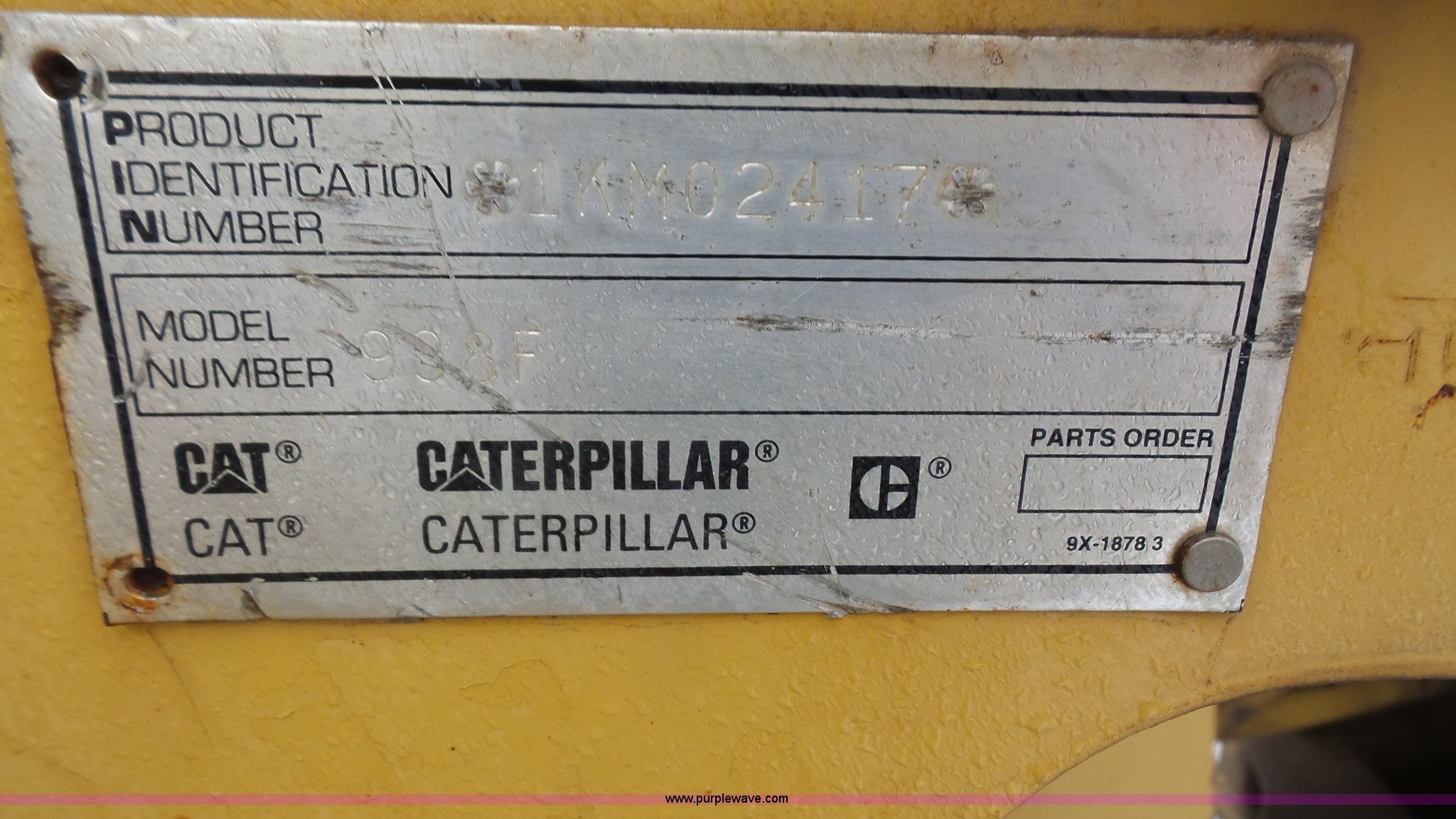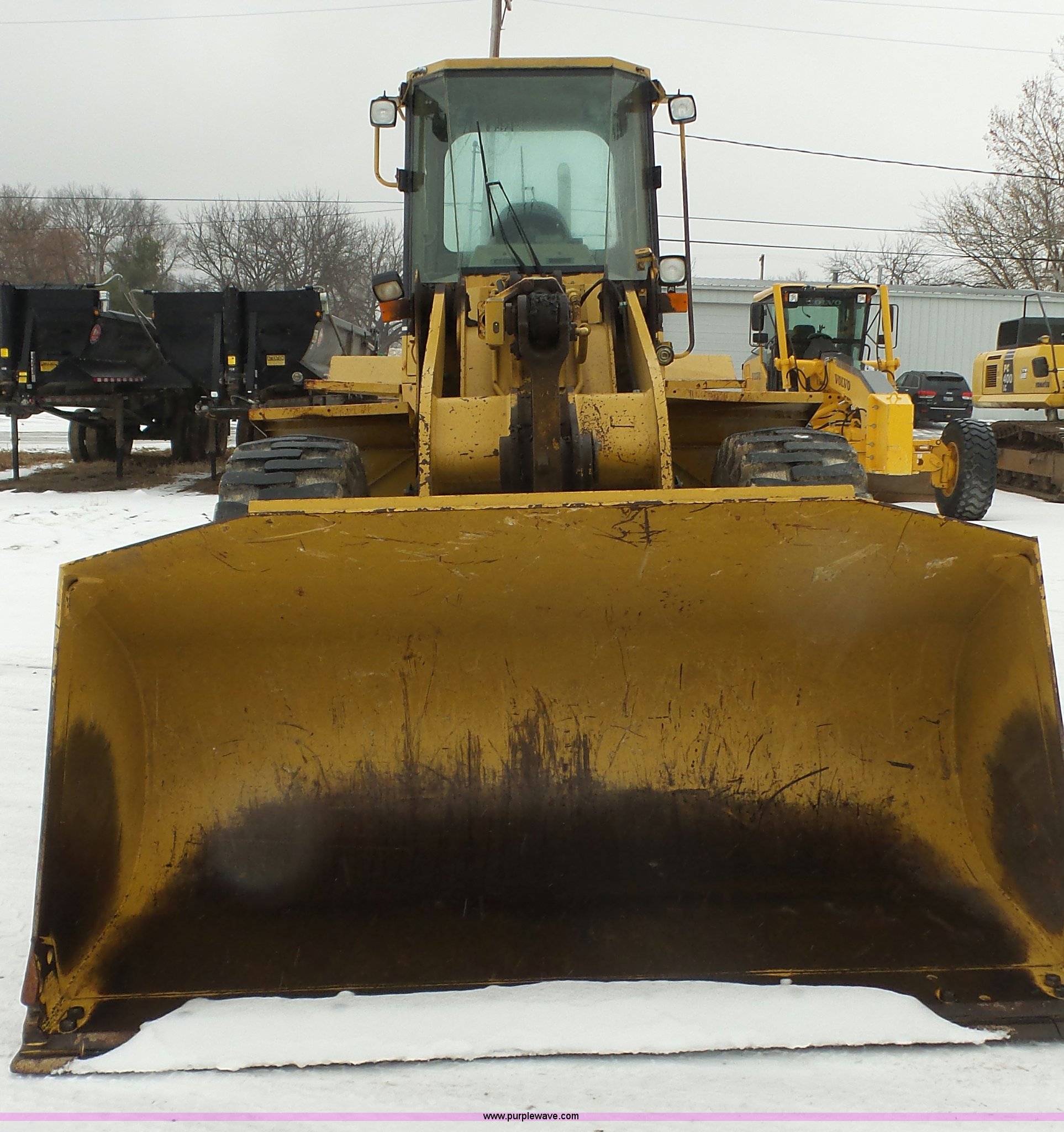 Purple Wave is selling a used Wheel Loader in Kansas. This item is a 1997 Caterpillar 938F wheel loader with the following: 5,904 hours on meter, Caterpillar 3116 six cylinder turbo diesel engine, 140 HP, Powershift transmission, 4F gears, Enclosed cab, Heat, Suspension seat, Wipers, Joystick bucket controls, Front work lights, Caterpillar 109"W bucket, 3.65 cubic yard capacity, Bolt-on cutting edge, 20.5-25 tires, 28,731 lbs. base operating weight, Serial 1KM02417, Unit# WL0115