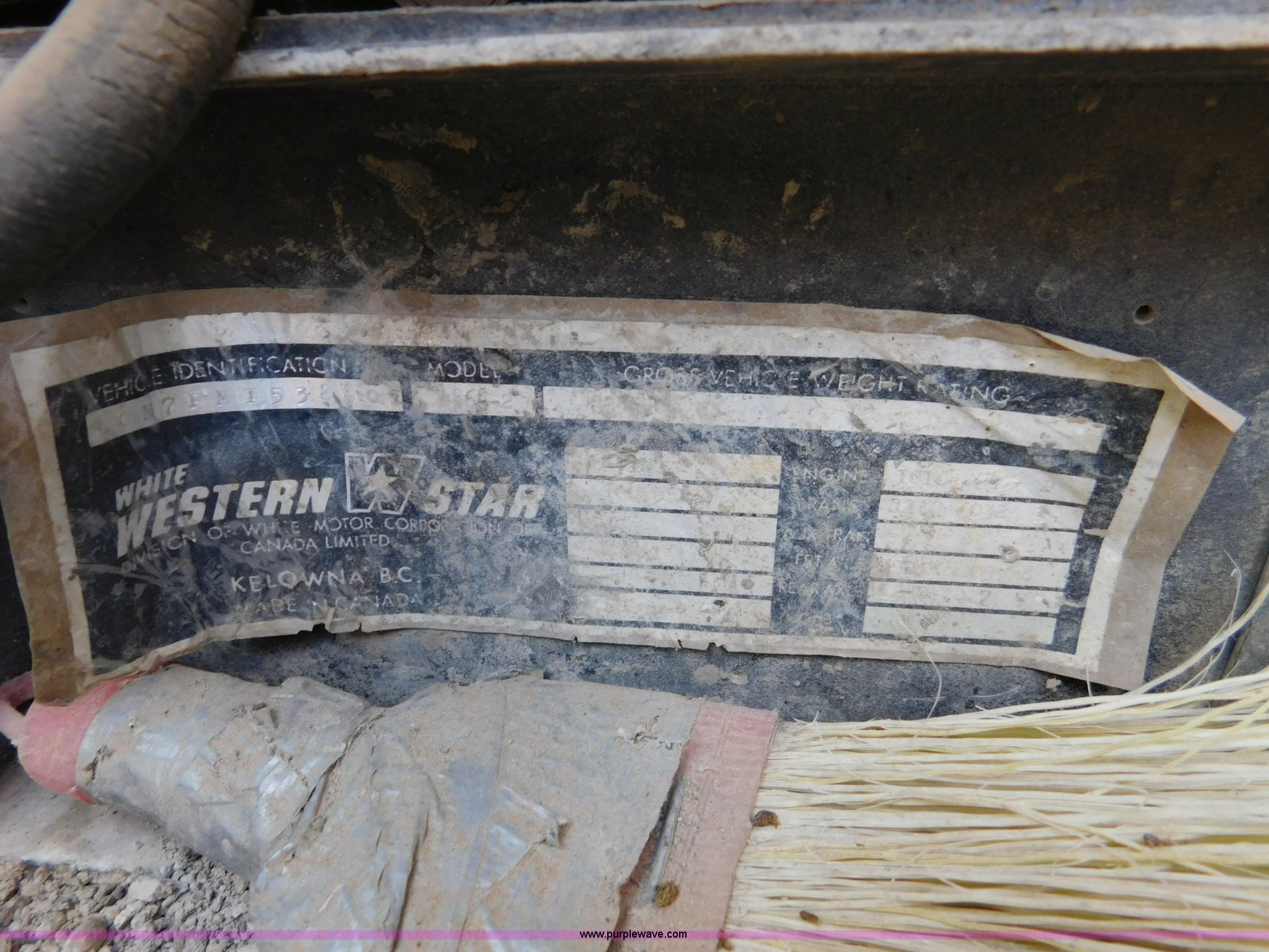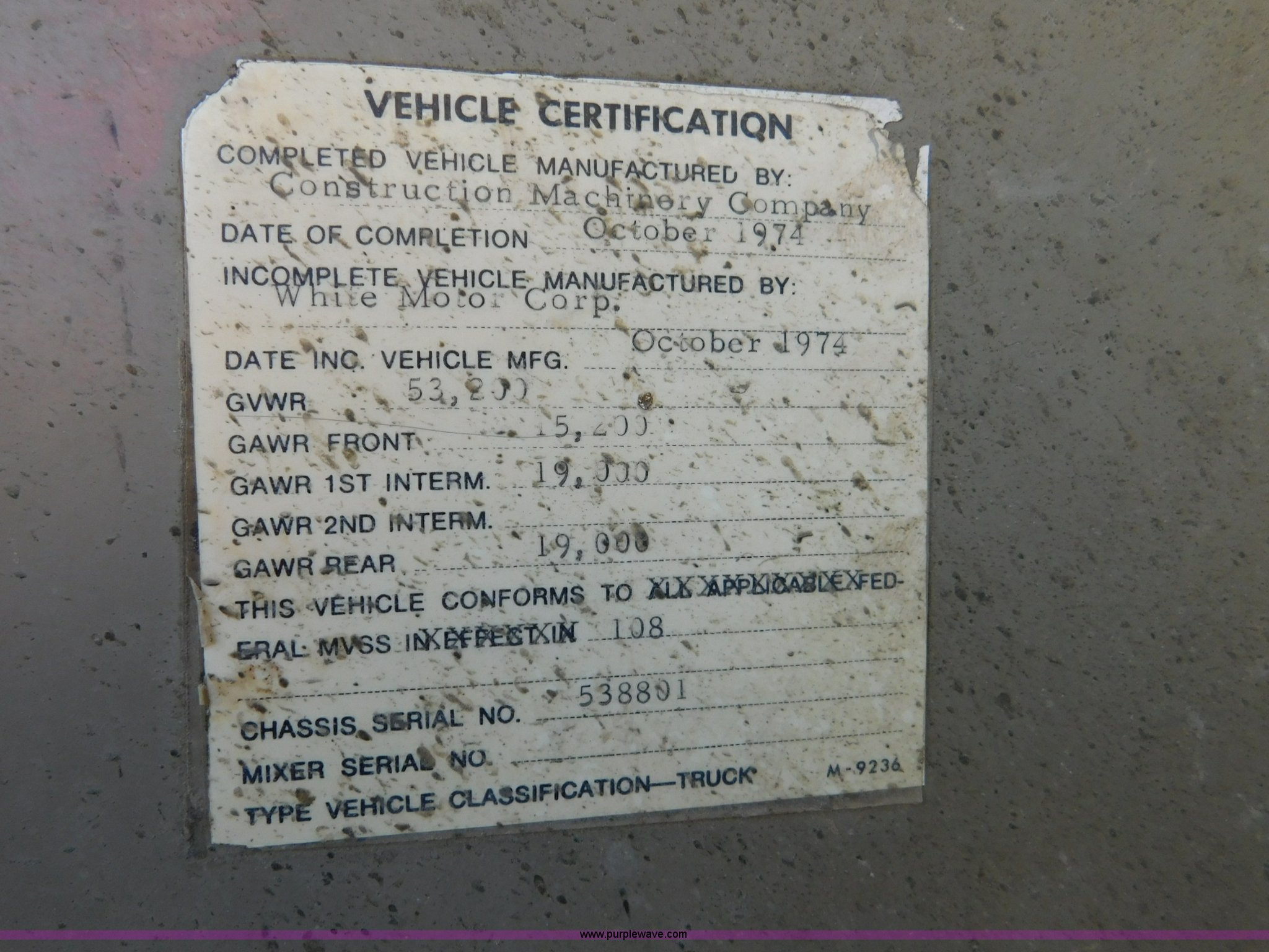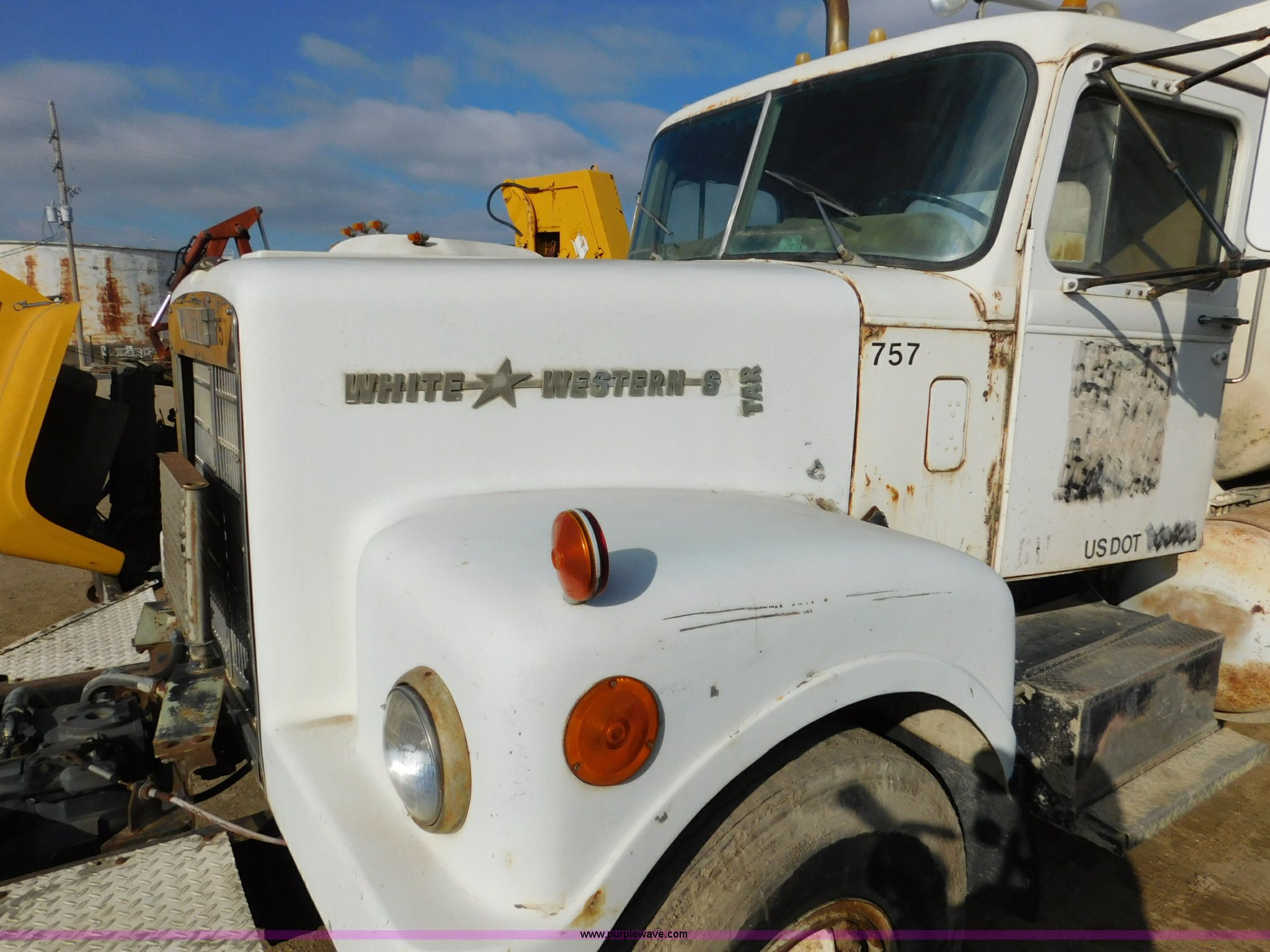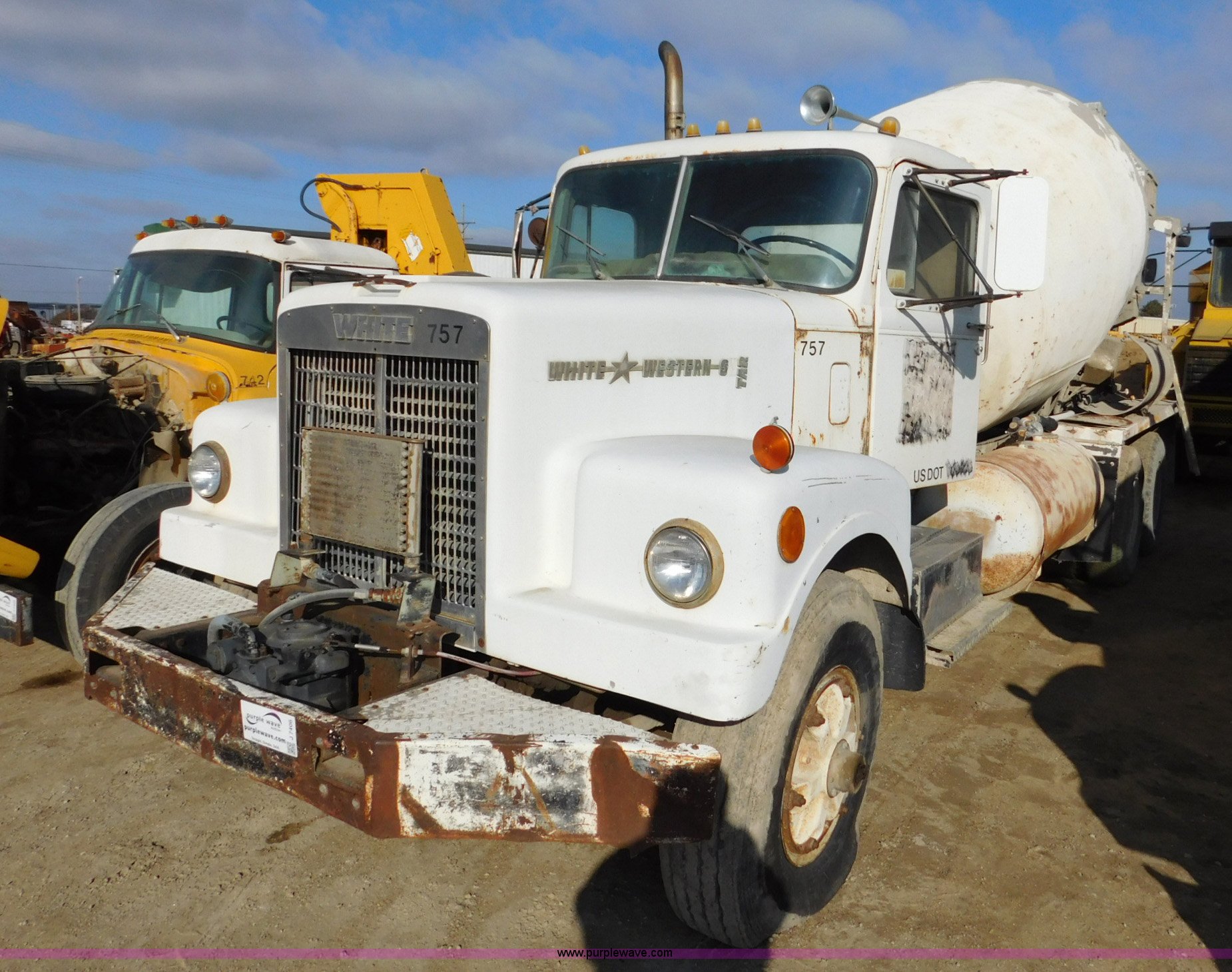 Purple Wave is selling a used Ready Mix or Pump Truck in Kansas. This item is a 1975 White Western Star ready mix truck with the following: 74,644 miles on odometer, 4,644 hours on meter, Detroit Diesel six cylinder diesel engine, Eaton Fuller Road Ranger 13 speed manual transmission, Tandem axle, Heat, Spring suspension seat, Front mounted PTO, Single fuel tank, Walking beam suspension, Air brakes, 2.00R20 front tires, 10.00-20 rear tires, GVWR 53,200 lbs, FAWR 15,200 lbs, IAWR 19,000 lbs, RAWR 19,000 lbs, Mixing drum is not included, Unit# 757