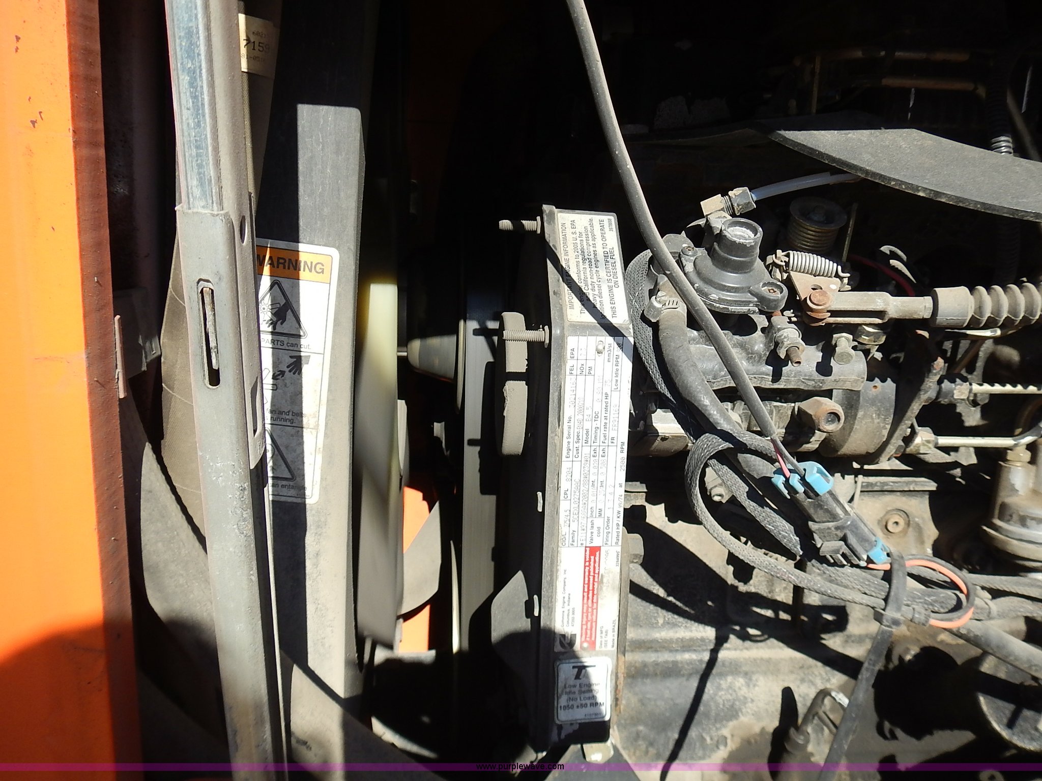 Purple Wave is selling a used Telehandler in Kansas. This item is a 2006 SkyTrak 6036 telehandler with the following: 2,489 hours on meter, Cummins B4.5 2.5L four cylinder diesel engine, 99 HP, Family 5CEXL0275AAC, Serial 30214163, 6,000 lbs maximum lift capacity, 22'8" maximum reach, 36' maximum lift height, Three stage boom, 4'L x 5"W x 2" thick forks, 10 degree cab tilt, 70 degree lift tilt, Wipers, Backup alarm, 13.00-24TG tires, 21,760 lbs. base operating weight, Serial 0160018897