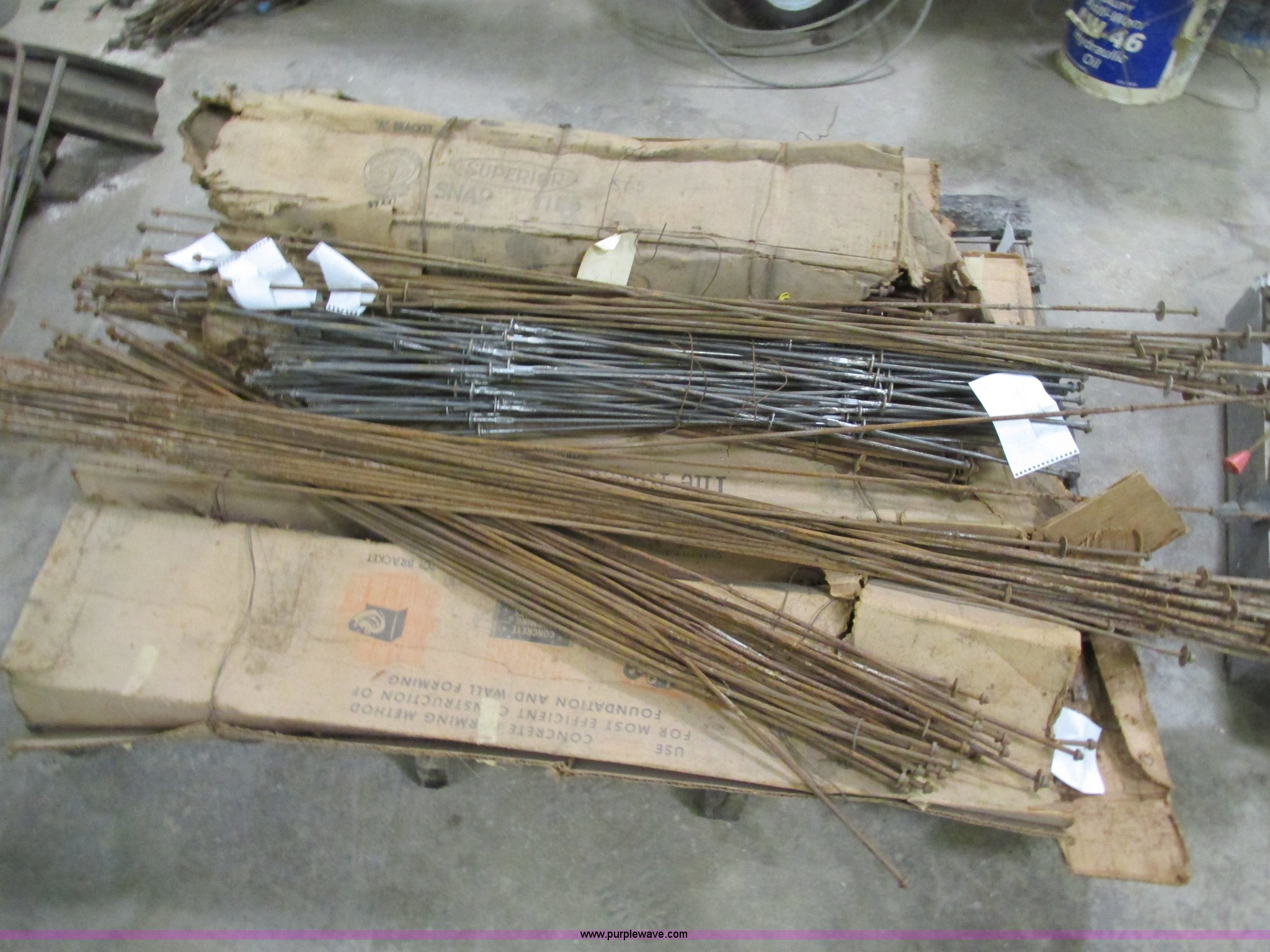 Purple Wave is selling a used Concrete Equip. or Acces. in Missouri. This item is a Assorted concrete form snap ties with the following: Various snap and cone, Various sizes
