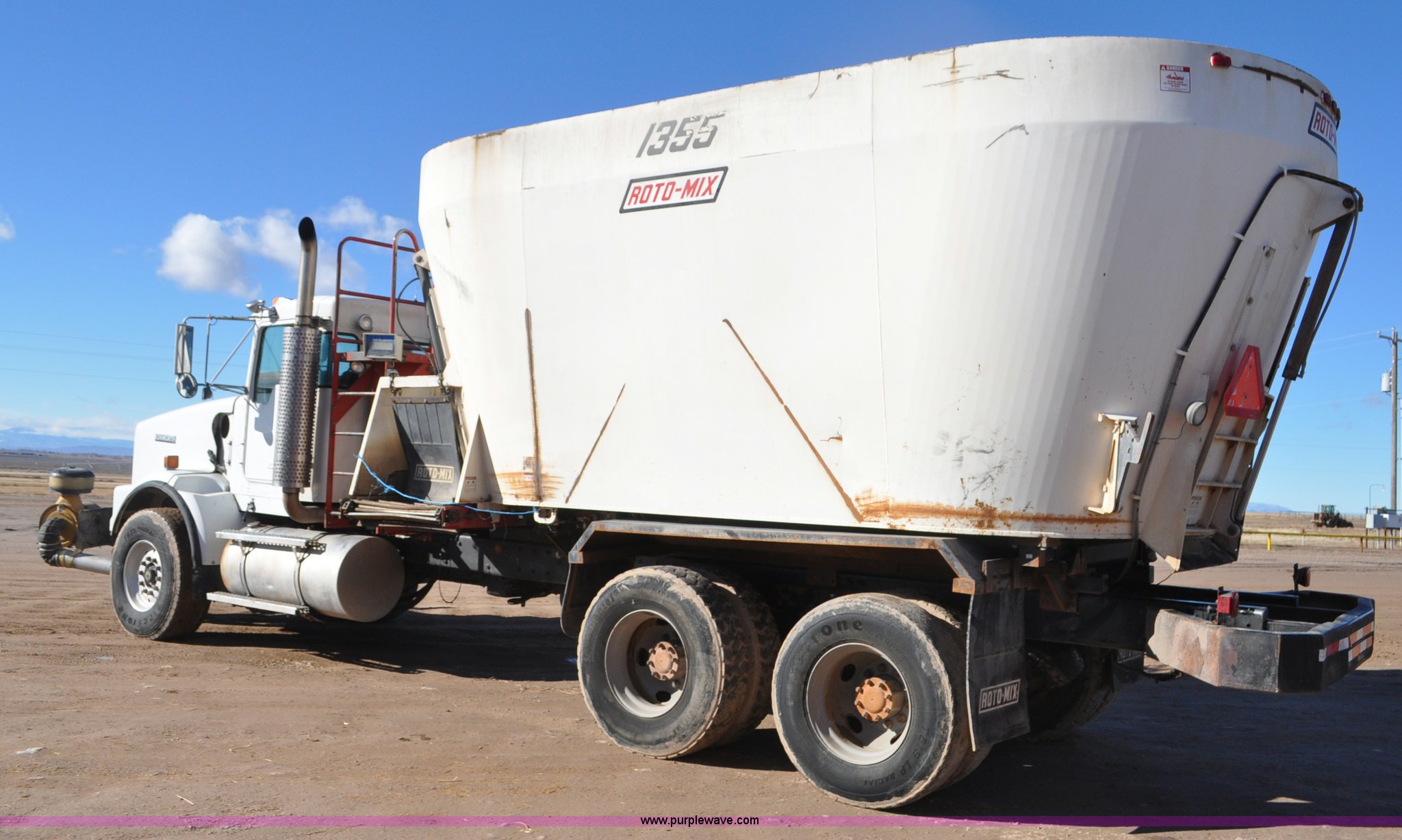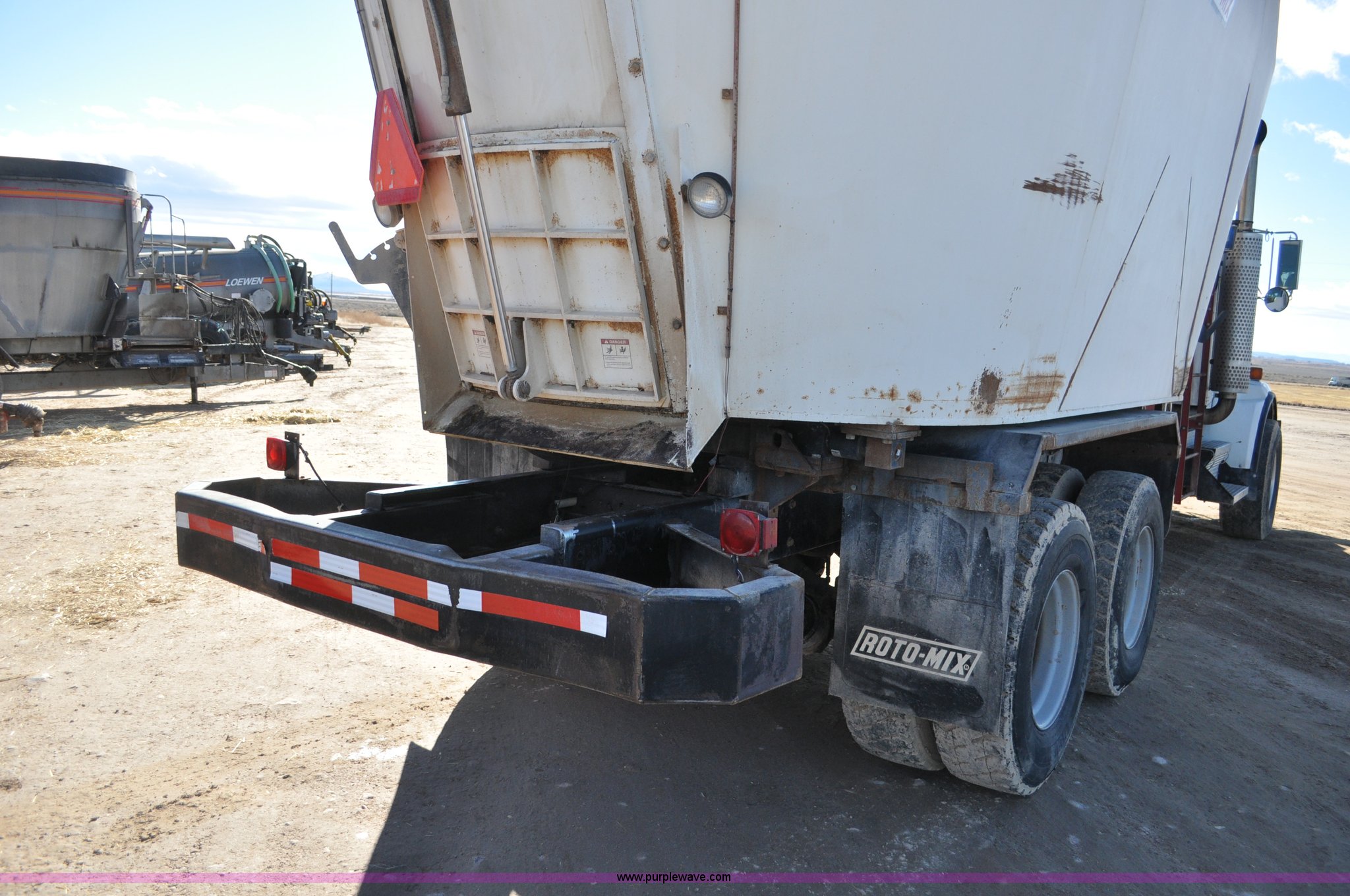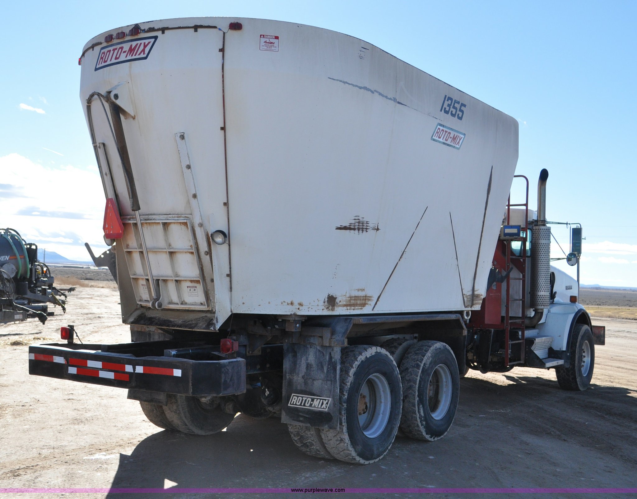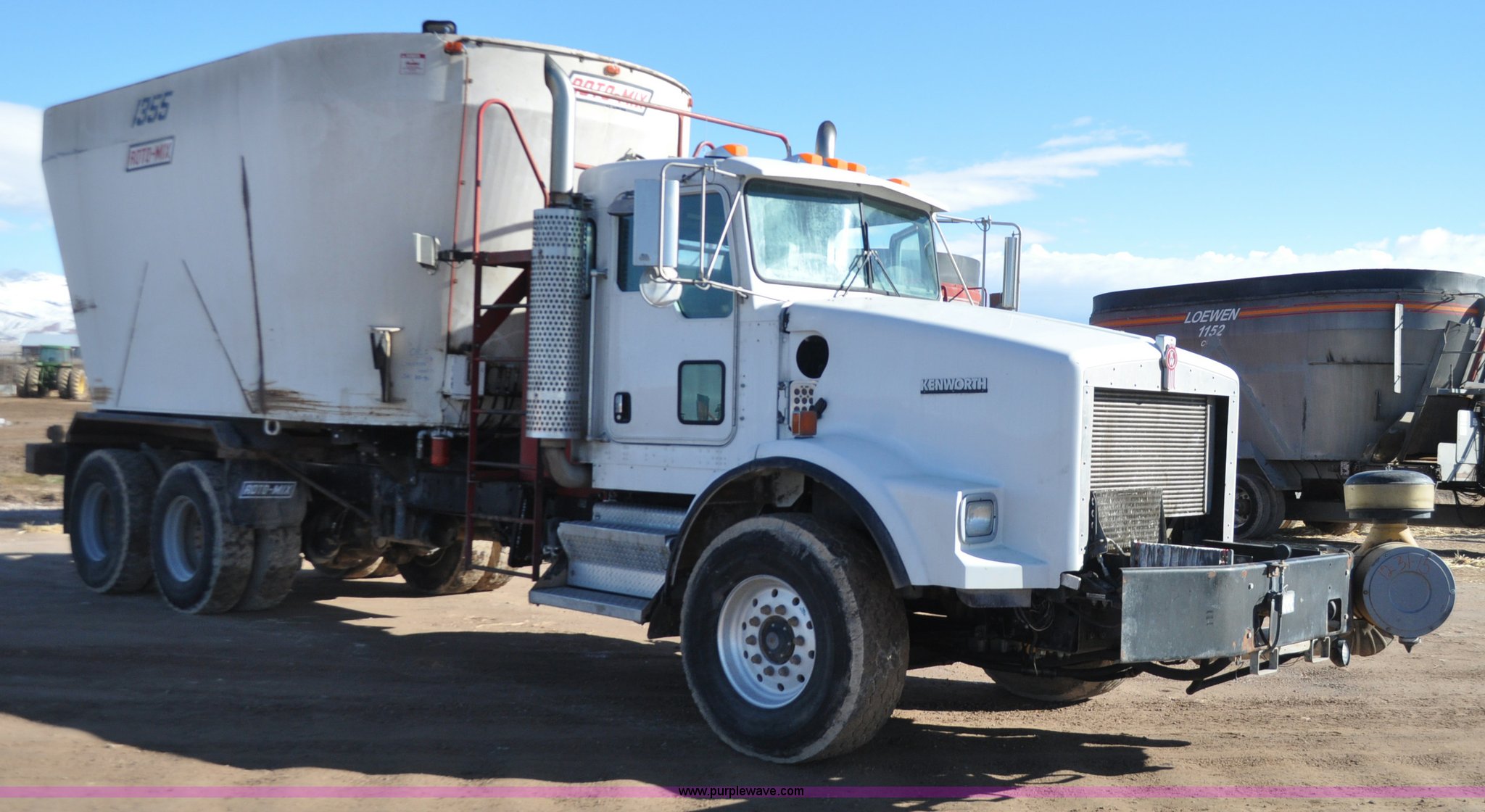 Purple Wave is selling a used Feed Mixer Truck in Utah. This item is a 2006 Kenworth T800 feed truck with the following: 67,638 miles on odometer, 28,352 hours on meter, Caterpillar C13 Acert turbo diesel engine, Automatic transmission, Inter-axle differential lock, AC and heat, Tilt, Front mounted PTO, Roto Mix 1335 feed box, Twin vertical augers, Hydrualic drive, Digi-Star scales, In-cab and exterior monitors, 425/65R22.5 front tires, 315/80R22.5 rear tires