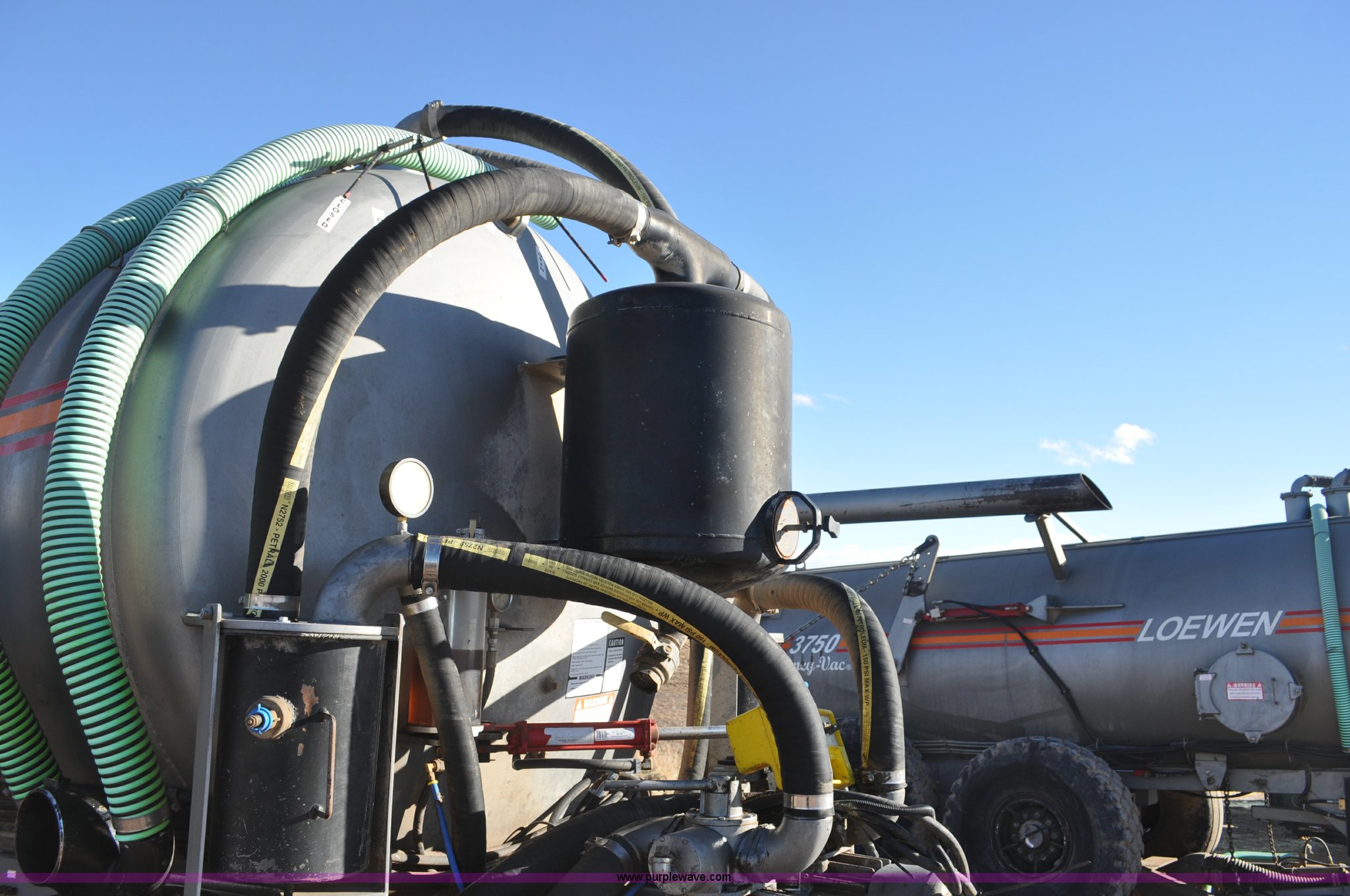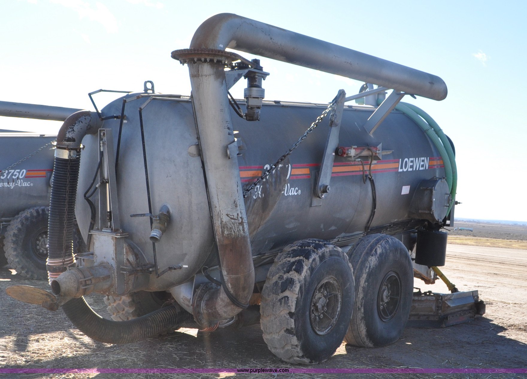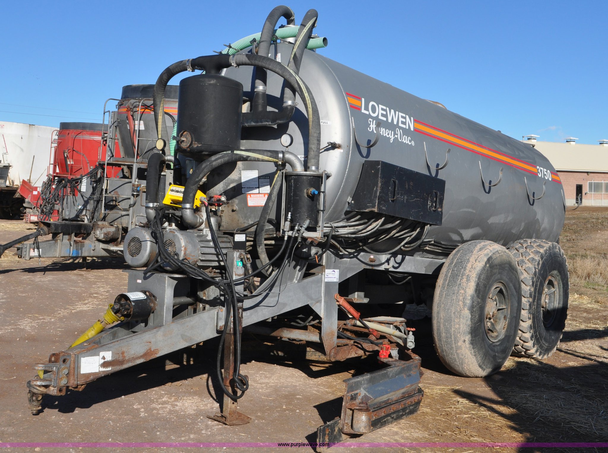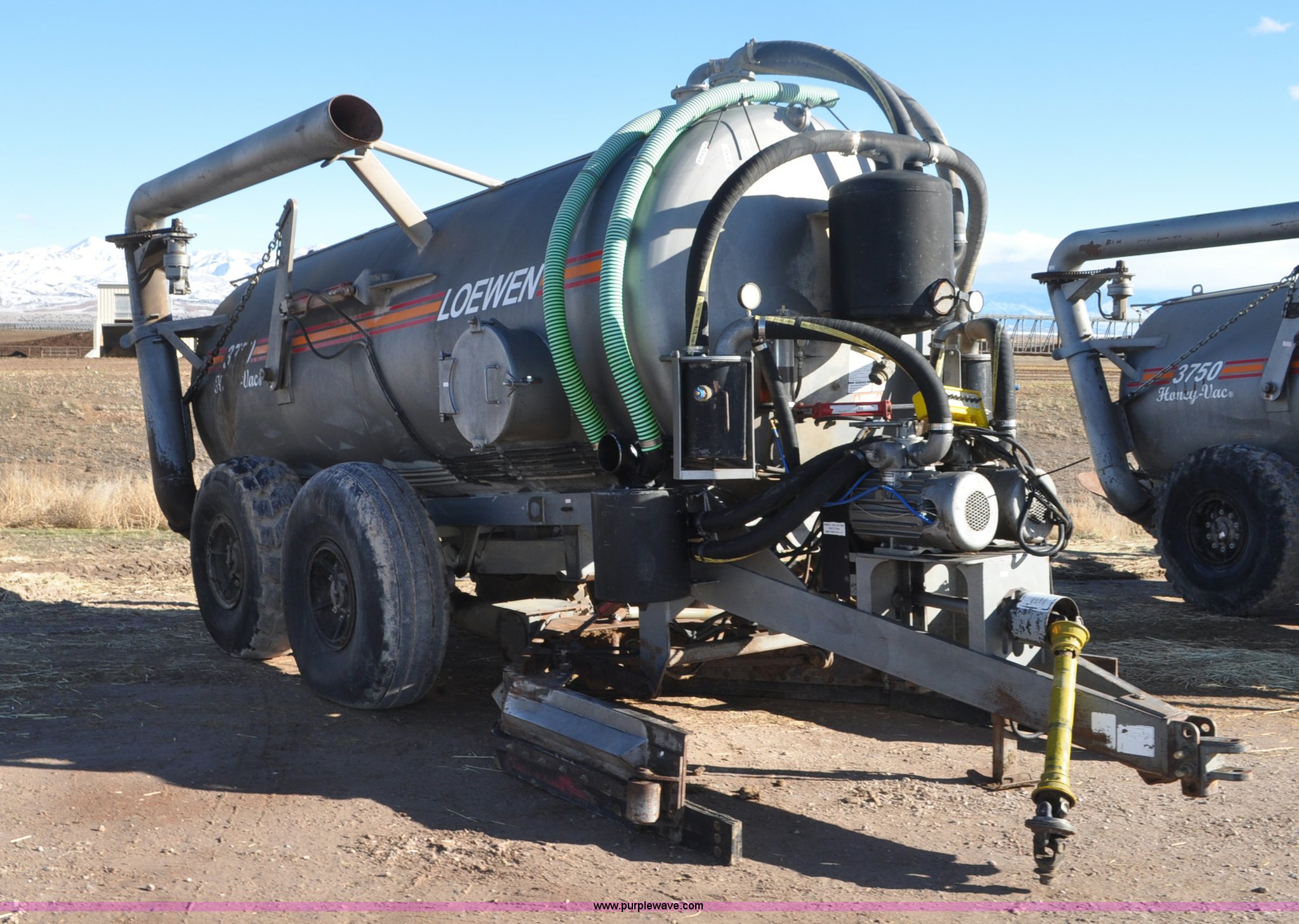 Purple Wave is selling a used Manure Spreader in Utah. This item is a 2005 Loewen 3750 Honey-Vac honey wagon with the following: 14' max swath mud scraper with hydraulic adjust, 10" suction tube, Dual vacuum pumps, 1000 PTO, Clevis hitch, Tandem axle, 16.00R20 tires, One vacuum pump inoperable, Serial 47461
