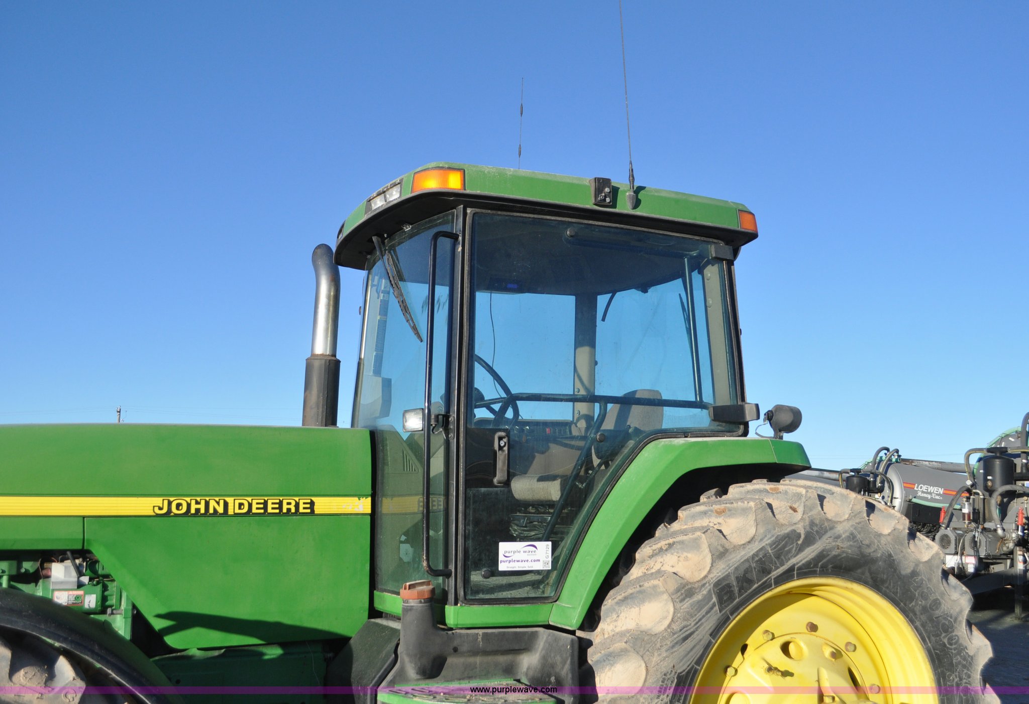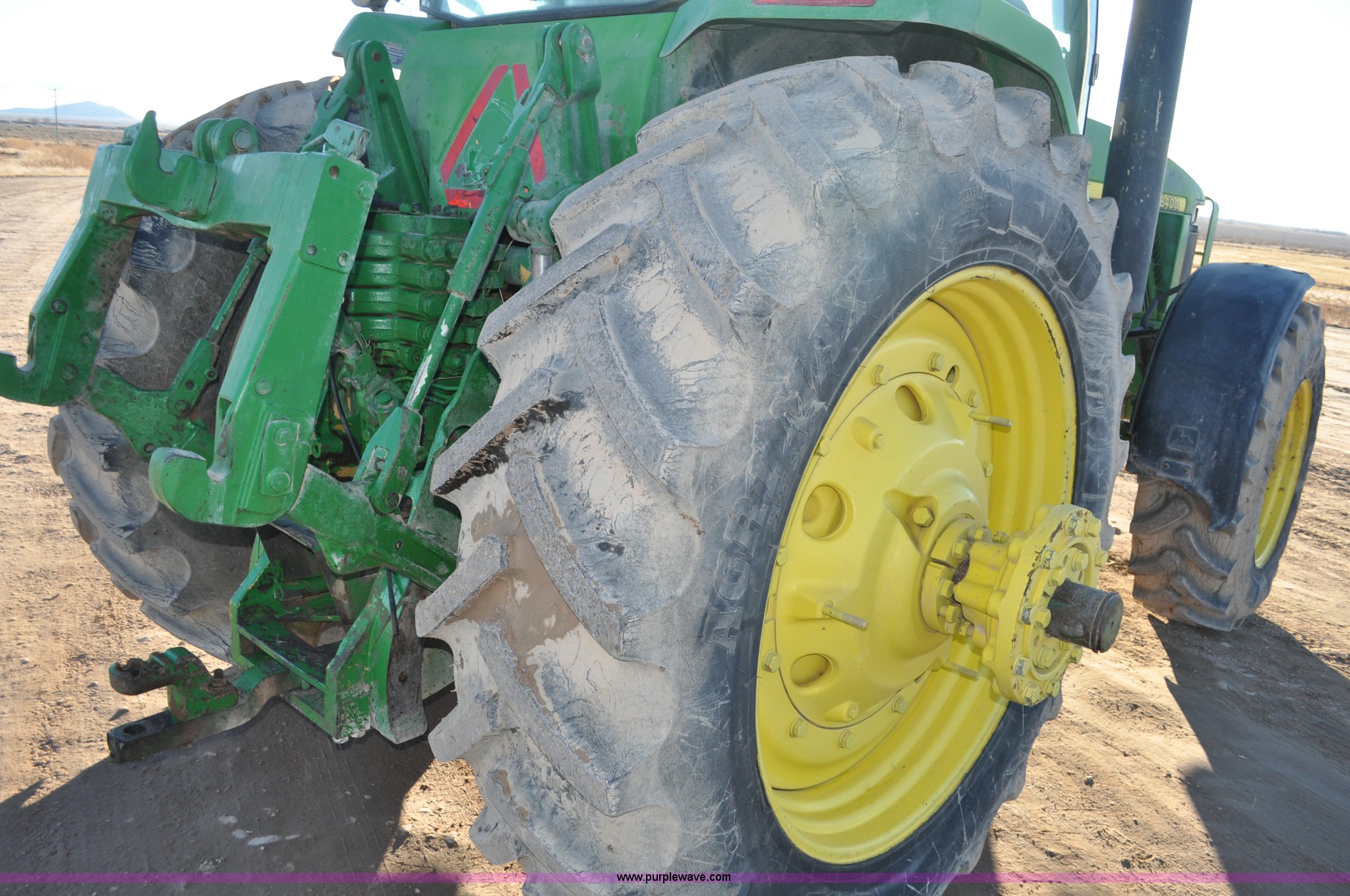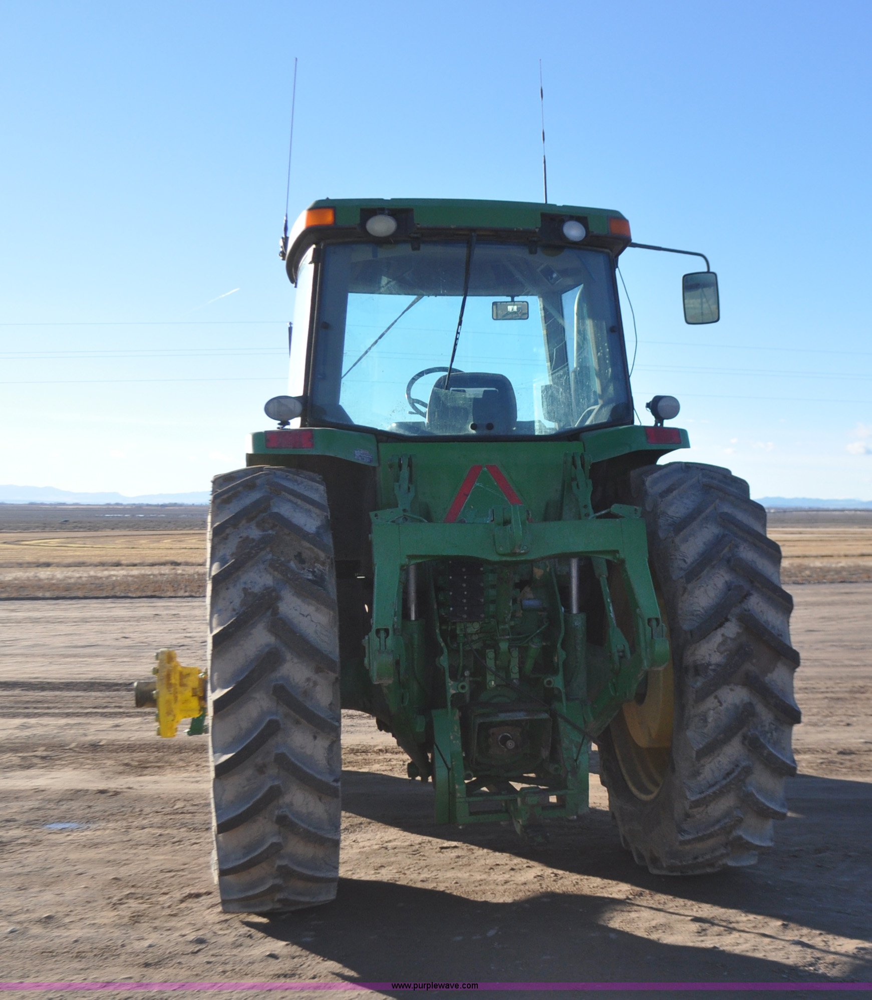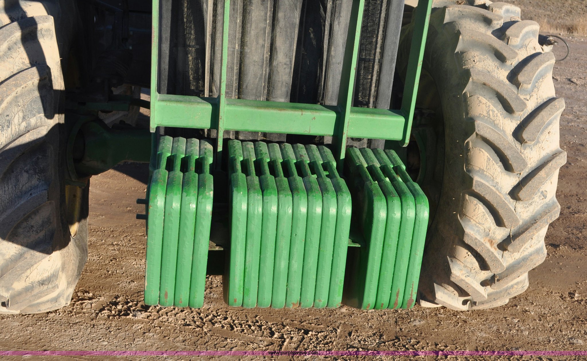 Purple Wave is selling a used Tractor in Utah. This item is a 1997 John Deere 8400 MFWD tractor with the following: 1,064 hours on meter, John Deere 8.1L six cylinder turbo diesel engine, Powershift transmission, 16F-4R gears, Differential lock, AC and heat, Tilt steering wheel, AM/FM, Air suspension seat, Three point, Top link, Quick attach, Large 1000 PTO, Seven pin outlet, (4) hydraulic remote sets, (16) suitcase weights, Wheel weights, 420/85R30 front tires, 480/80R46 rear tires, Dual wheels included, Serial RW8400P012202