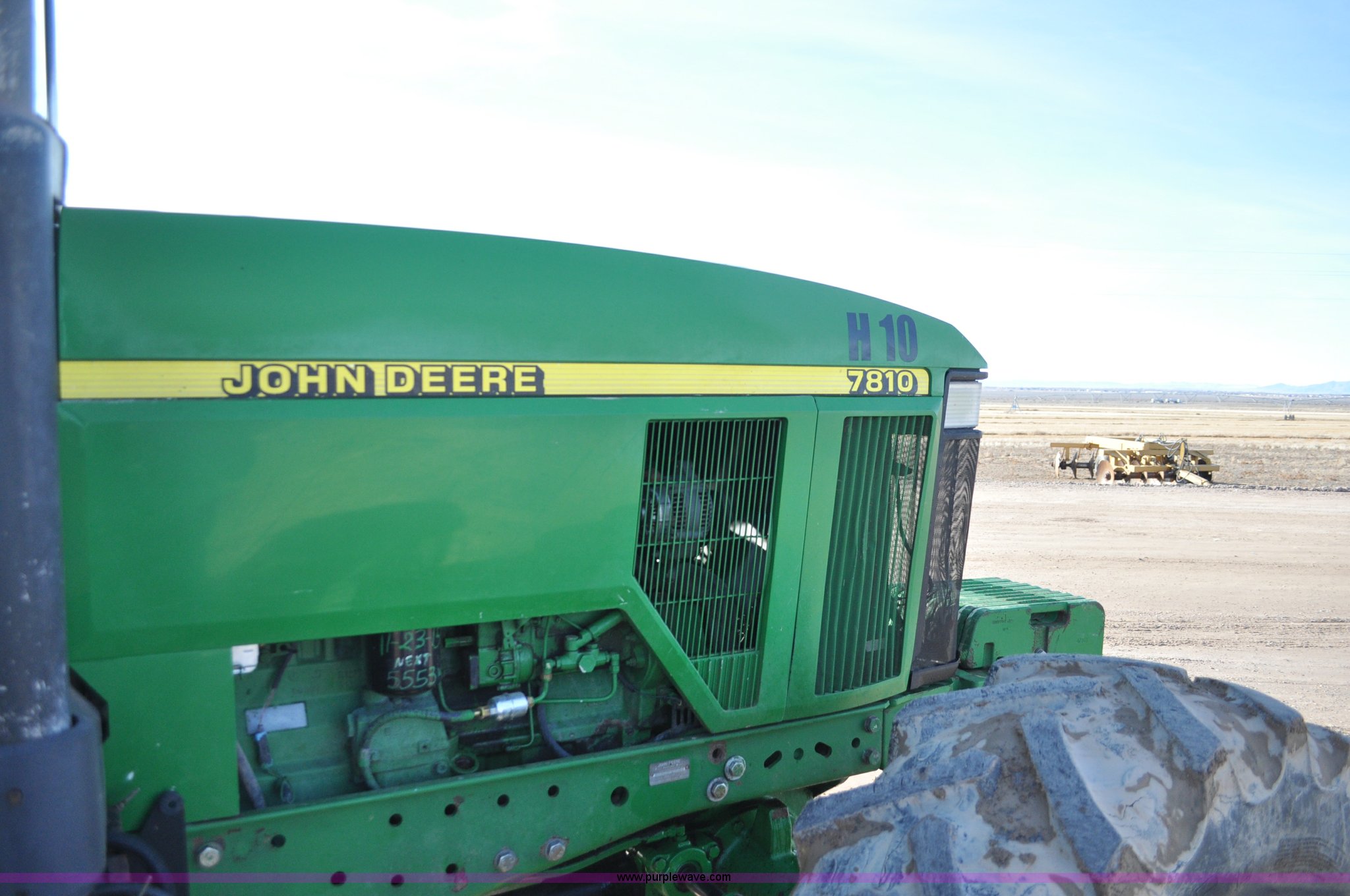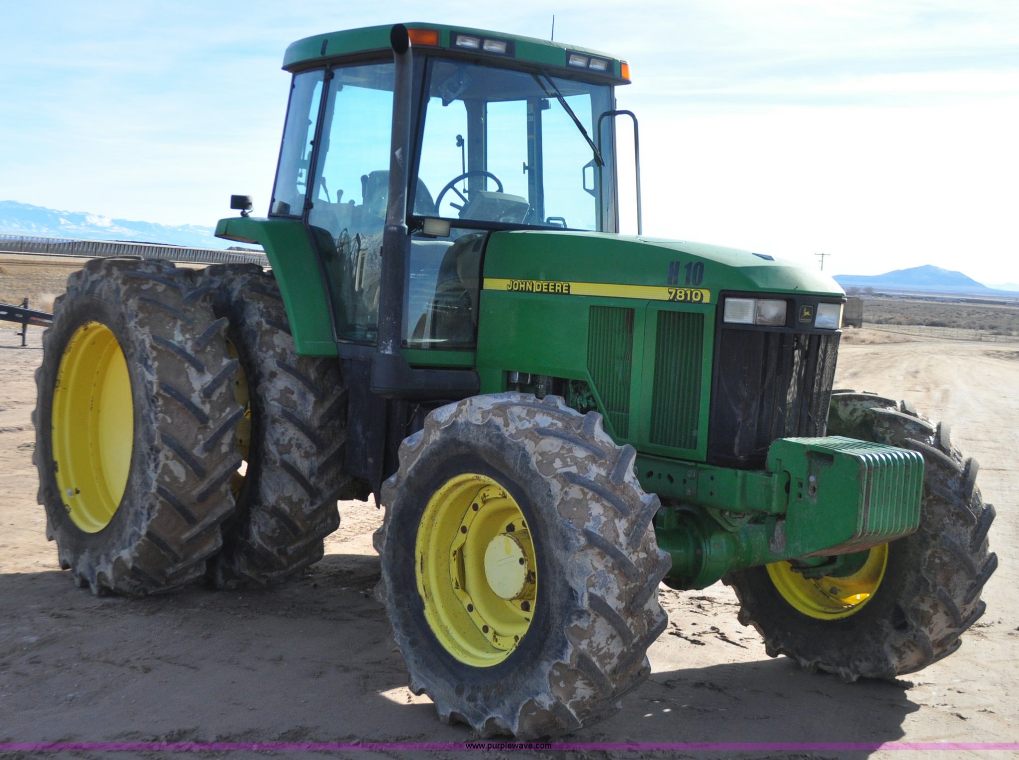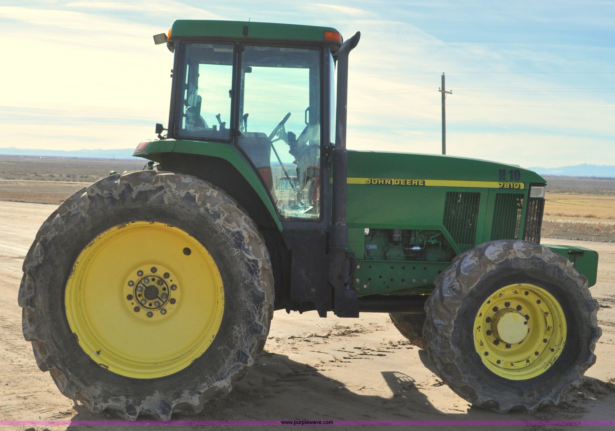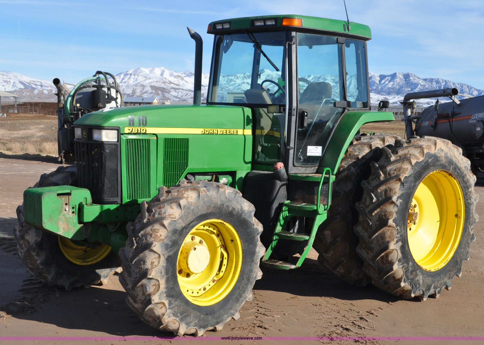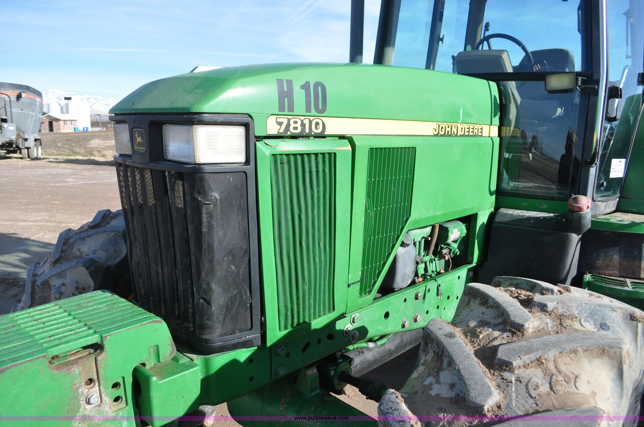 Purple Wave is selling a used Tractor in Utah. This item is a 1999 John Deere 7810 MFWD tractor with the following: 5,757 hours on meter, John Deere 8.1L six cylinder turbo diesel engine, Quad-Range transmission, 16F-16R gears, Differential lock, AC and heat, Tilt steering wheel, Air suspension seat, Three point, 1000 PTO, Seven pin outlet, (3) rear hydraulic remote sets, (10) suitcase weights, 420/85R28 front tires, 480/80R42 rear tires, Interior/exterior cosmetic damage, Serial RW7810R020803