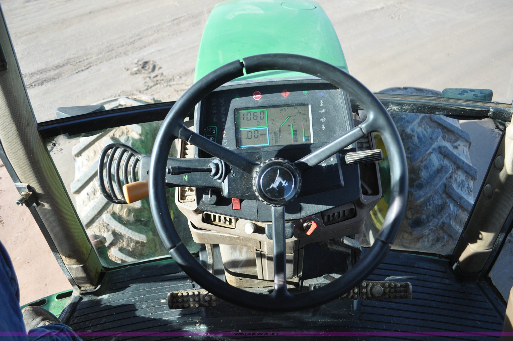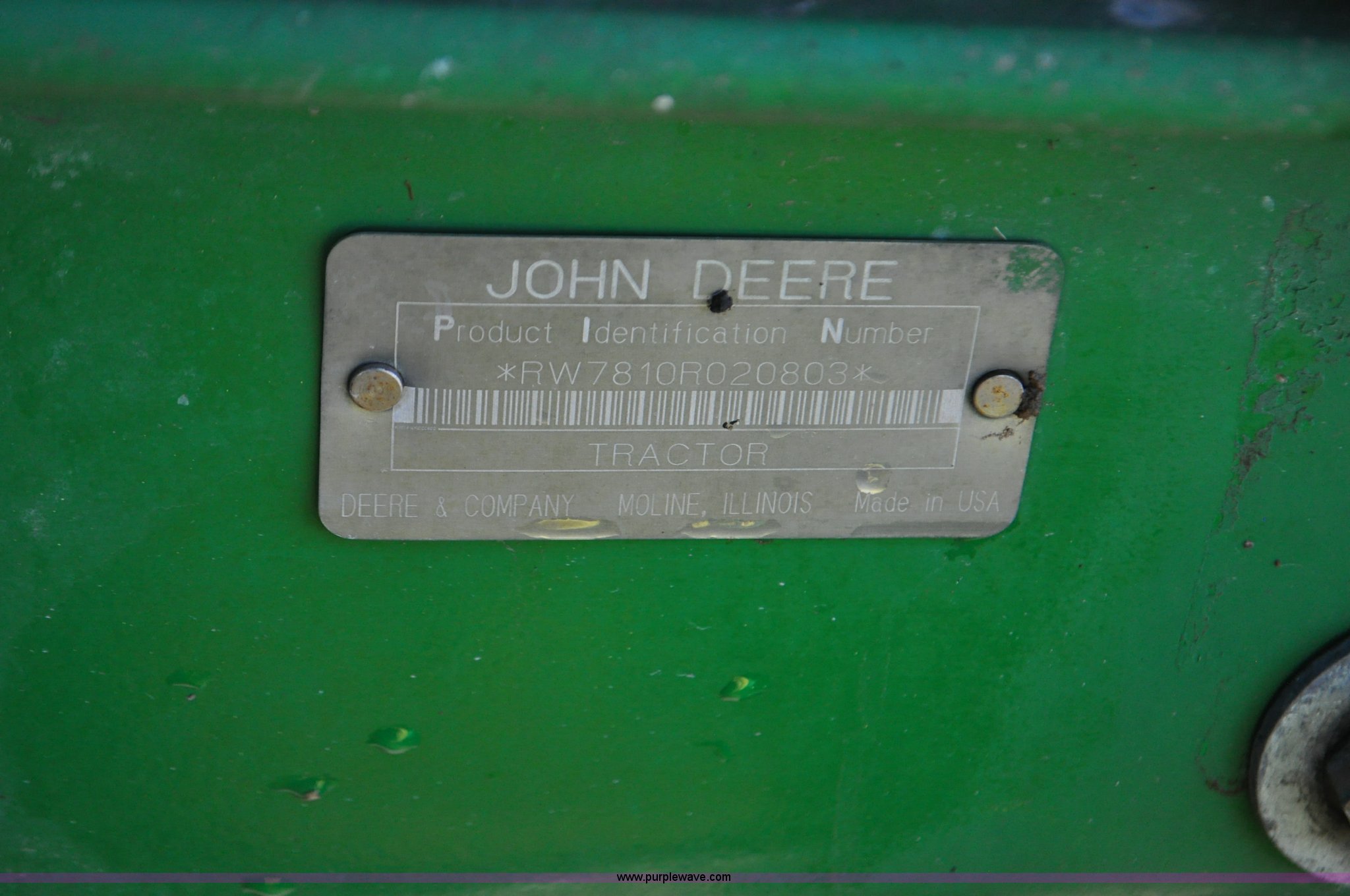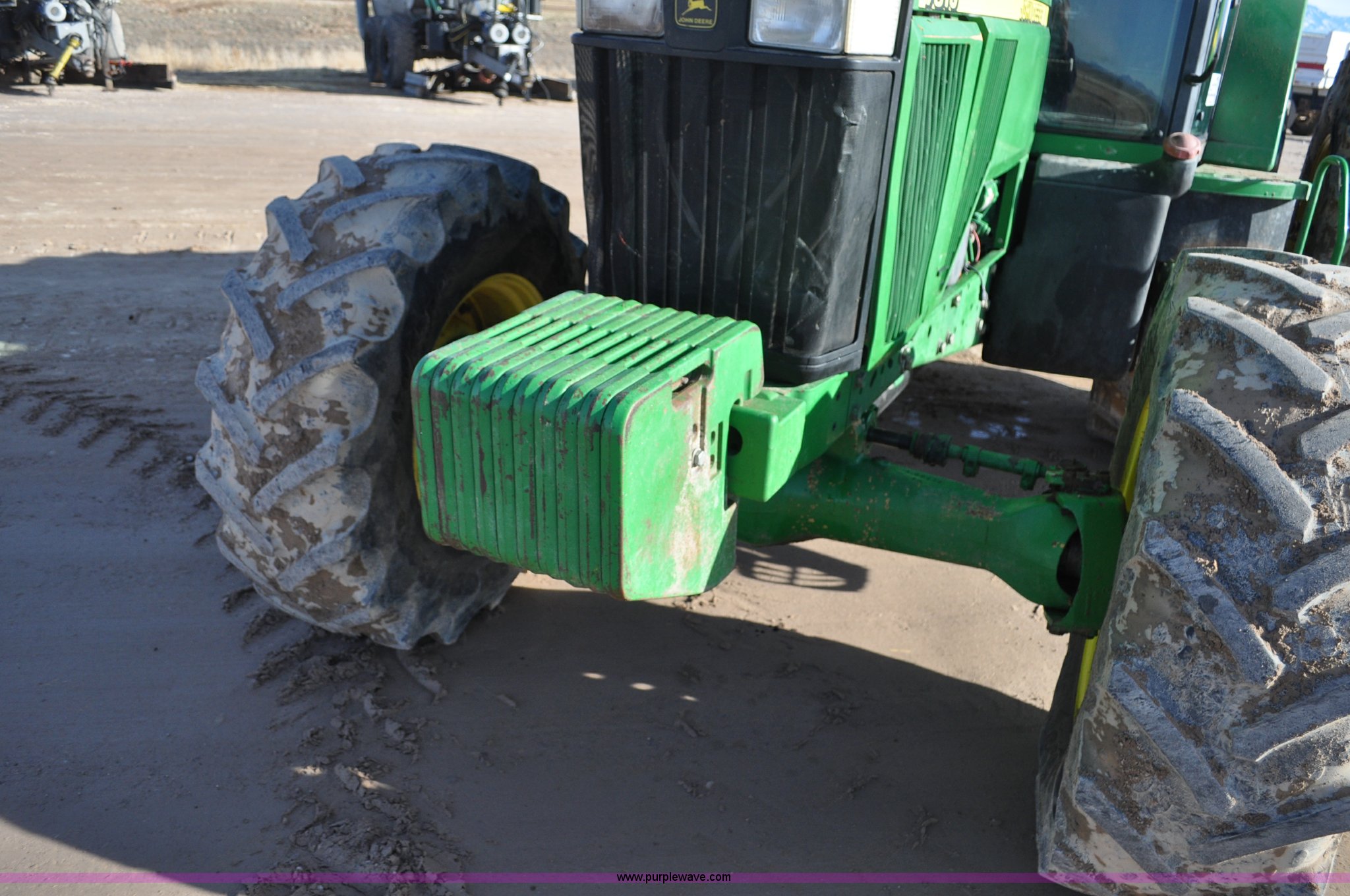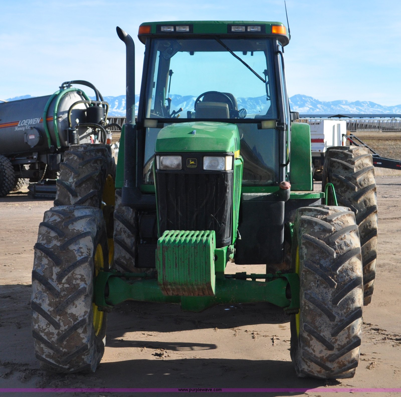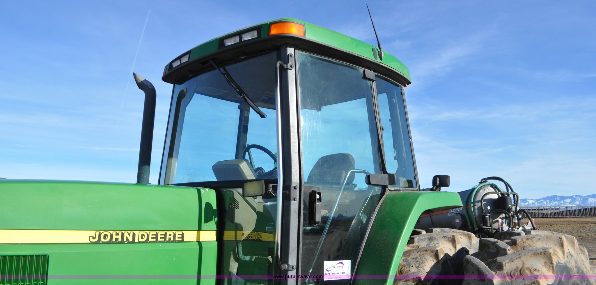 Purple Wave is selling a used Tractor in Utah. This item is a 1999 John Deere 7810 MFWD tractor with the following: 5,757 hours on meter, John Deere 8.1L six cylinder turbo diesel engine, Quad-Range transmission, 16F-16R gears, Differential lock, AC and heat, Tilt steering wheel, Air suspension seat, Three point, 1000 PTO, Seven pin outlet, (3) rear hydraulic remote sets, (10) suitcase weights, 420/85R28 front tires, 480/80R42 rear tires, Interior/exterior cosmetic damage, Serial RW7810R020803