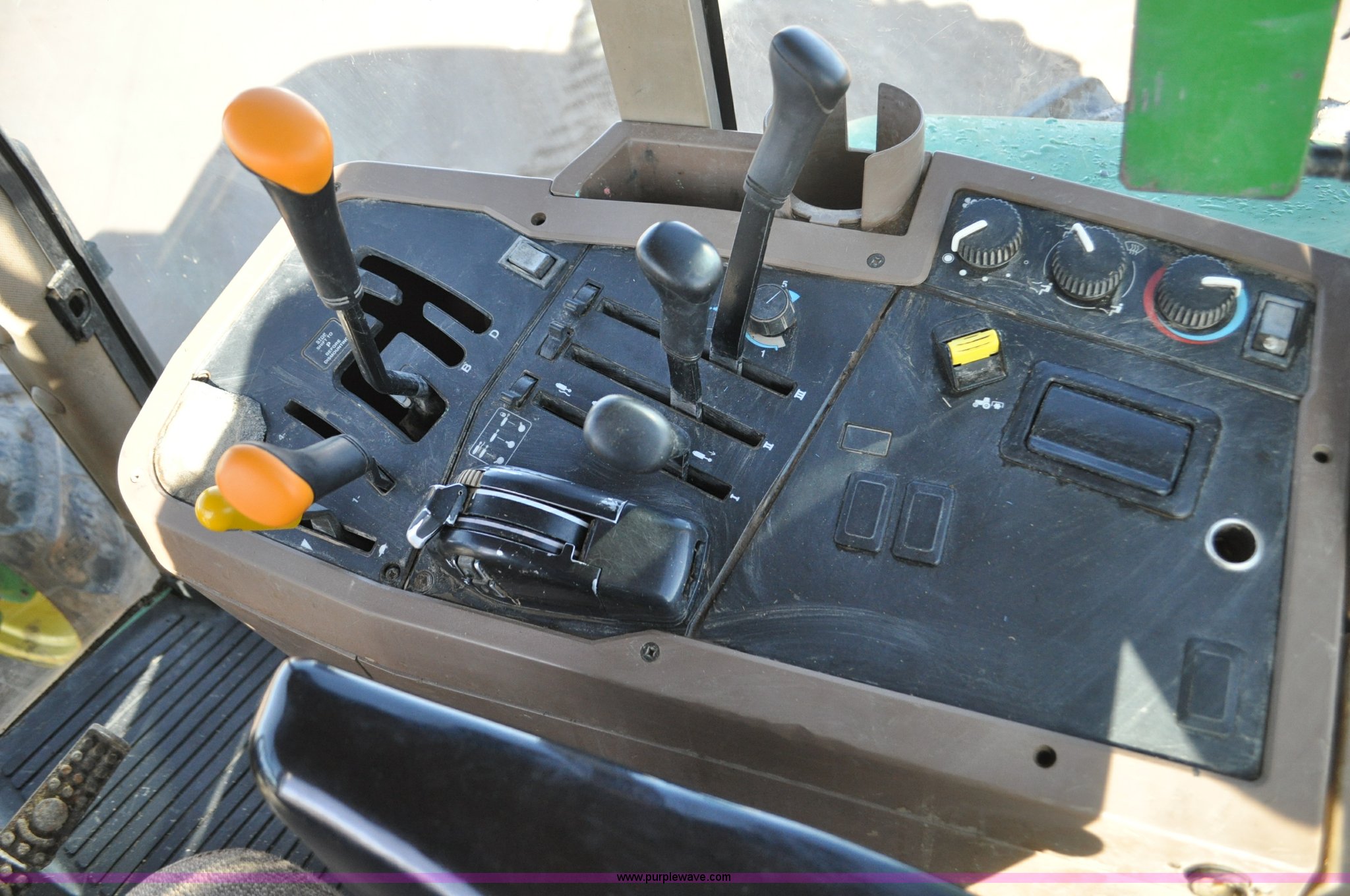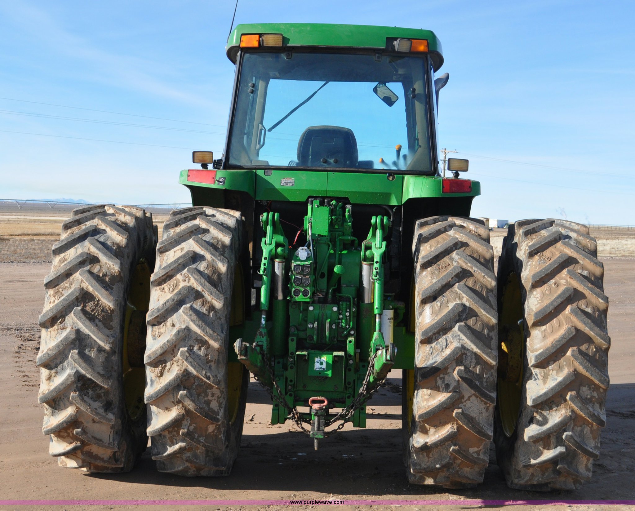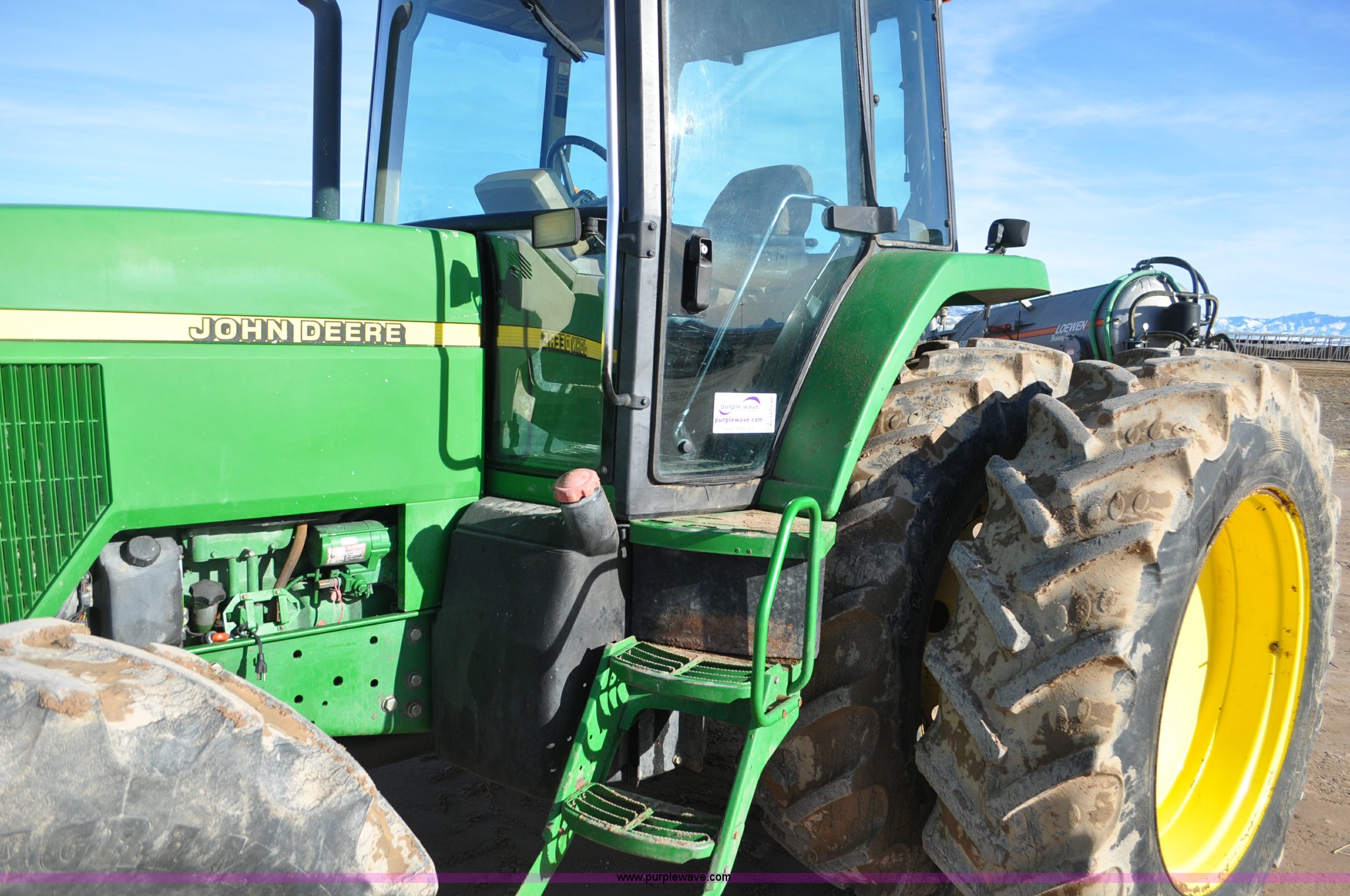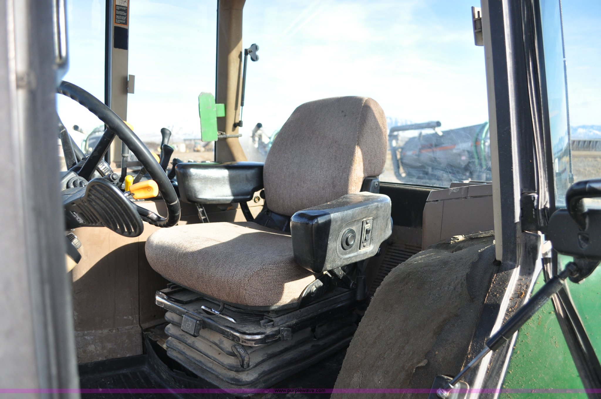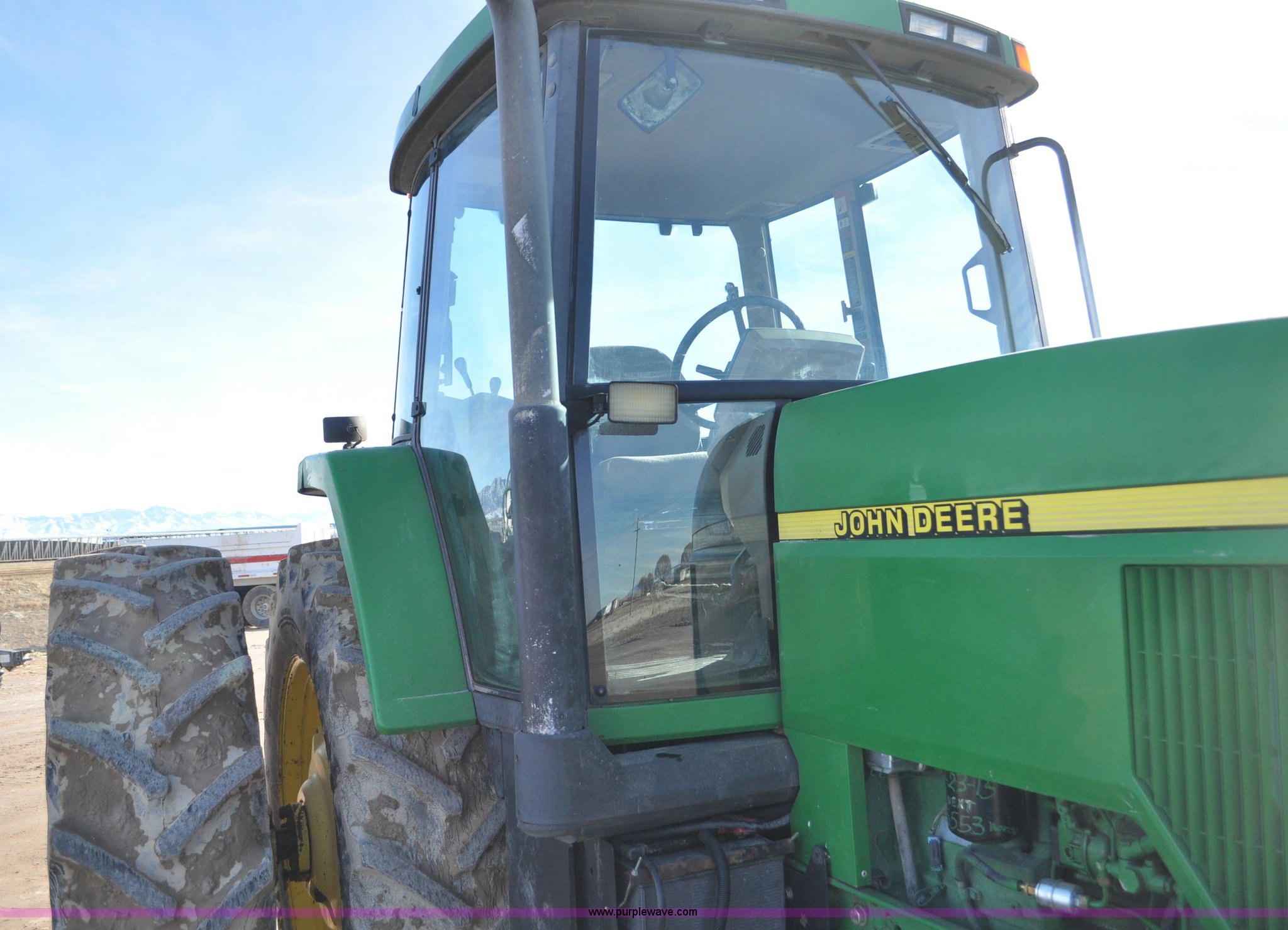 Purple Wave is selling a used Tractor in Utah. This item is a 1999 John Deere 7810 MFWD tractor with the following: 5,757 hours on meter, John Deere 8.1L six cylinder turbo diesel engine, Quad-Range transmission, 16F-16R gears, Differential lock, AC and heat, Tilt steering wheel, Air suspension seat, Three point, 1000 PTO, Seven pin outlet, (3) rear hydraulic remote sets, (10) suitcase weights, 420/85R28 front tires, 480/80R42 rear tires, Interior/exterior cosmetic damage, Serial RW7810R020803