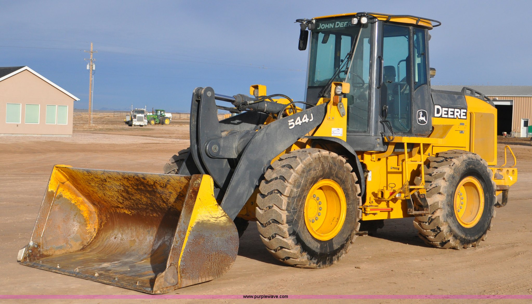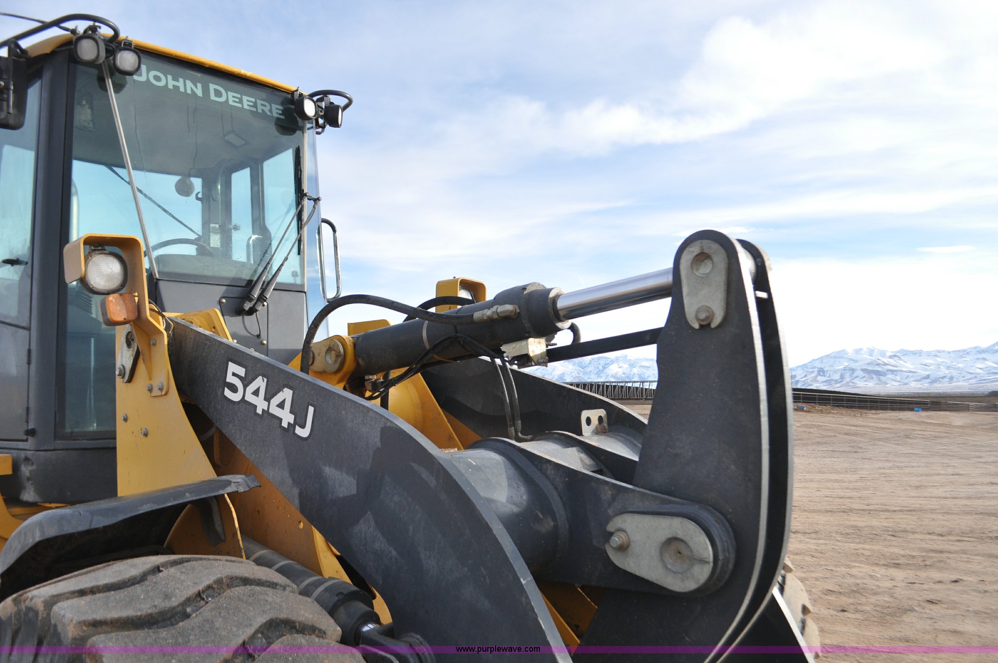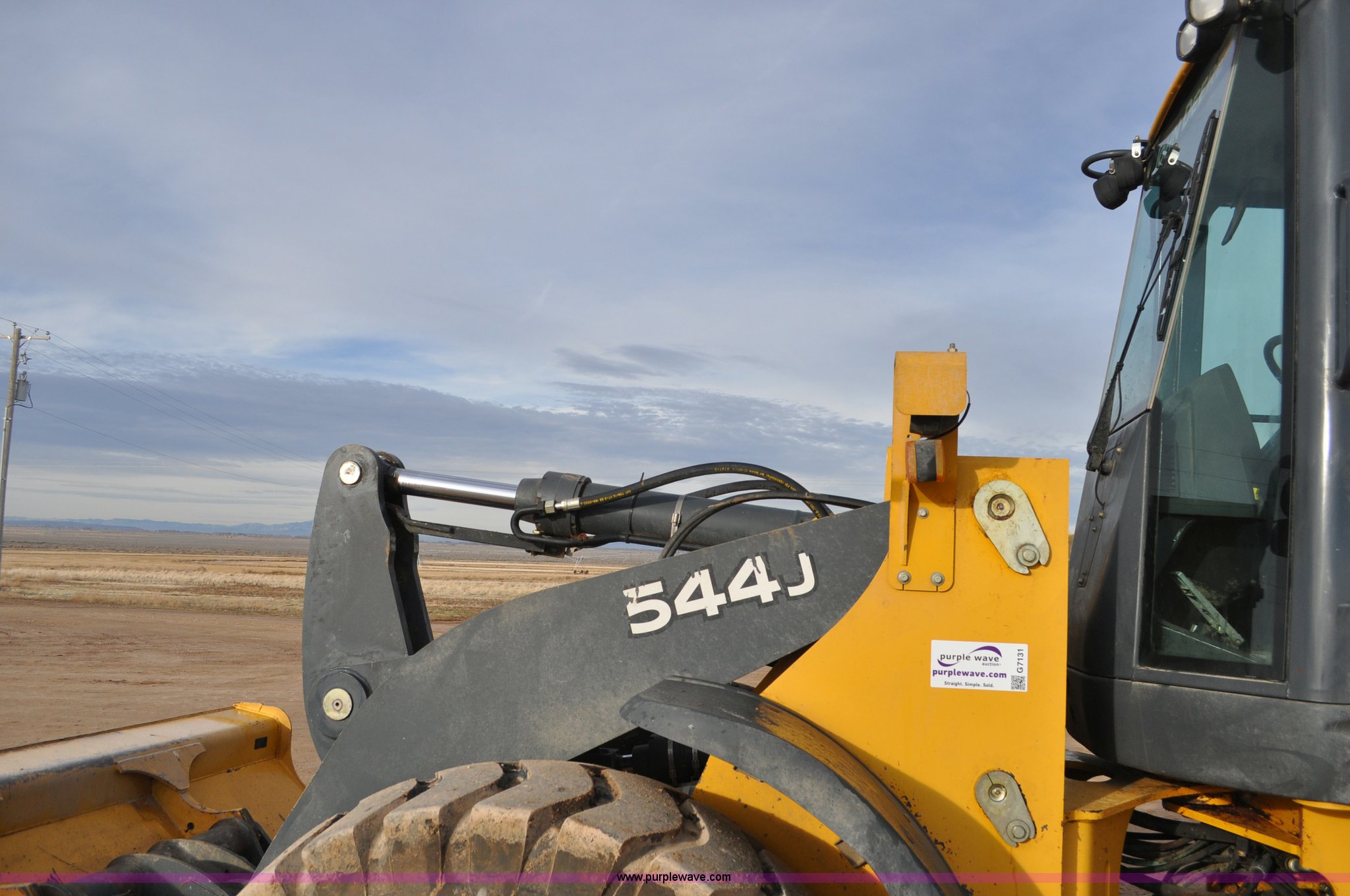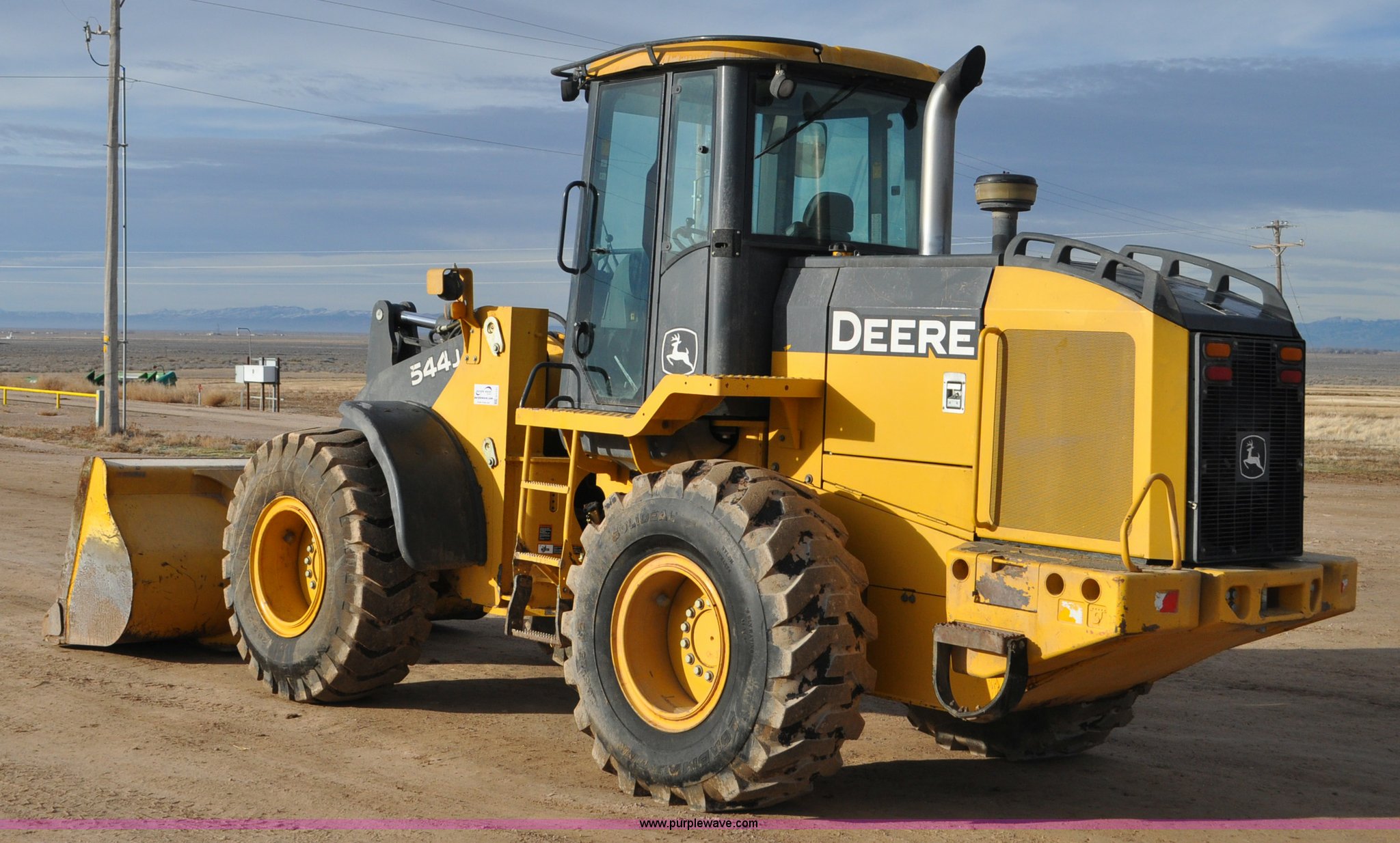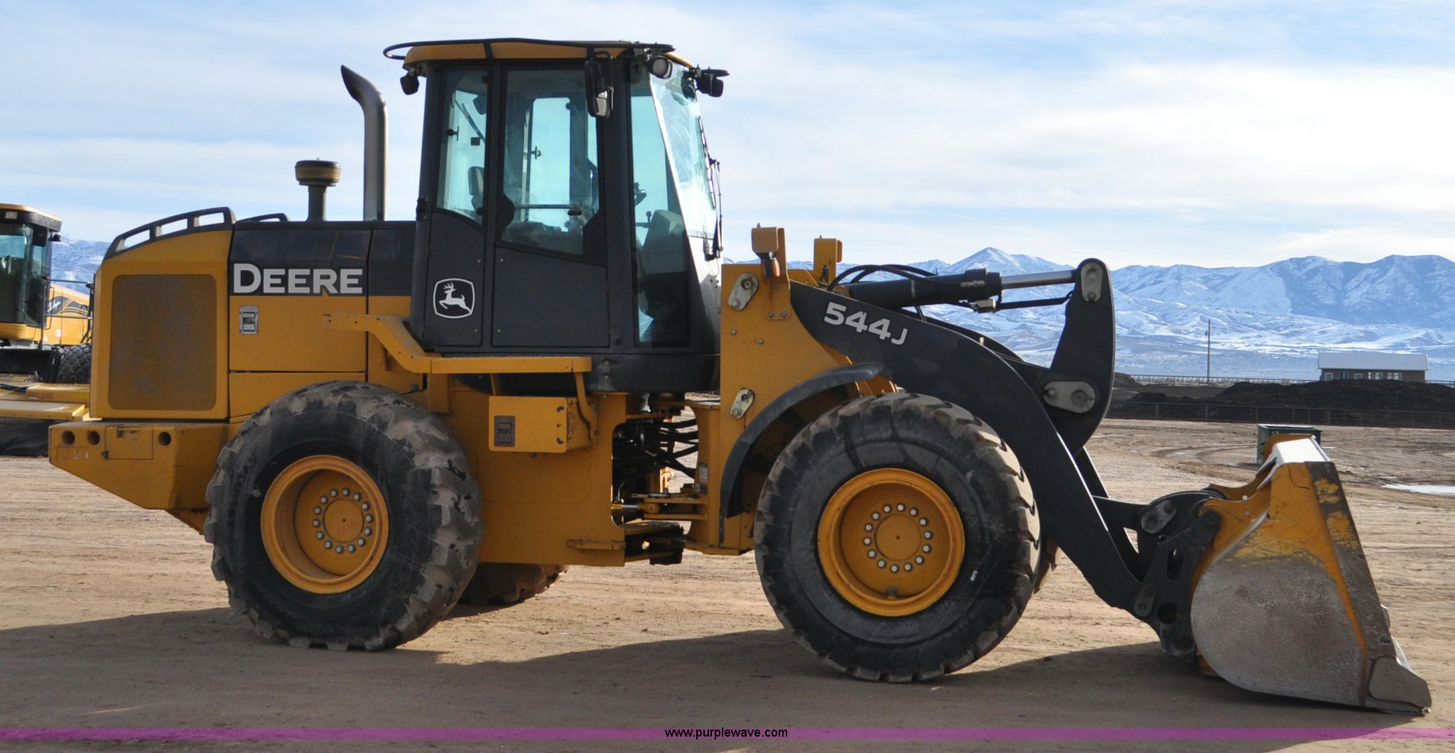 Purple Wave is selling a used Wheel Loader in Utah. This item is a 2007 John Deere 544J wheel loader with the following: 27,433 hours on meter, John Deere 6.8L six cylinder turbo diesel engine, 149 HP, Powershift transmission, 4F-3R gears, Differential lock, EROPS, AC and heat, Wipers, Front and rear work lights, John Deere 105"W general purpose bucket, Three cu. yd. capacity, Bolt-on cutting edge, Self-leveling, Hydraulic quick coupler, Counterweights, 20.5-25 tires, 28,332 lbs. base operating weight, Serial DW544JJZ613789