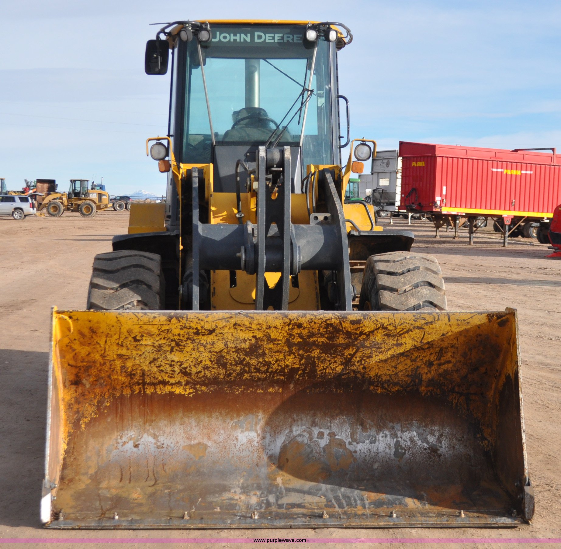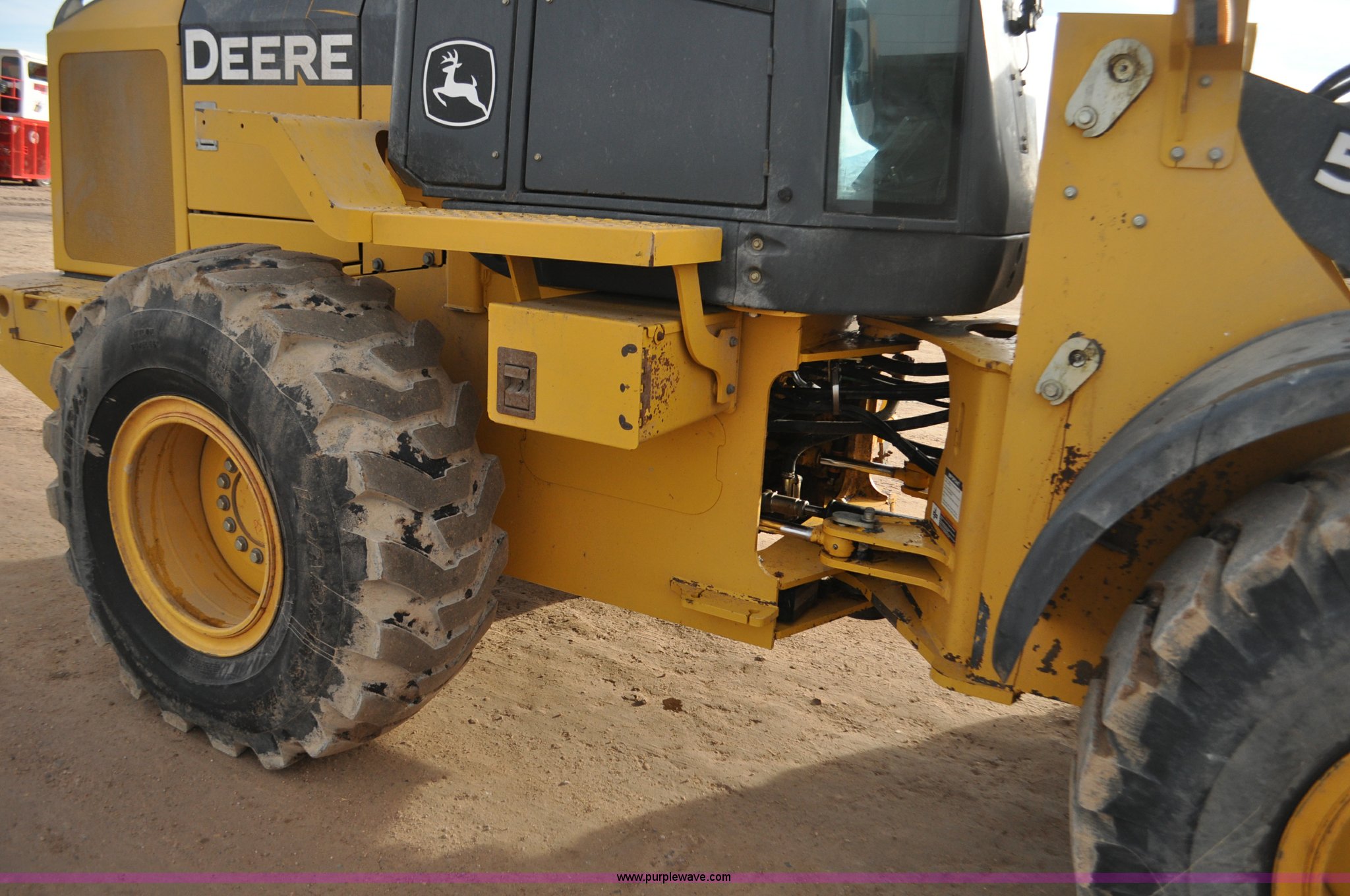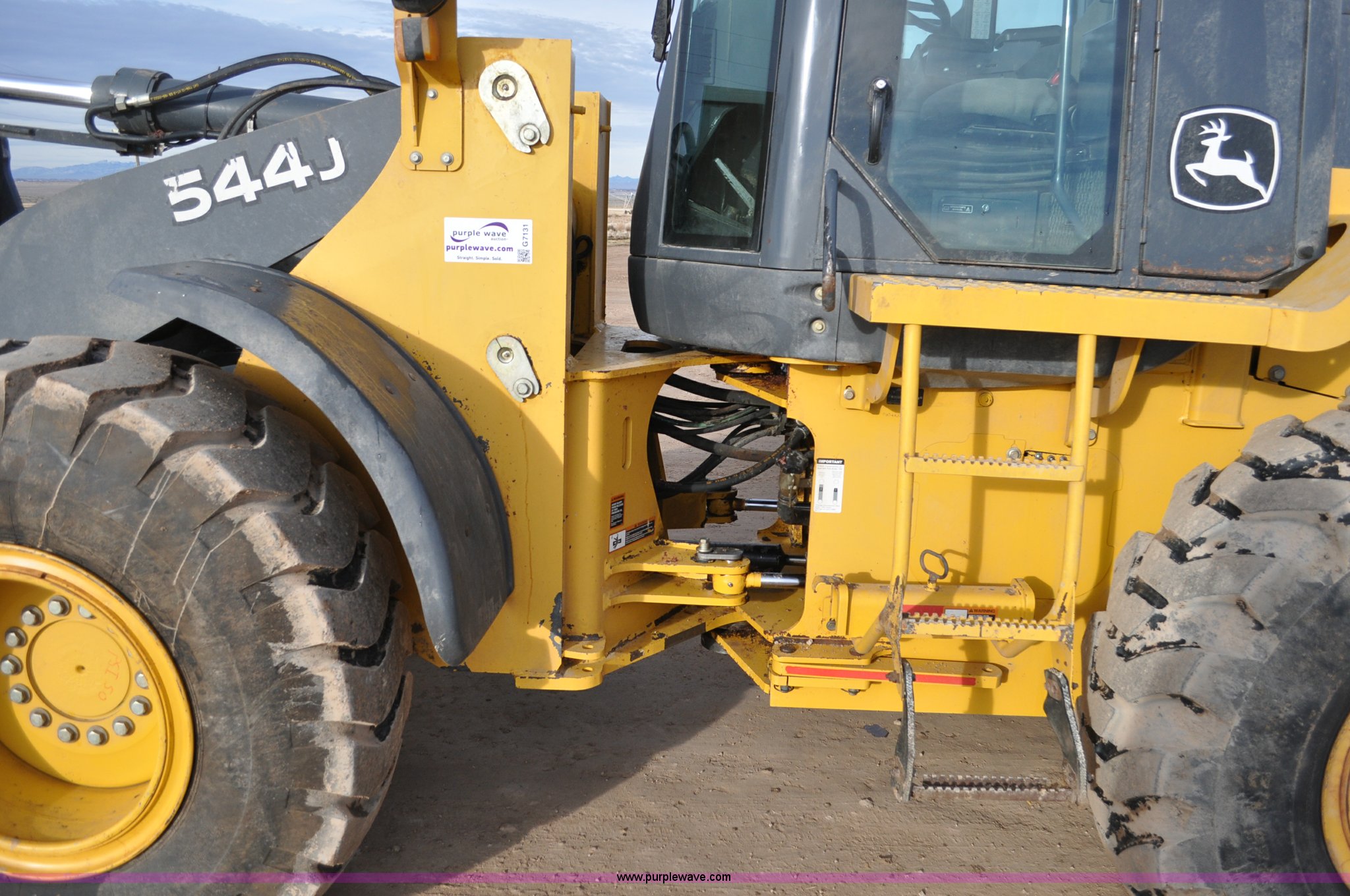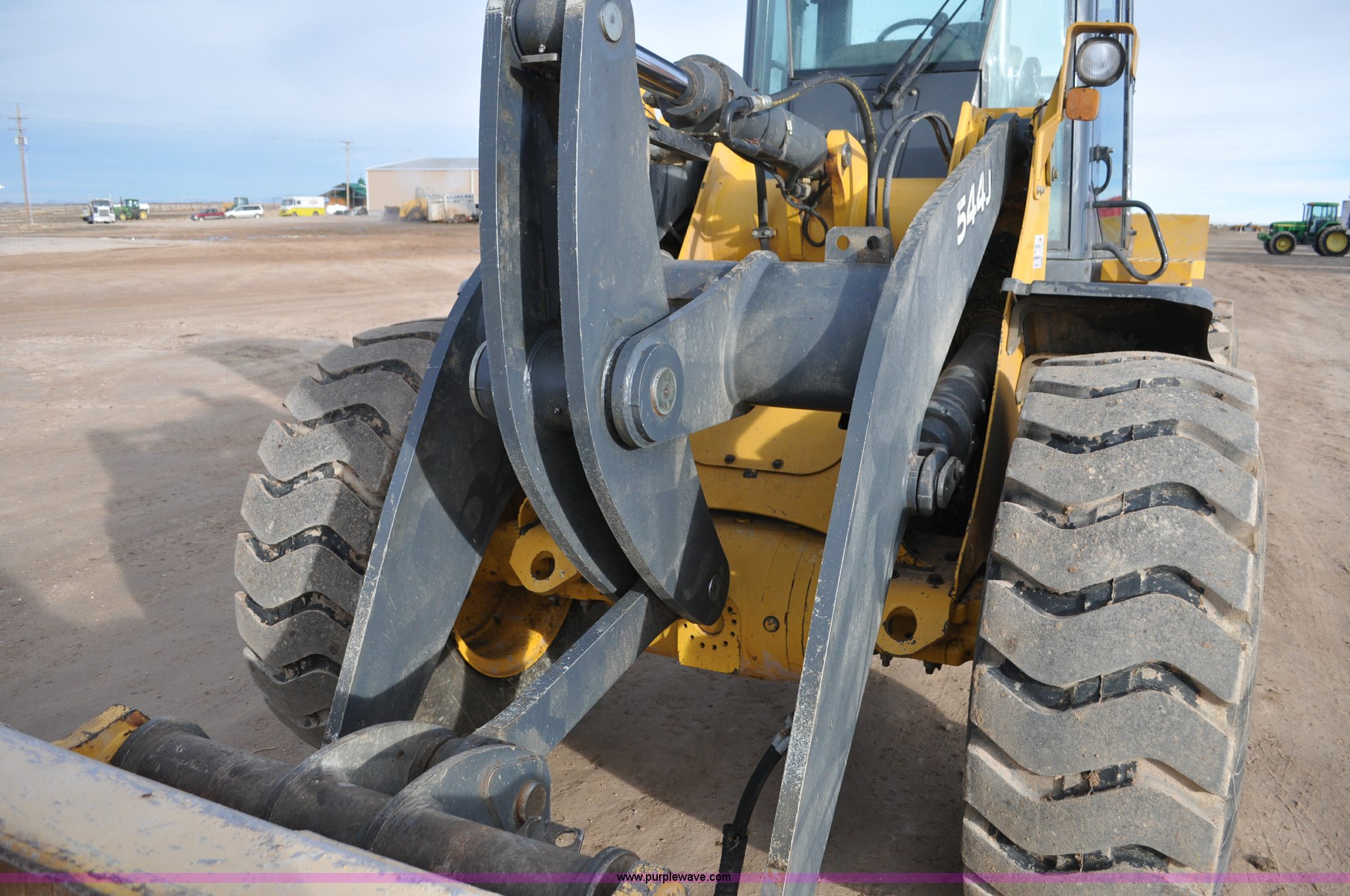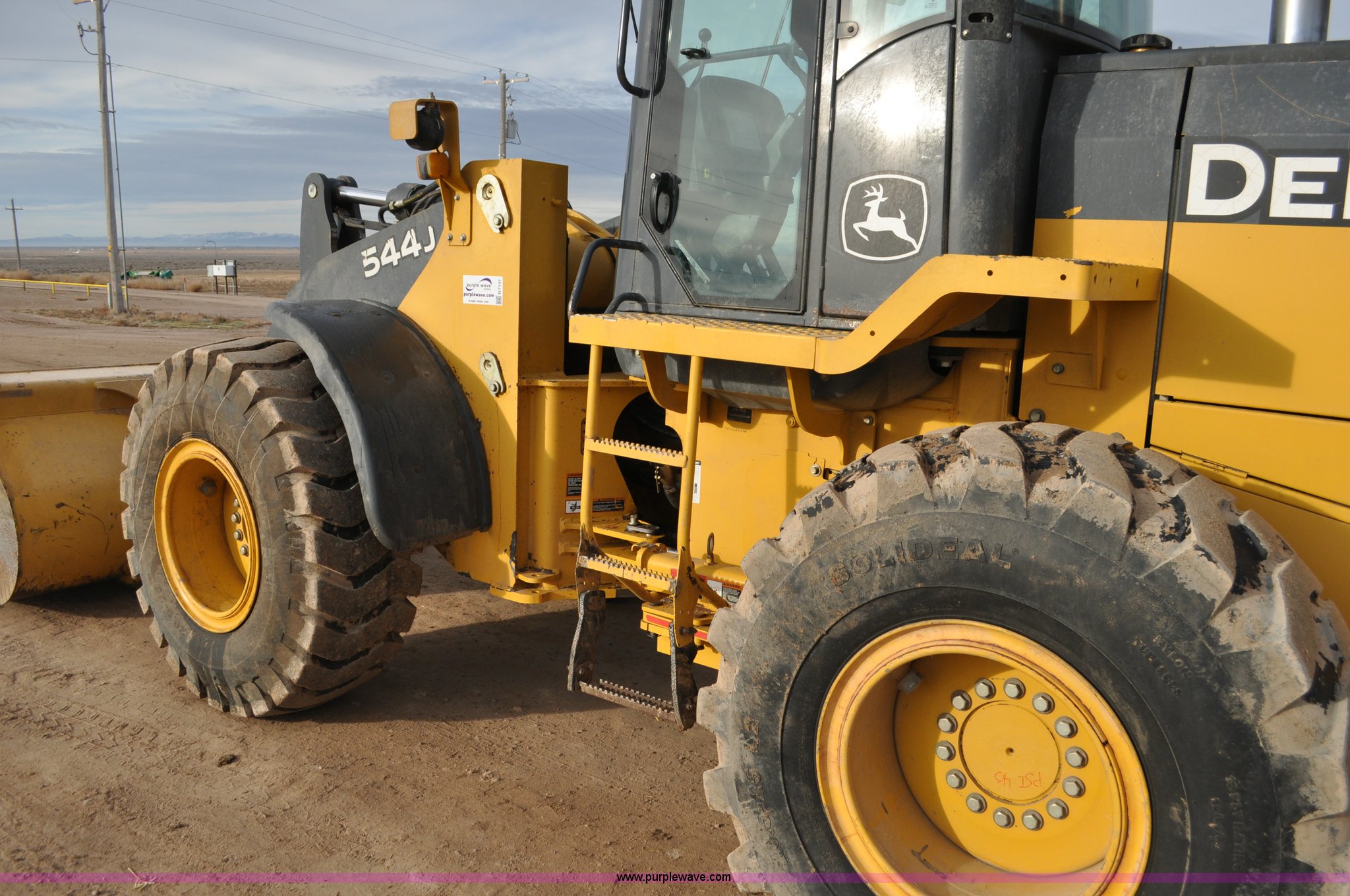 Purple Wave is selling a used Wheel Loader in Utah. This item is a 2007 John Deere 544J wheel loader with the following: 27,433 hours on meter, John Deere 6.8L six cylinder turbo diesel engine, 149 HP, Powershift transmission, 4F-3R gears, Differential lock, EROPS, AC and heat, Wipers, Front and rear work lights, John Deere 105"W general purpose bucket, Three cu. yd. capacity, Bolt-on cutting edge, Self-leveling, Hydraulic quick coupler, Counterweights, 20.5-25 tires, 28,332 lbs. base operating weight, Serial DW544JJZ613789