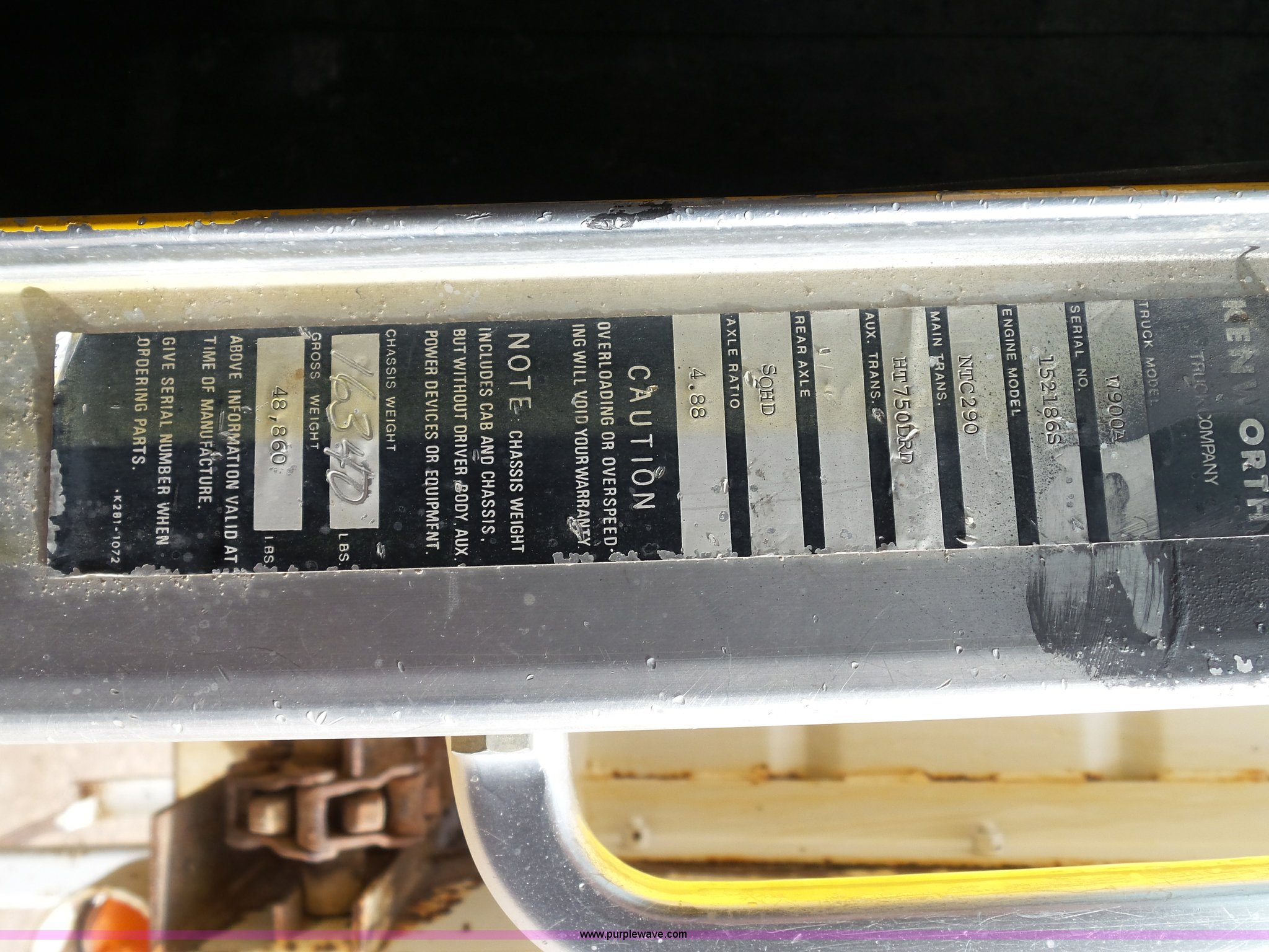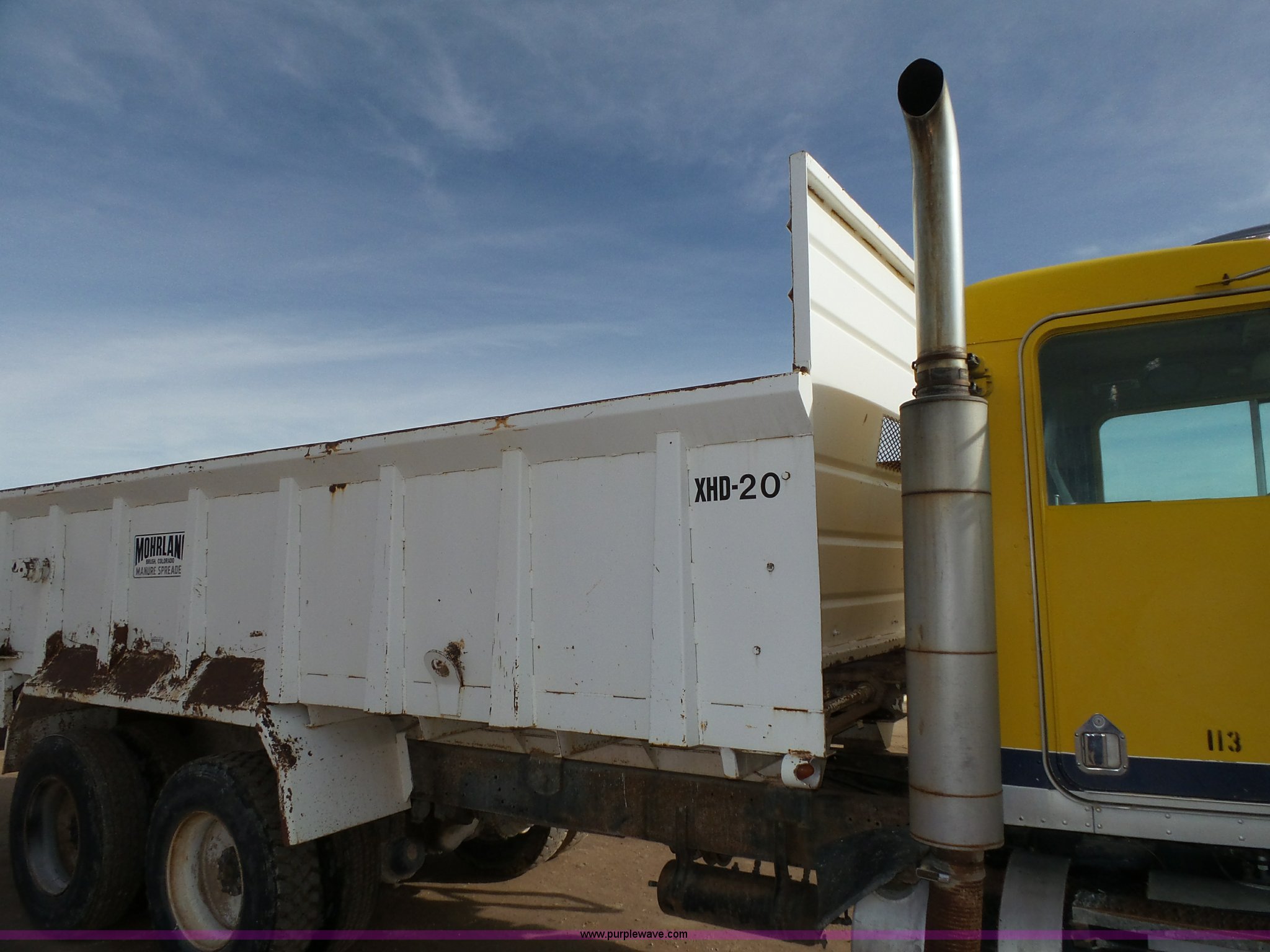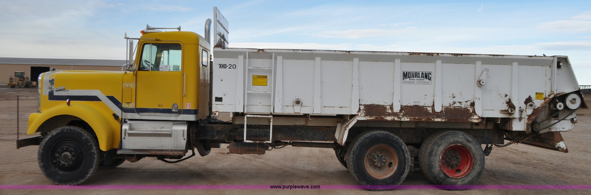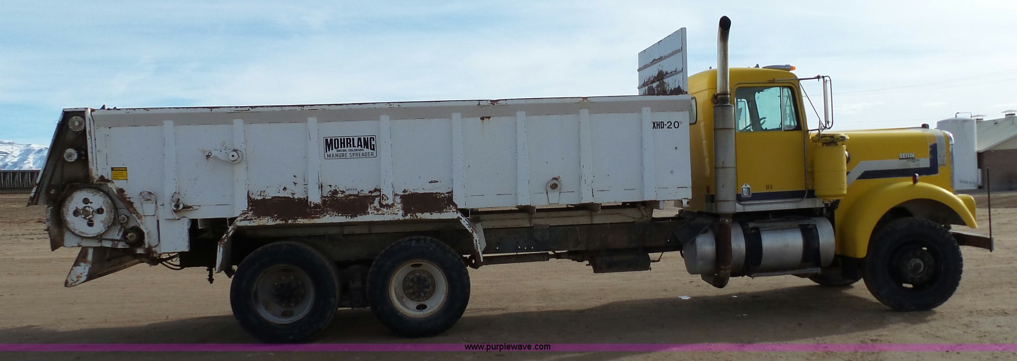 Purple Wave is selling a used Applicator Truck in Utah. This item is a 1977 Kenworth W900 manure spreader truck with the following: 251,266 miles on odometer, Cummins NTC290 six cylinder diesel engine, Automatic transmission, Inter-axle differential lock, Morlang XHD-20 manure spreader, 20'L, 7' interior width, 38"H sides, Chain driven floor, (2) horizontal beaters, Spring suspension, Air brakes, 11R22.5 tires, Interior/exterior cosmetic damage