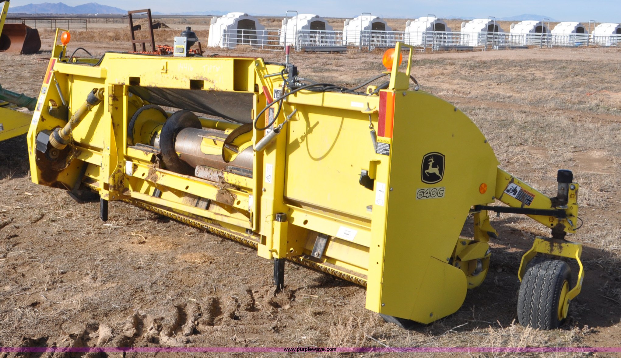 John Deere 640C pickup head. 12'W , Single drive line, Crop roller, Gauge wheels One missing, Serial 1KM640CGKAA114416. Bliss Dairy. 1420 Milky Way Drive. Delta, UT 84624