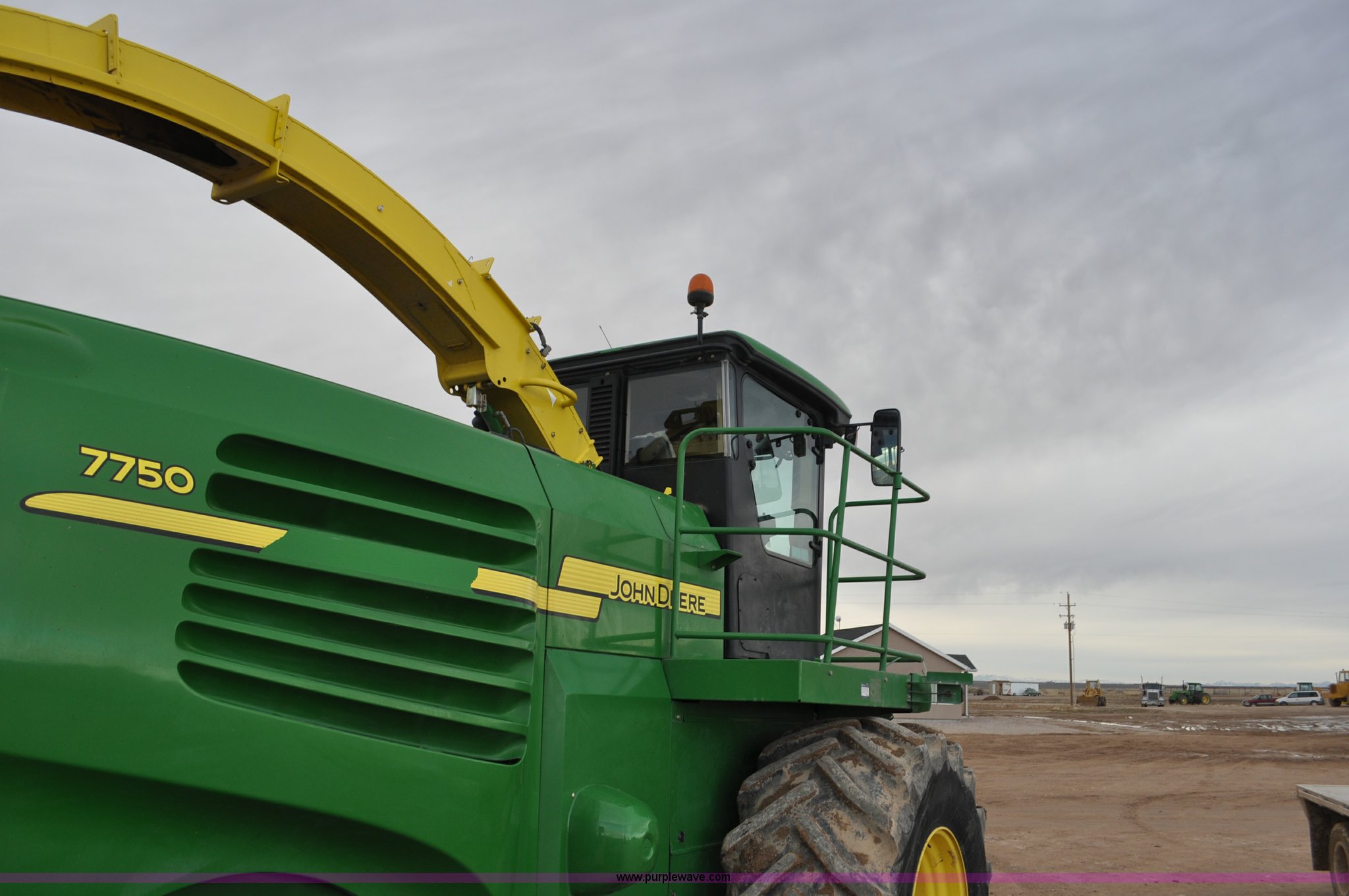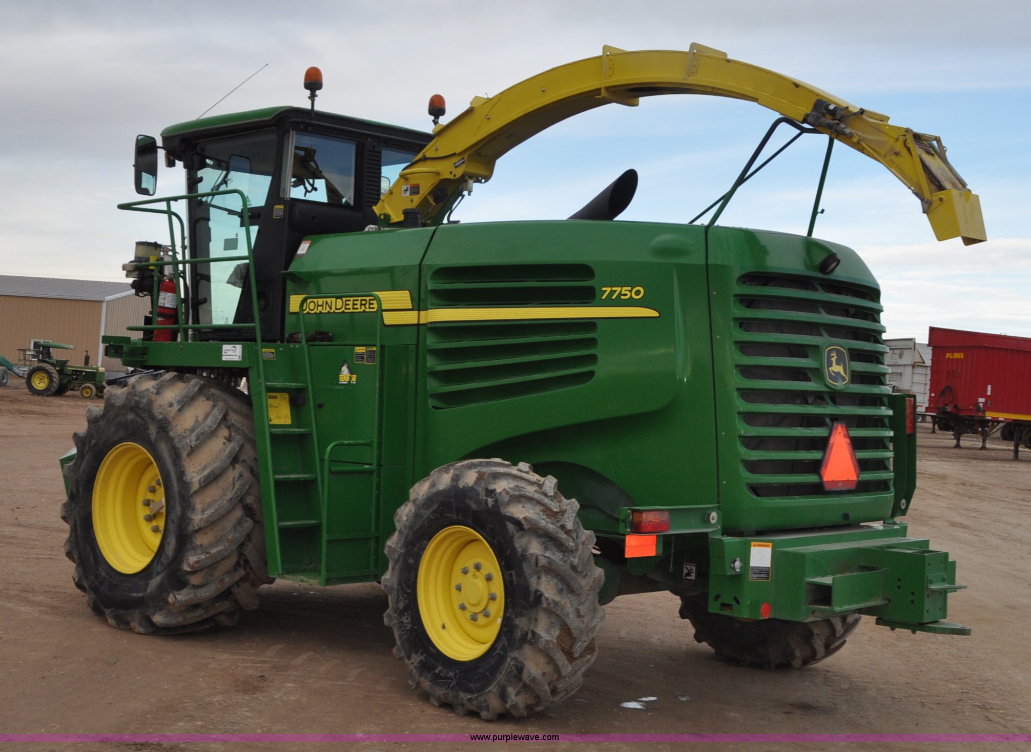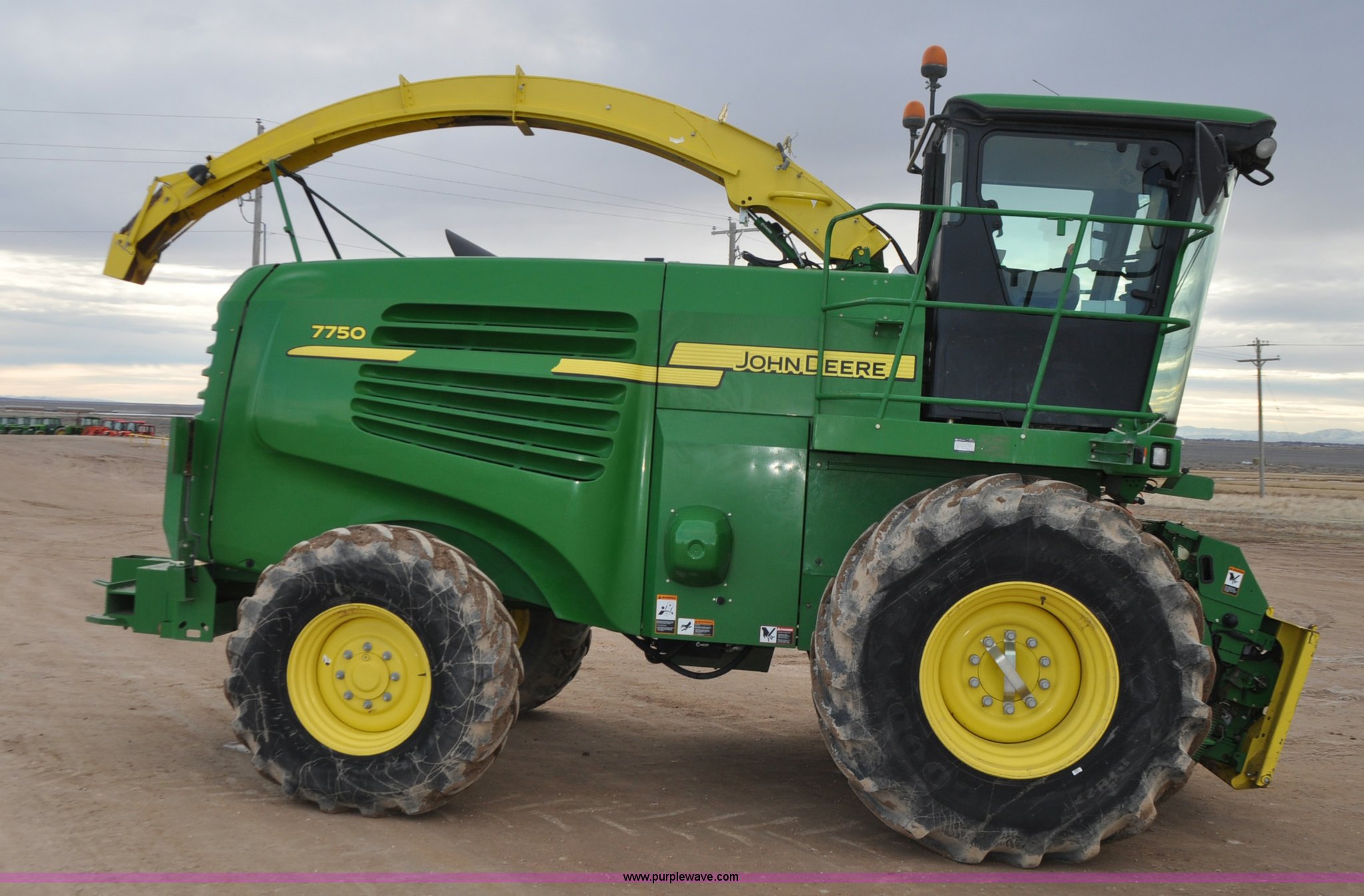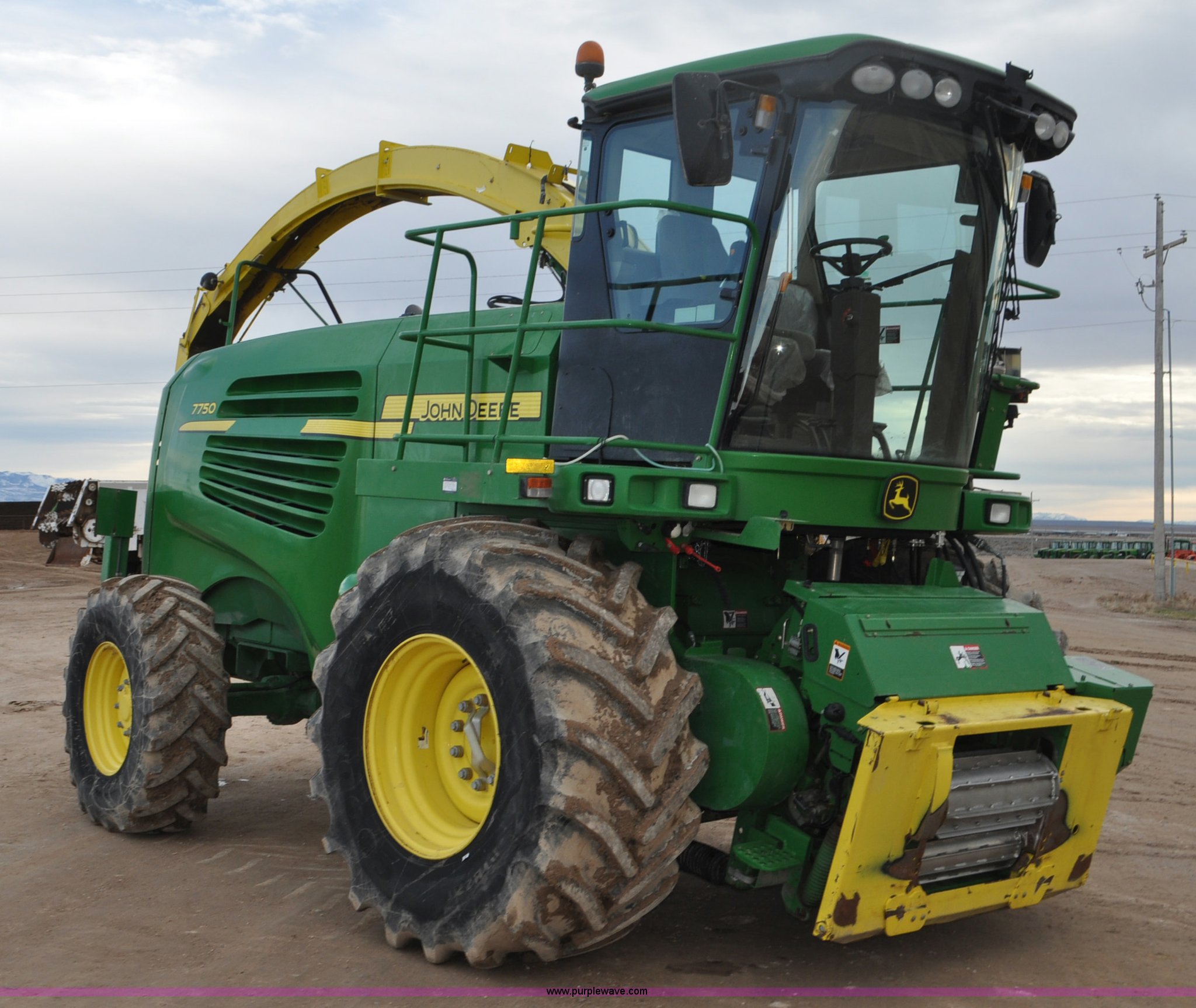 Purple Wave is selling a used Forage Harvester in Utah. This item is a 2012 John Deere 7750 forage harvester with the following: 2,389 engine hours, 1,708 cutter hours, John Deere 6135H 13.5L six cylinder turbo diesel engine, 615 HP, Serial RG6135L026797, Hydrostatic transmission, 3F-3R gears, AC and heat, Tilt steering wheel, AM/FM, Air suspension seat, Instructor's seat, GreenStar ready, Kernal processor, 800/65R32 front tires, 480/80R26 rear tires, Serial 1Z07750XKC0512107