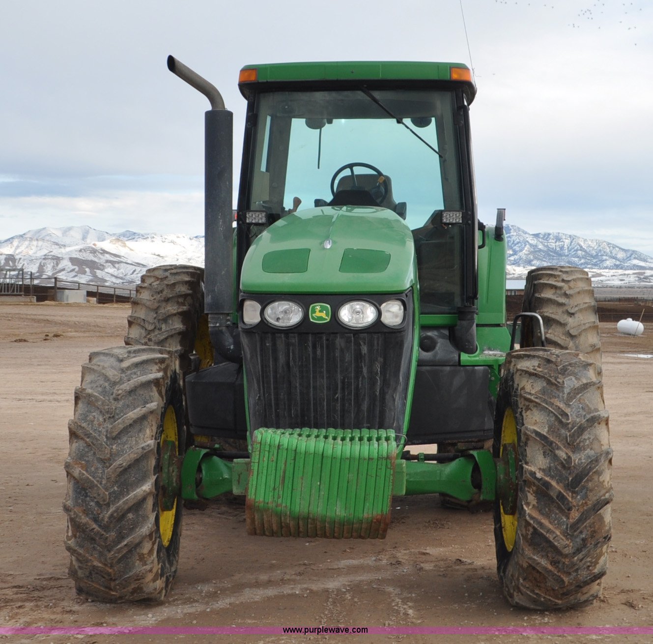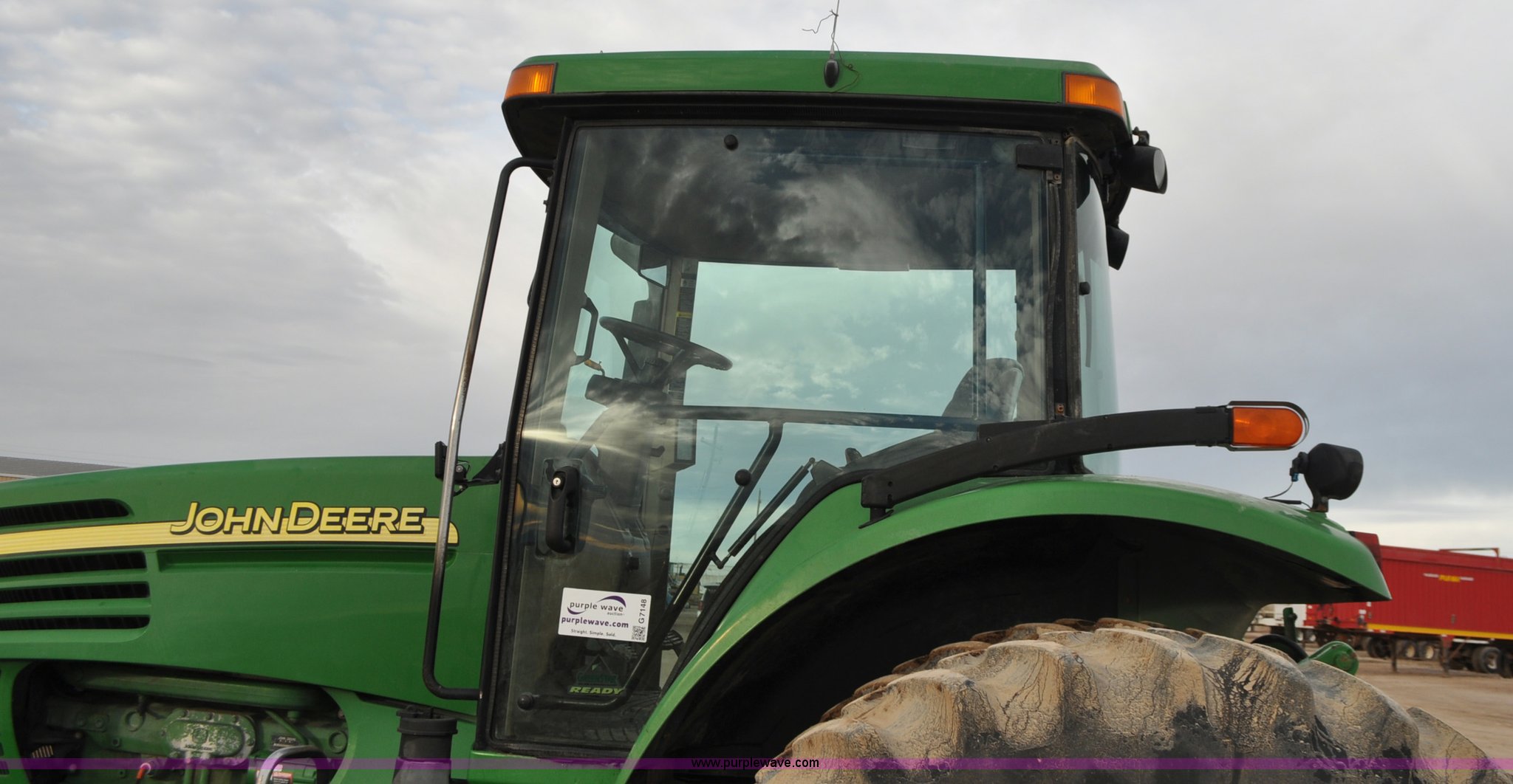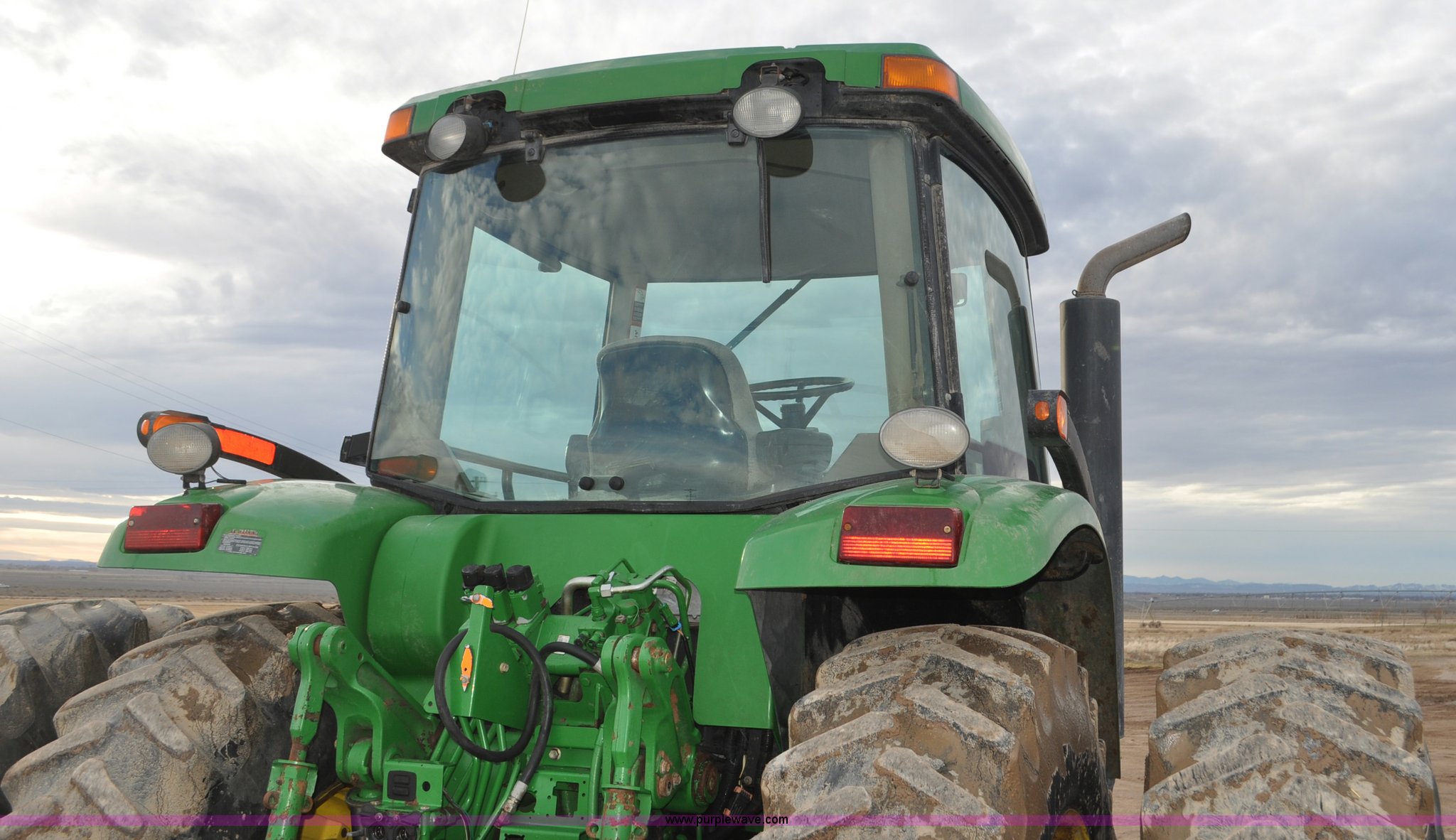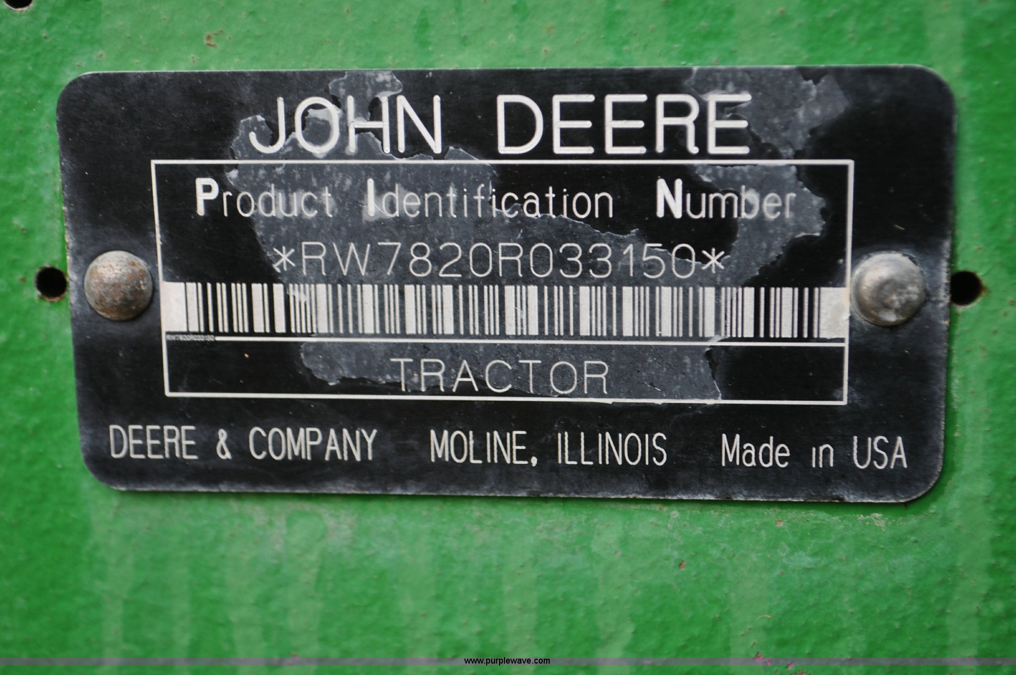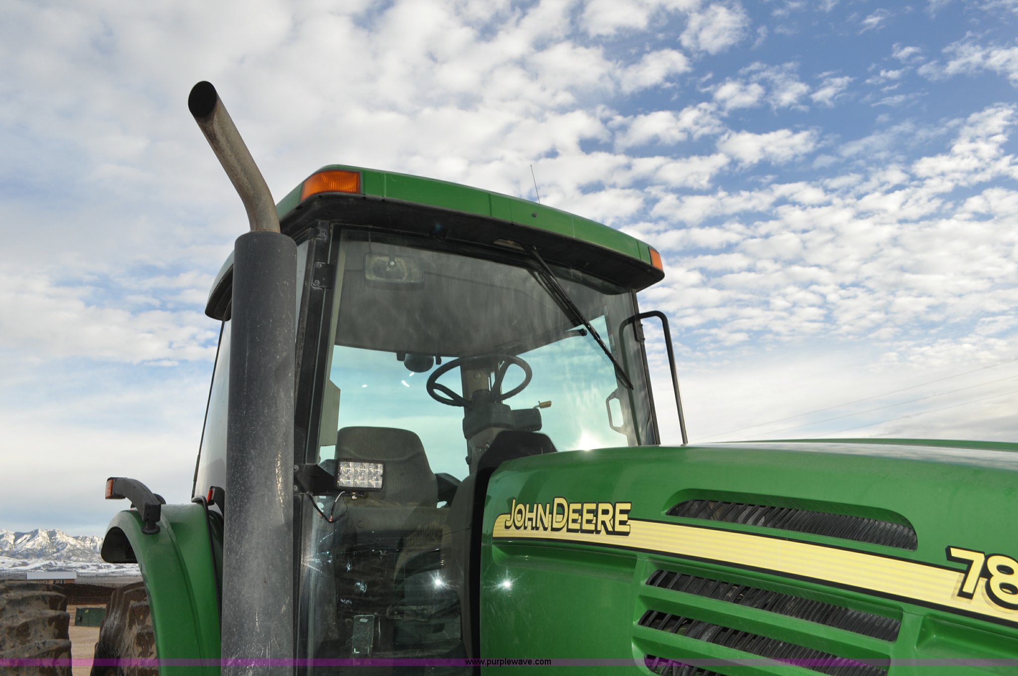 Purple Wave is selling a used Tractor in Utah. This item is a 2005 John Deere 7820 MFWD tractor with the following: 16,828 hours on meter, John Deere 6081H 6.8L six cylinder turbo diesel engine, Quad-Range Plus transmission, 20F-20R gears, Differential lock, AC and heat, Air suspension seat, Tilt steering wheel, Three point, Top link, 1000 PTO, Seven pin outlet, (3) rear hydraulic remote sets, (16) suitcase weights, Wheel weights, 16.9R28 front tires, 480/80R42 dual rear tires, PTO shaft missing, Interior/exterior cosmetic damage, Serial RW7820R033150