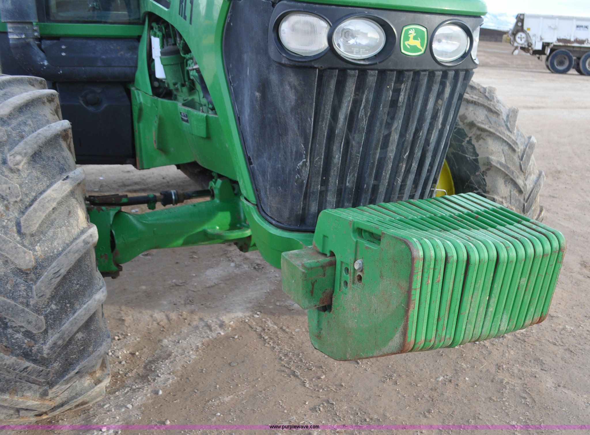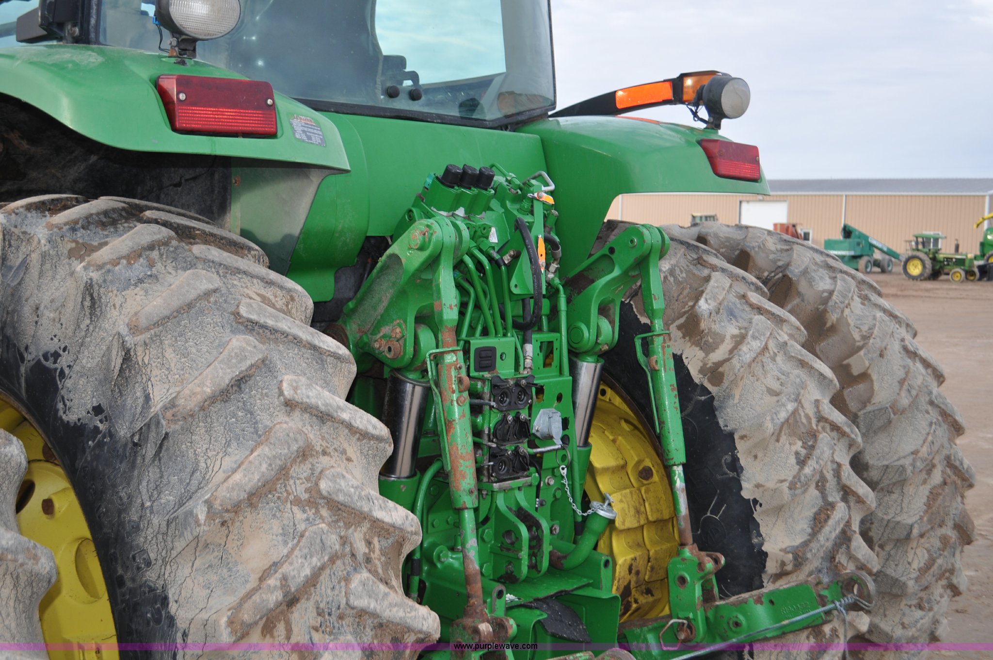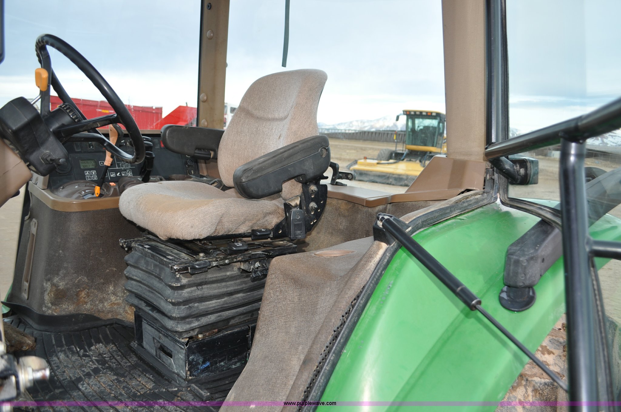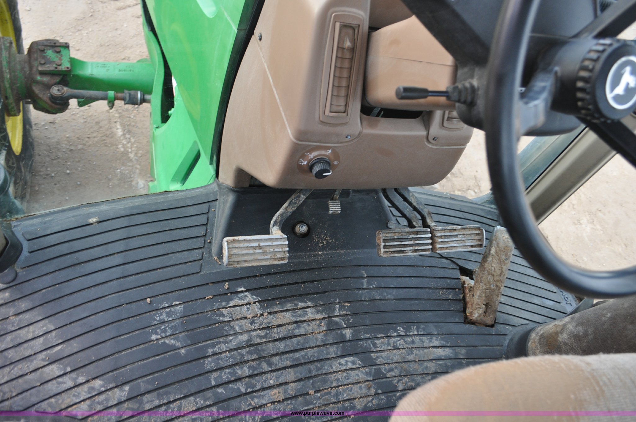 Purple Wave is selling a used Tractor in Utah. This item is a 2005 John Deere 7820 MFWD tractor with the following: 16,828 hours on meter, John Deere 6081H 6.8L six cylinder turbo diesel engine, Quad-Range Plus transmission, 20F-20R gears, Differential lock, AC and heat, Air suspension seat, Tilt steering wheel, Three point, Top link, 1000 PTO, Seven pin outlet, (3) rear hydraulic remote sets, (16) suitcase weights, Wheel weights, 16.9R28 front tires, 480/80R42 dual rear tires, PTO shaft missing, Interior/exterior cosmetic damage, Serial RW7820R033150
