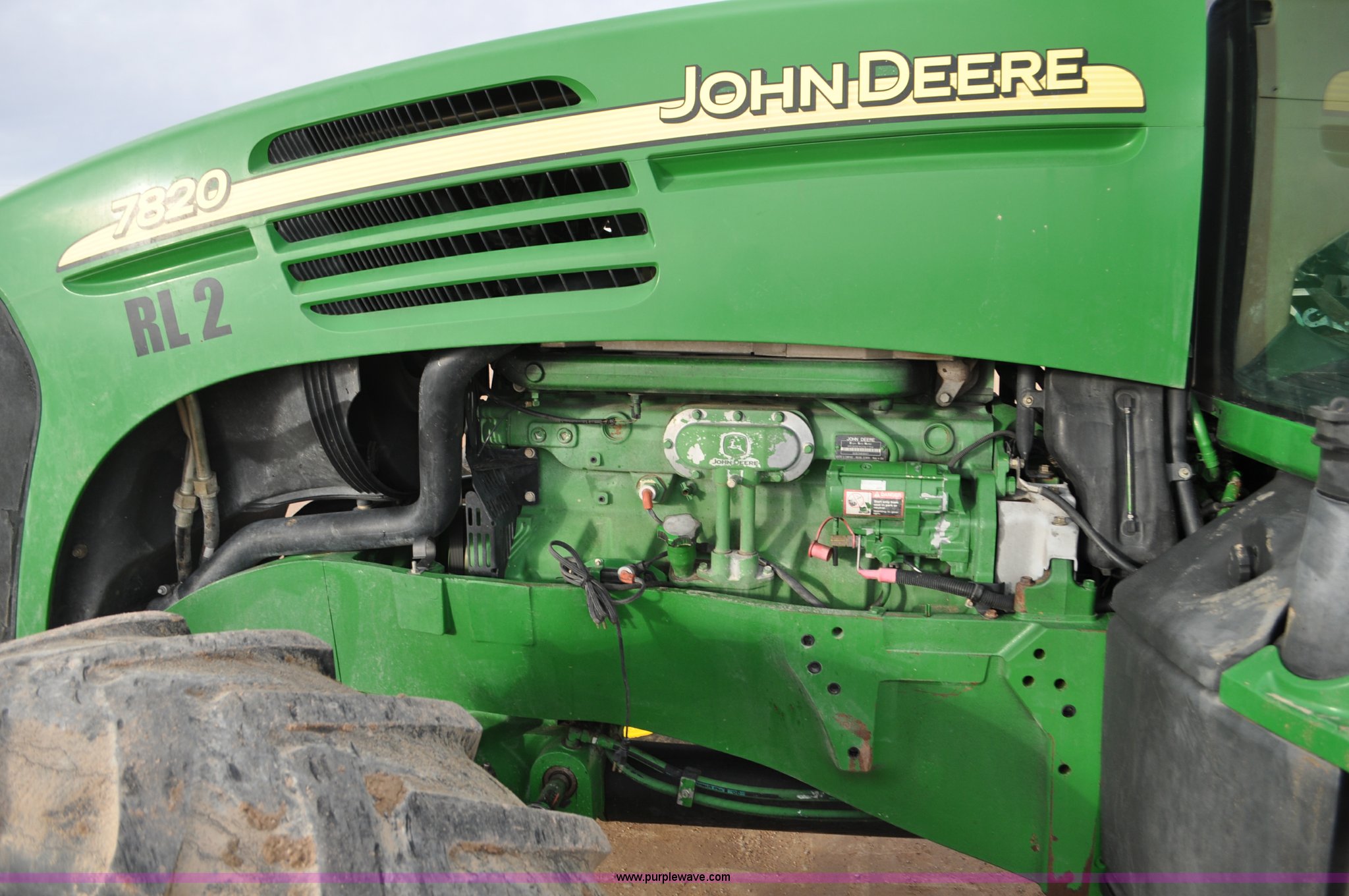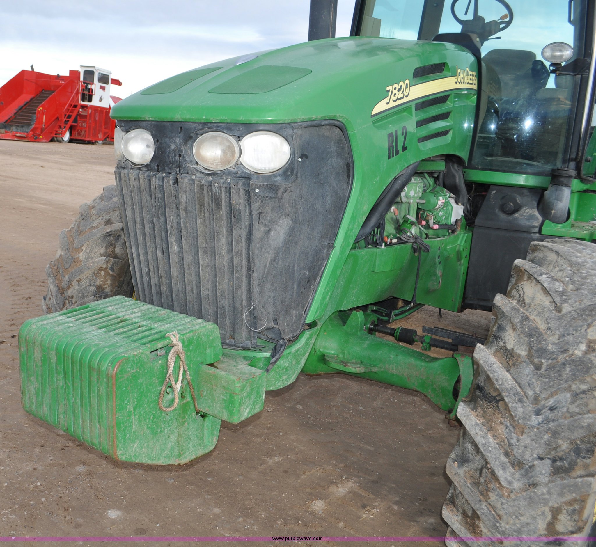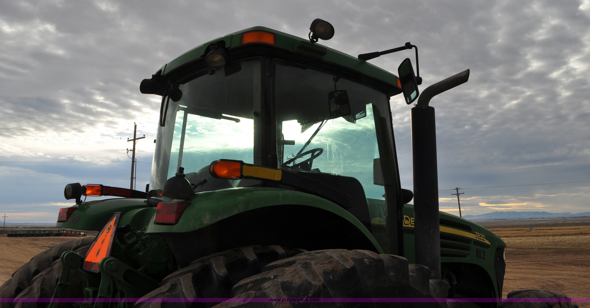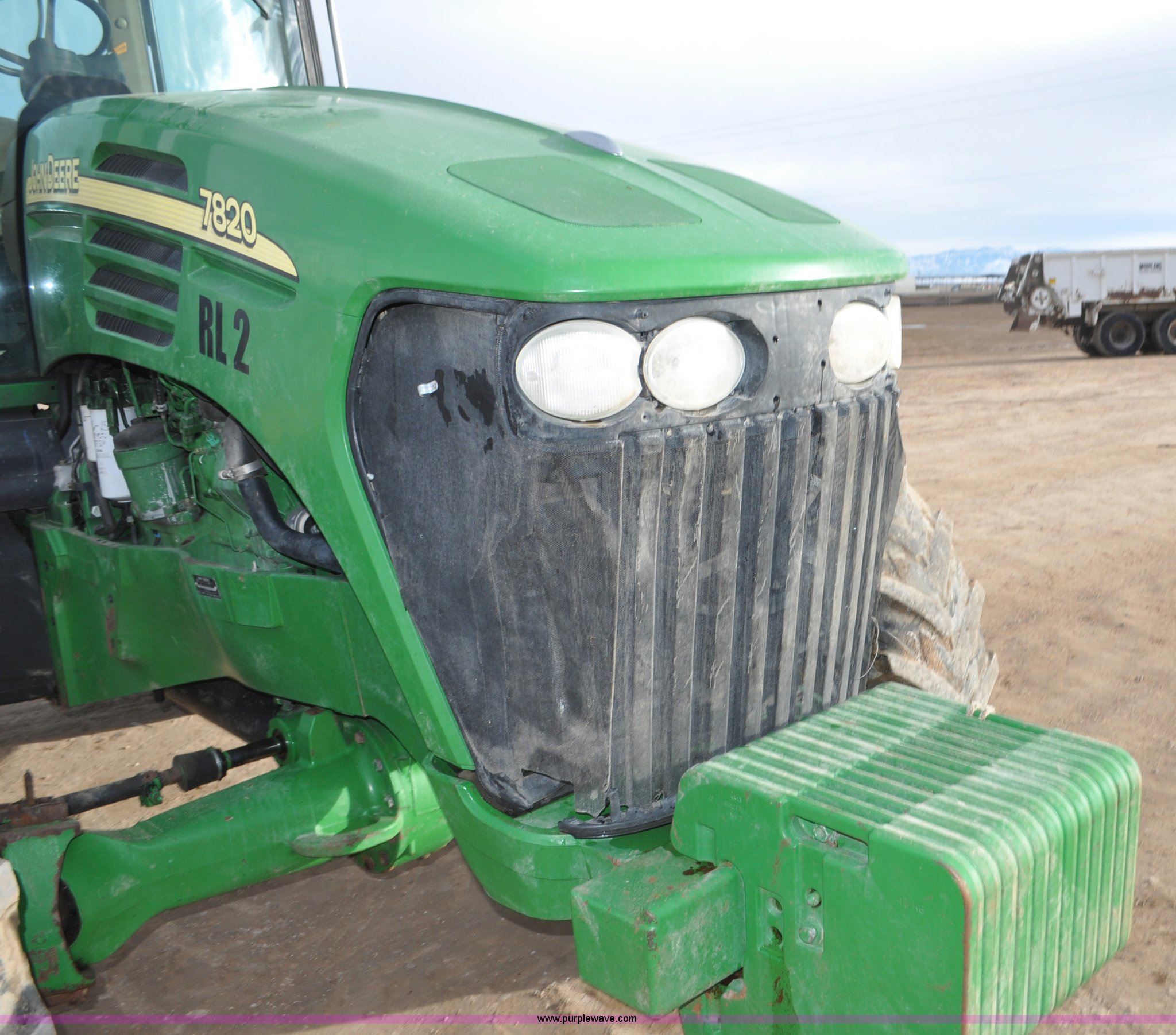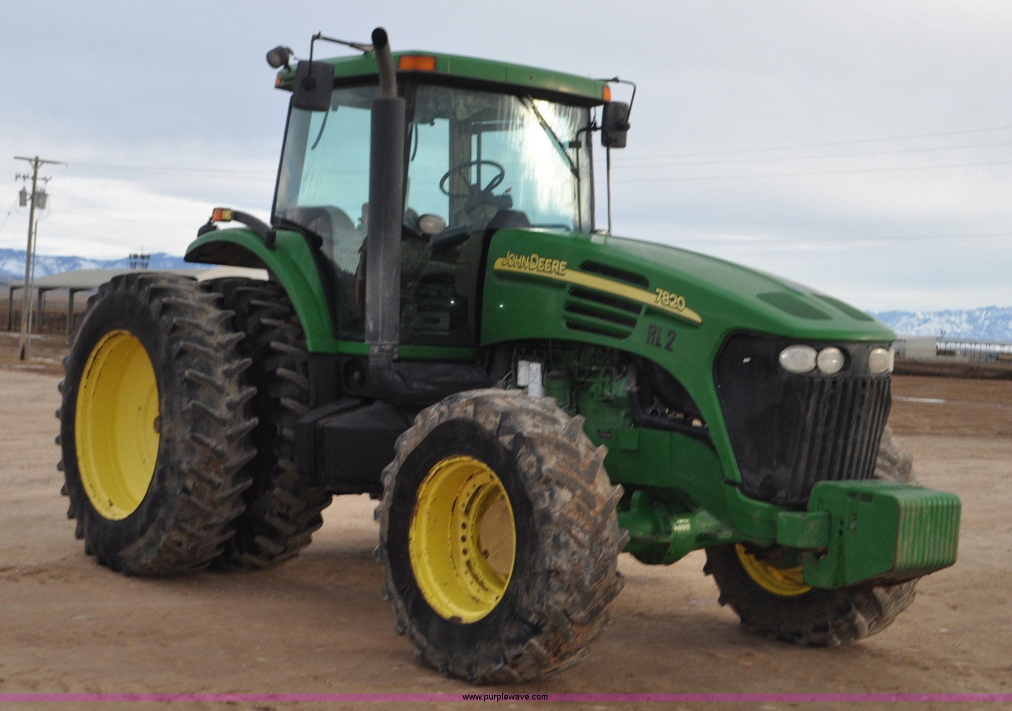 Purple Wave is selling a used Tractor in Utah. This item is a 2004 John Deere 7820 MFWD tractor with the following: 21,249 hours on meter, John Deere 6081H 6.8L six cylinder turbo diesel engine, Quad-Range Plus transmission, 20F-20R gears, Non-operational second gear, AC and heat, Air suspension seat, Tilt steering wheel, Three point, Top link, 1000 PTO, Seven pin outlet, (3) rear hydraulic remote sets, (12) suitcase weights, Wheel weights, 16.9R28 front tires, 480/80R42 dual rear tires, Interior/exterior cosmetic damage, Serial RW7820A020977