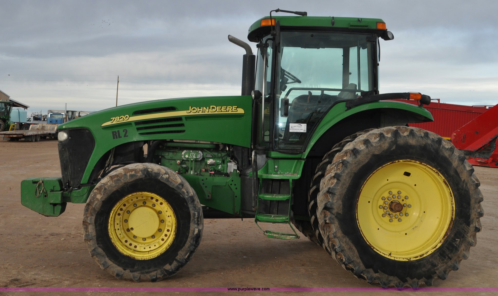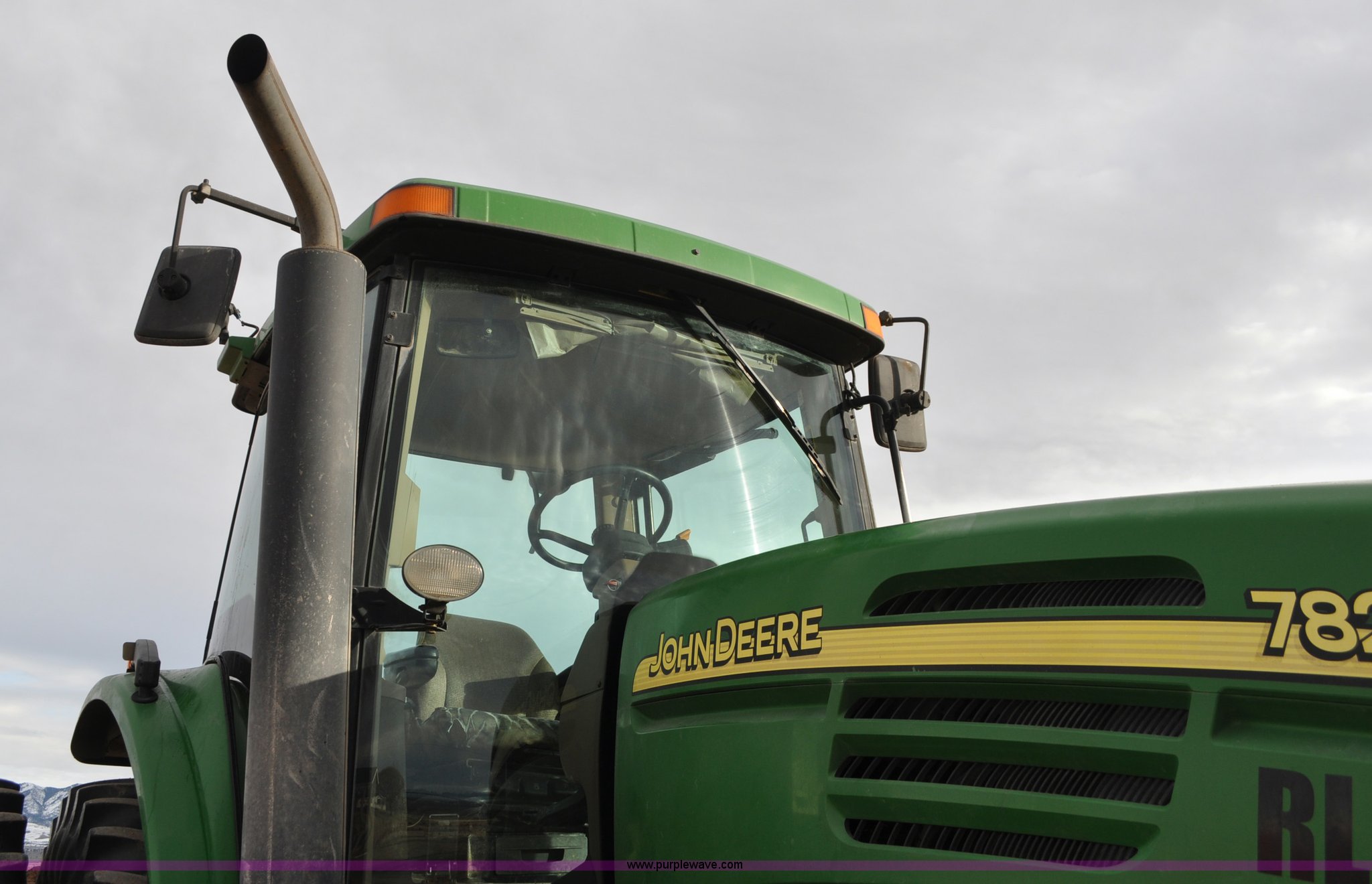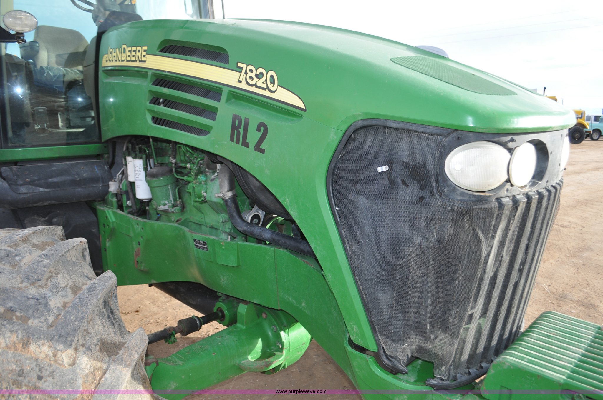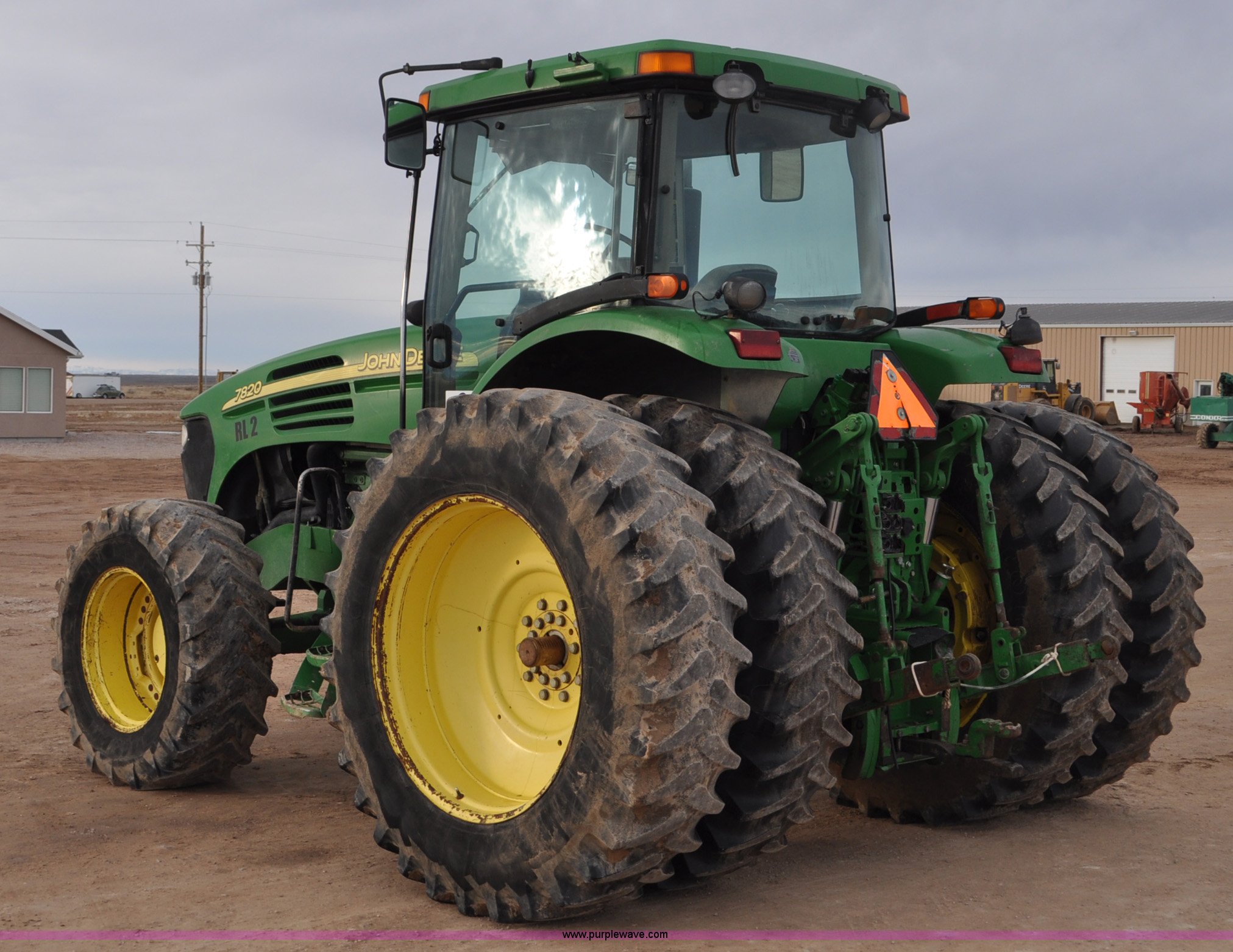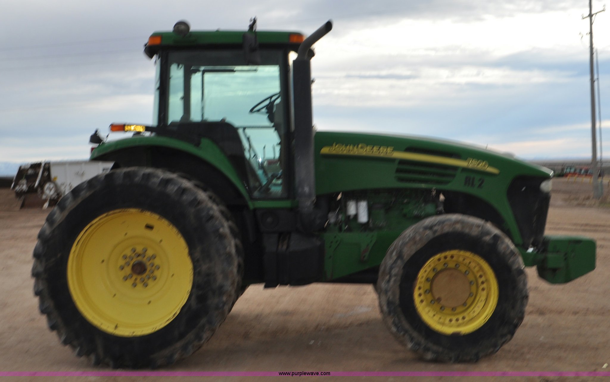 Purple Wave is selling a used Tractor in Utah. This item is a 2004 John Deere 7820 MFWD tractor with the following: 21,249 hours on meter, John Deere 6081H 6.8L six cylinder turbo diesel engine, Quad-Range Plus transmission, 20F-20R gears, Non-operational second gear, AC and heat, Air suspension seat, Tilt steering wheel, Three point, Top link, 1000 PTO, Seven pin outlet, (3) rear hydraulic remote sets, (12) suitcase weights, Wheel weights, 16.9R28 front tires, 480/80R42 dual rear tires, Interior/exterior cosmetic damage, Serial RW7820A020977