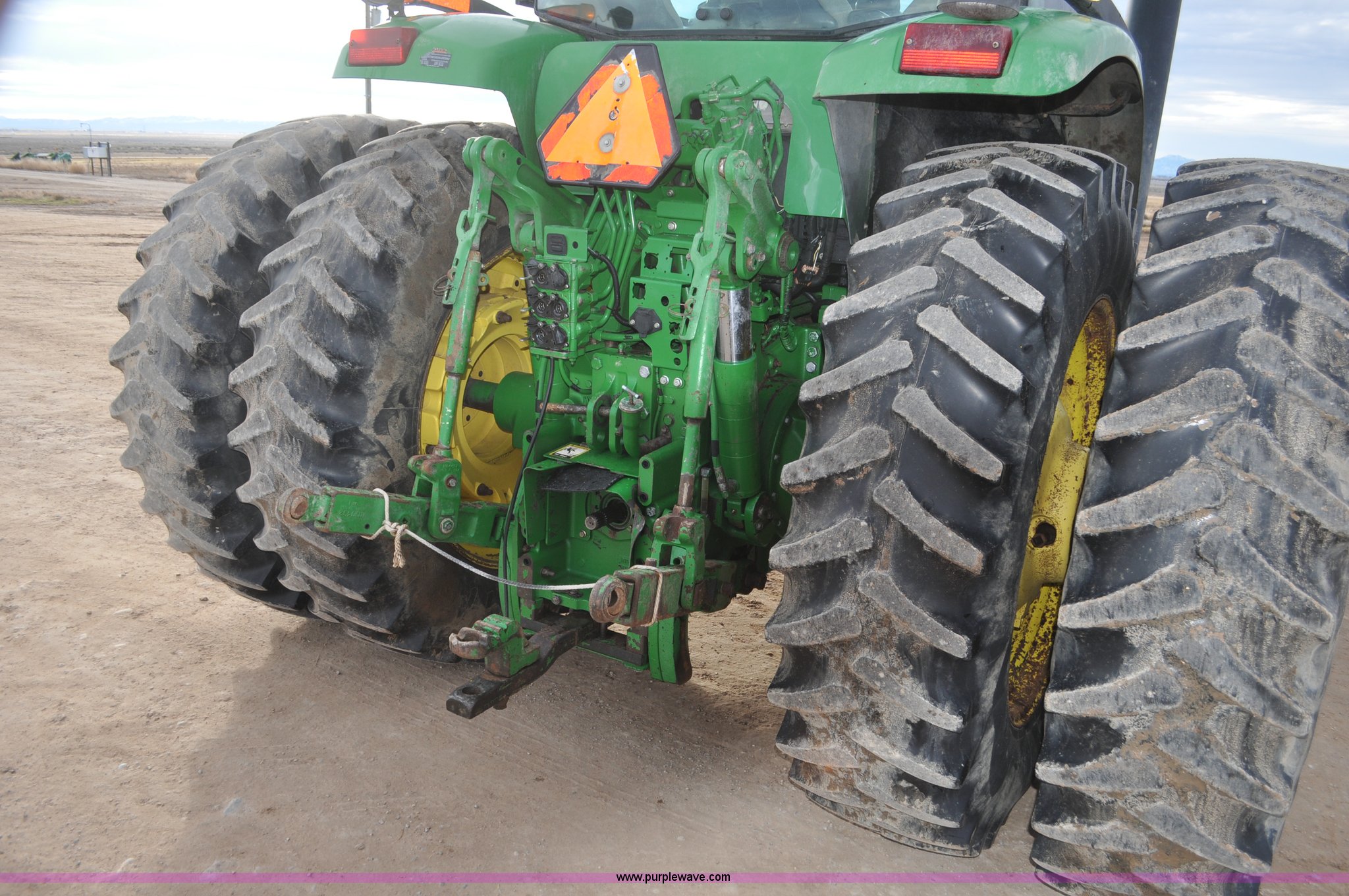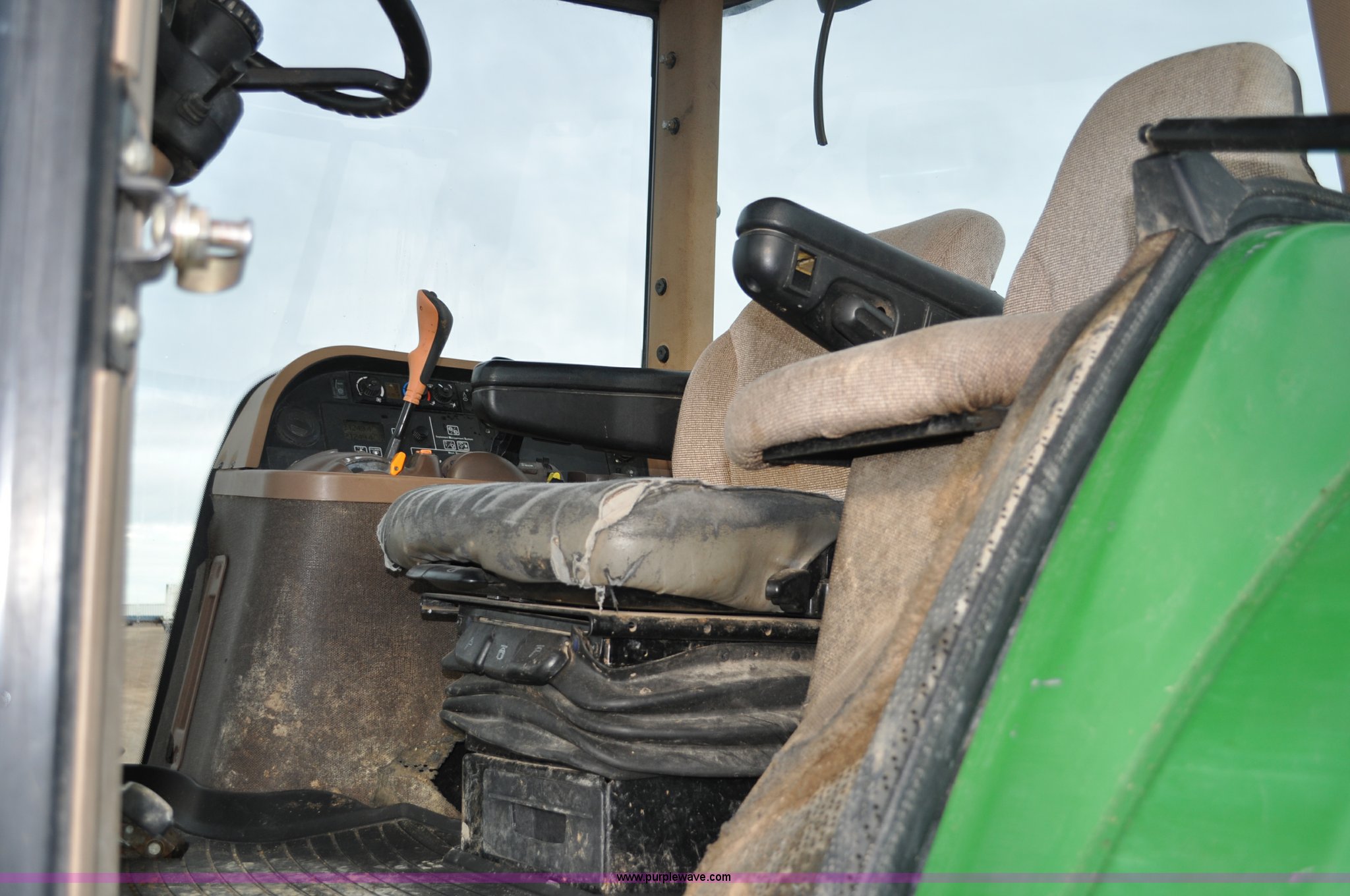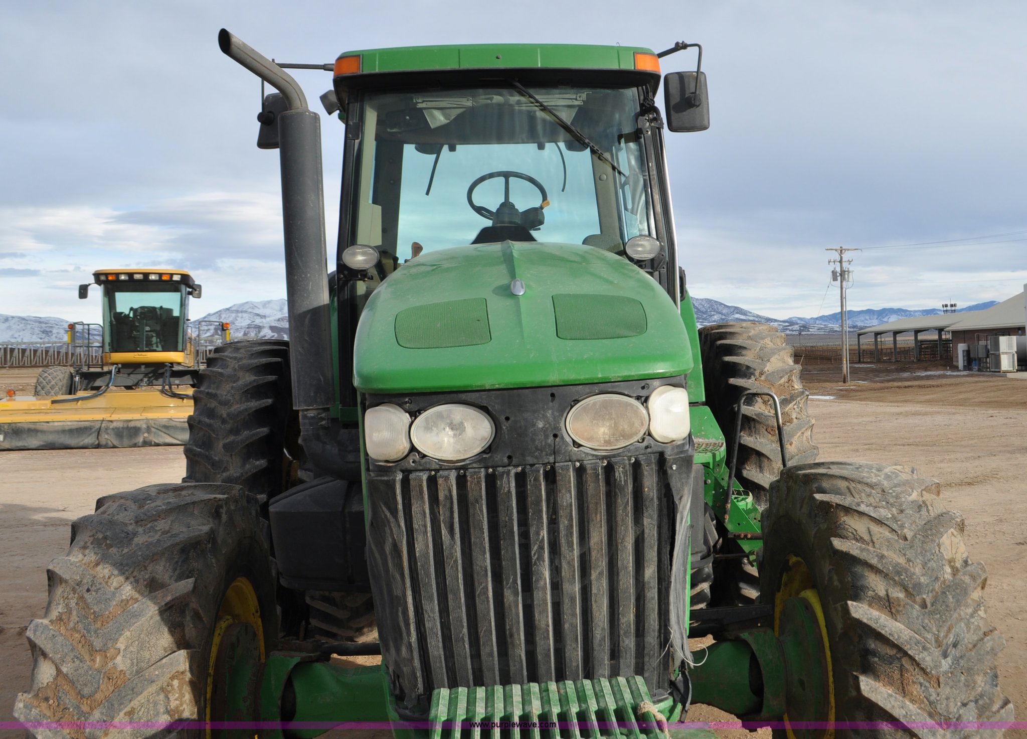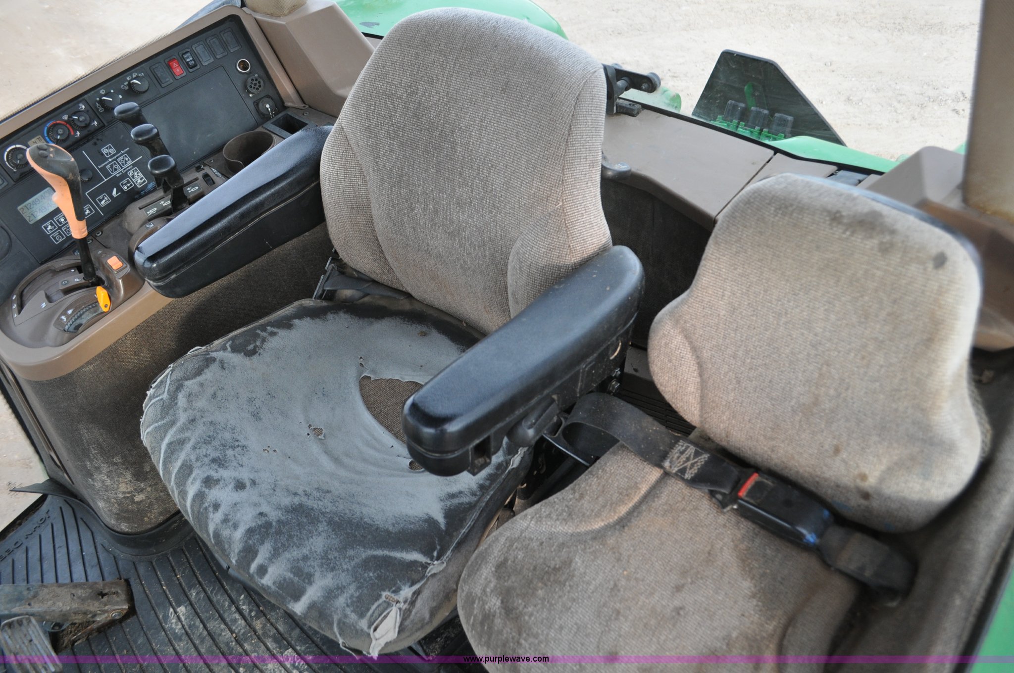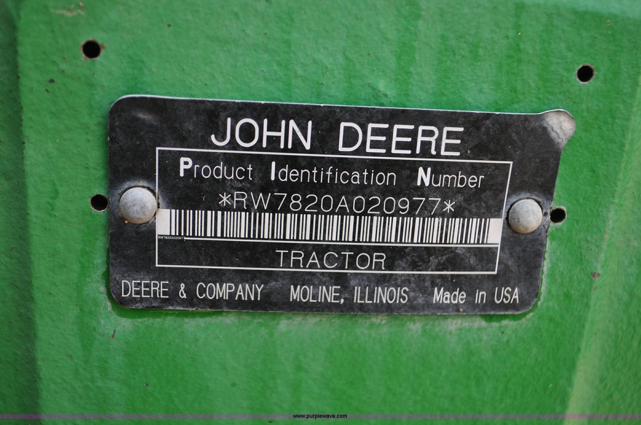 Purple Wave is selling a used Tractor in Utah. This item is a 2004 John Deere 7820 MFWD tractor with the following: 21,249 hours on meter, John Deere 6081H 6.8L six cylinder turbo diesel engine, Quad-Range Plus transmission, 20F-20R gears, Non-operational second gear, AC and heat, Air suspension seat, Tilt steering wheel, Three point, Top link, 1000 PTO, Seven pin outlet, (3) rear hydraulic remote sets, (12) suitcase weights, Wheel weights, 16.9R28 front tires, 480/80R42 dual rear tires, Interior/exterior cosmetic damage, Serial RW7820A020977