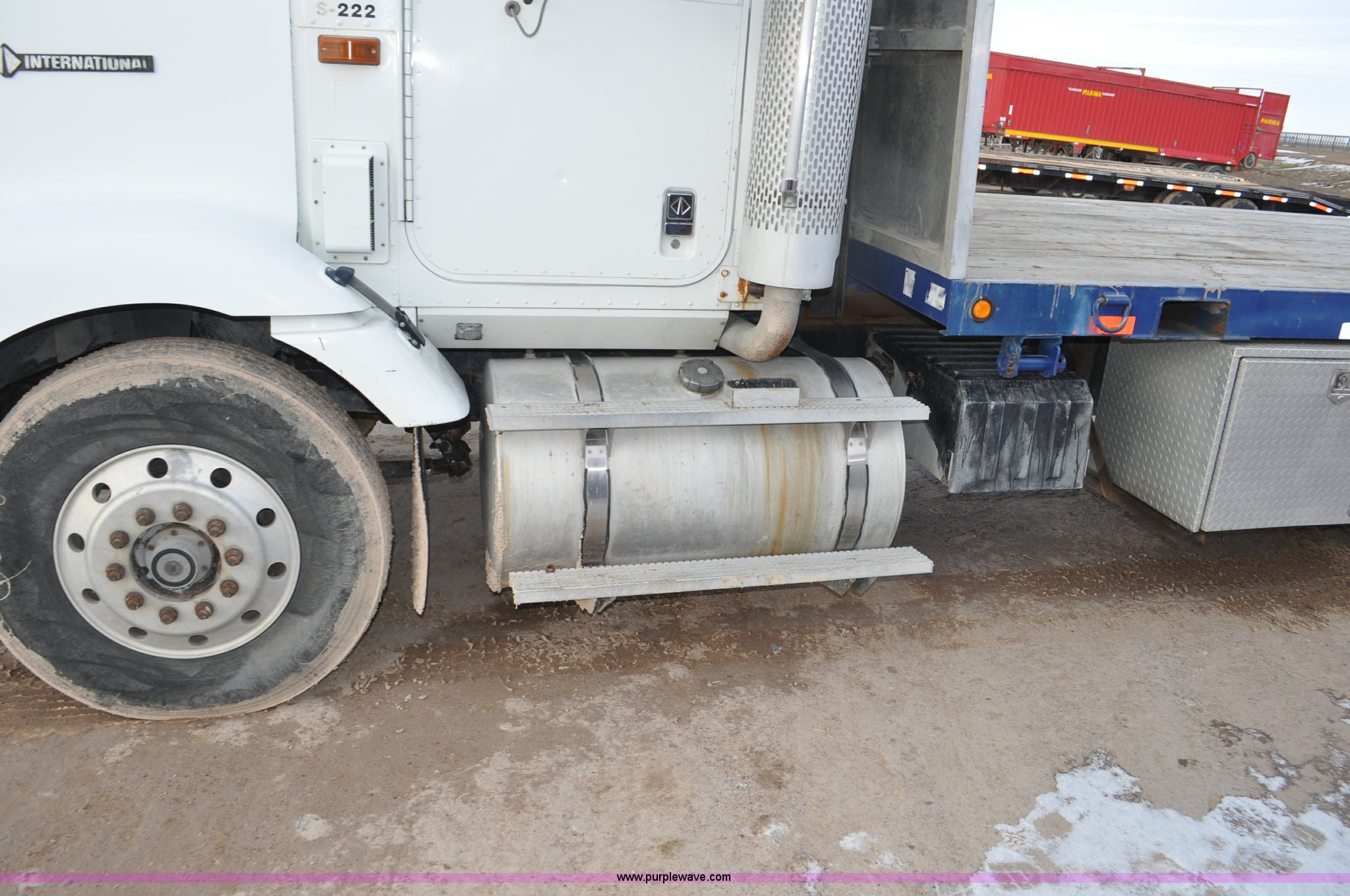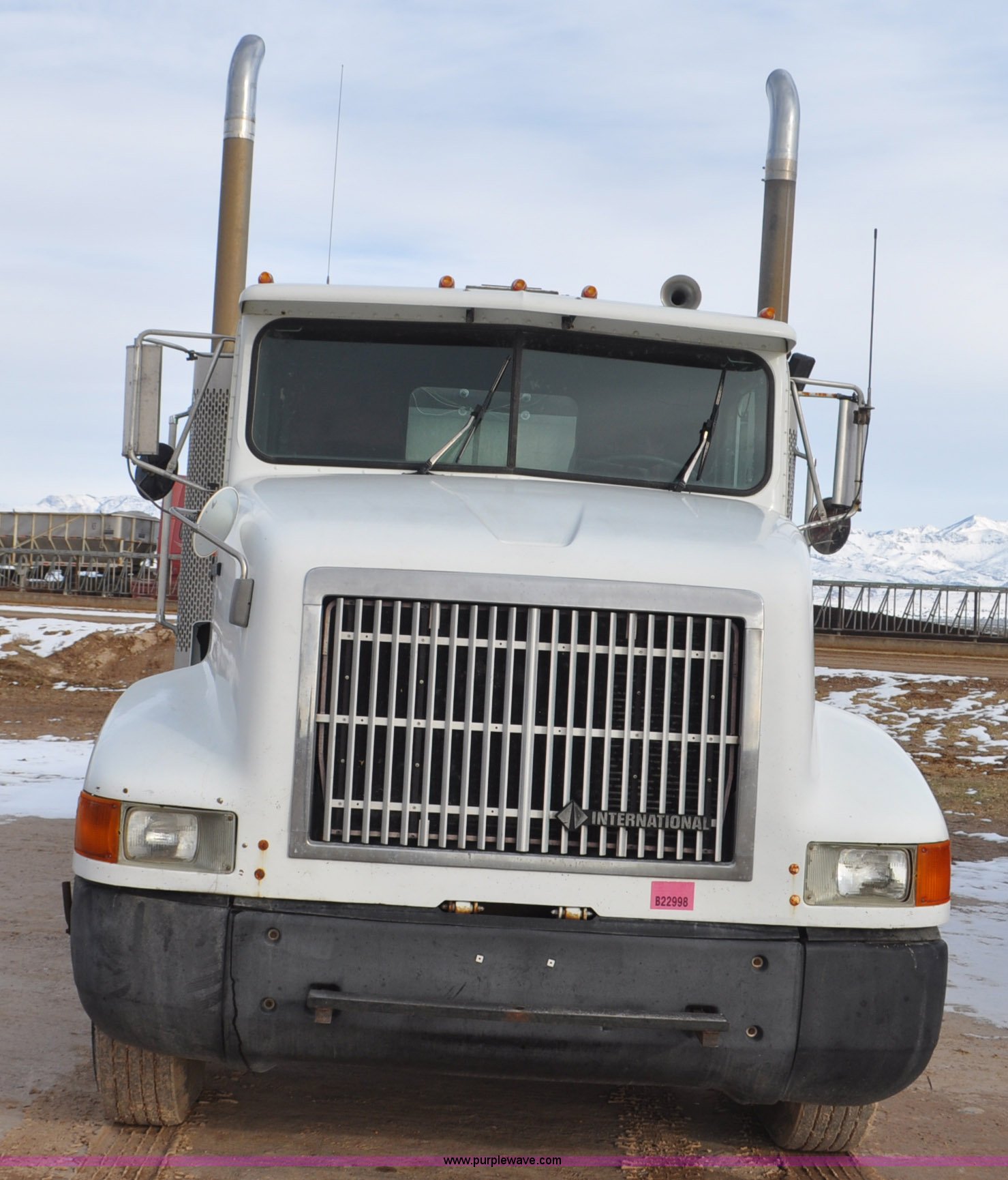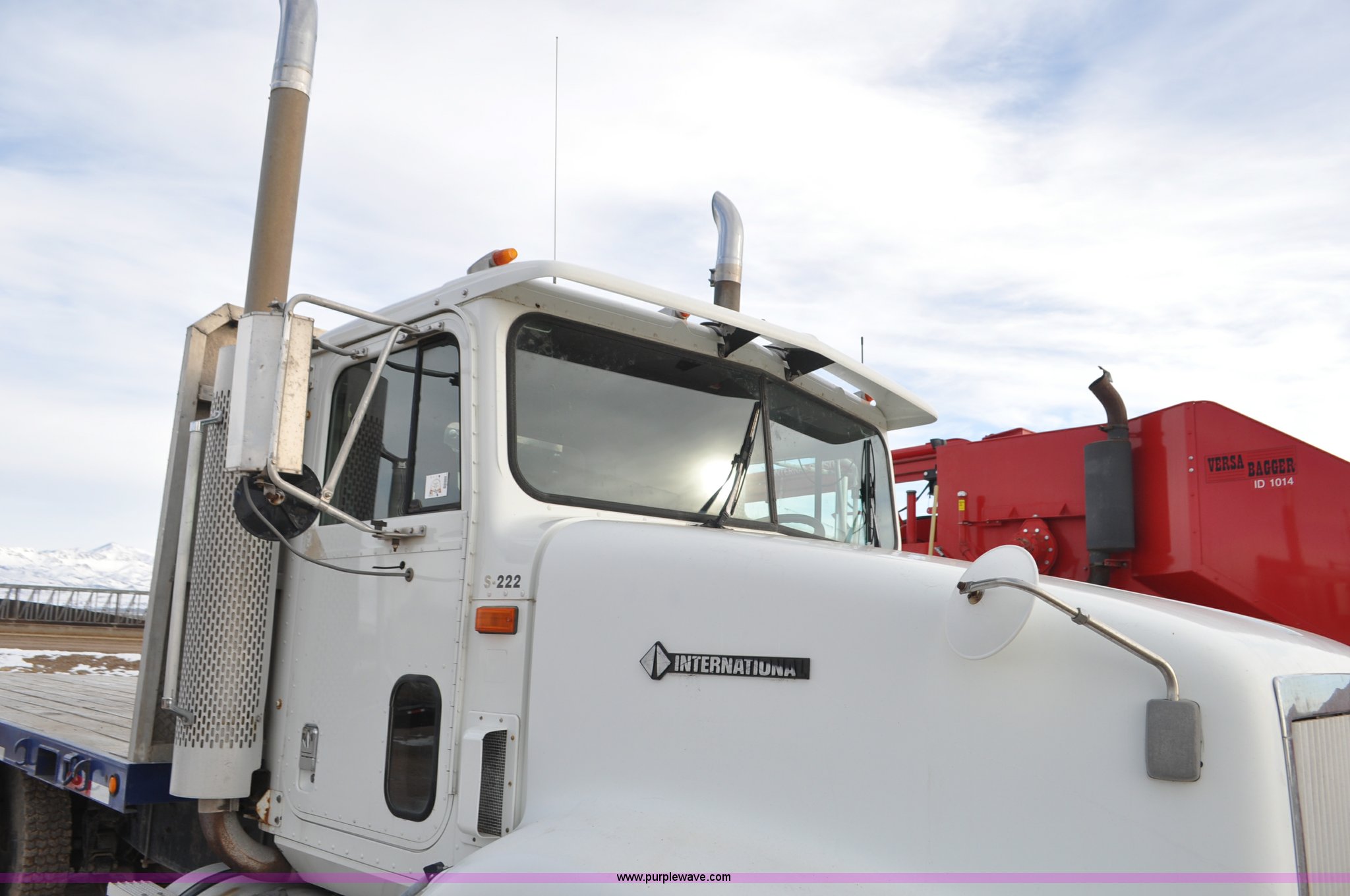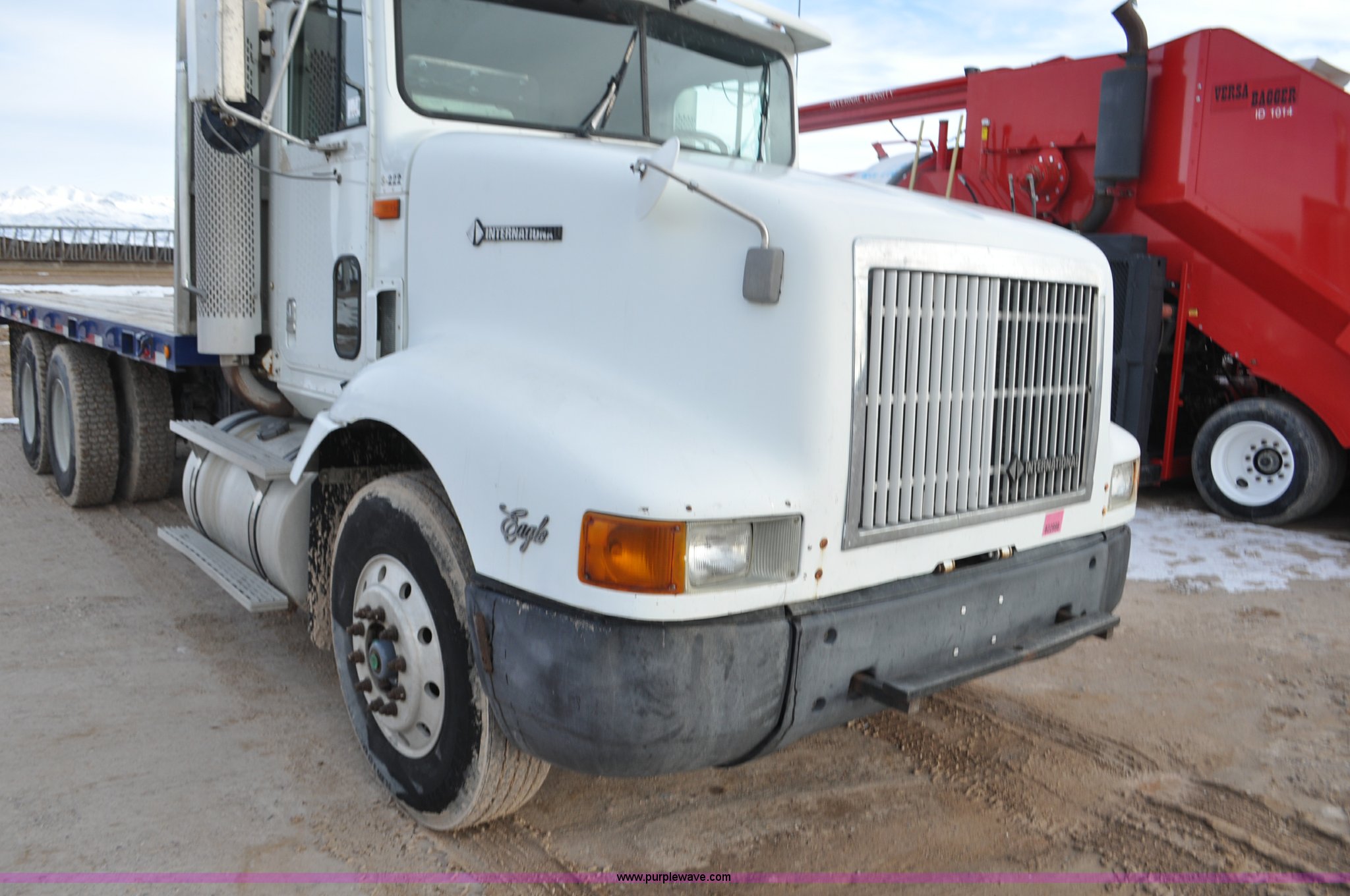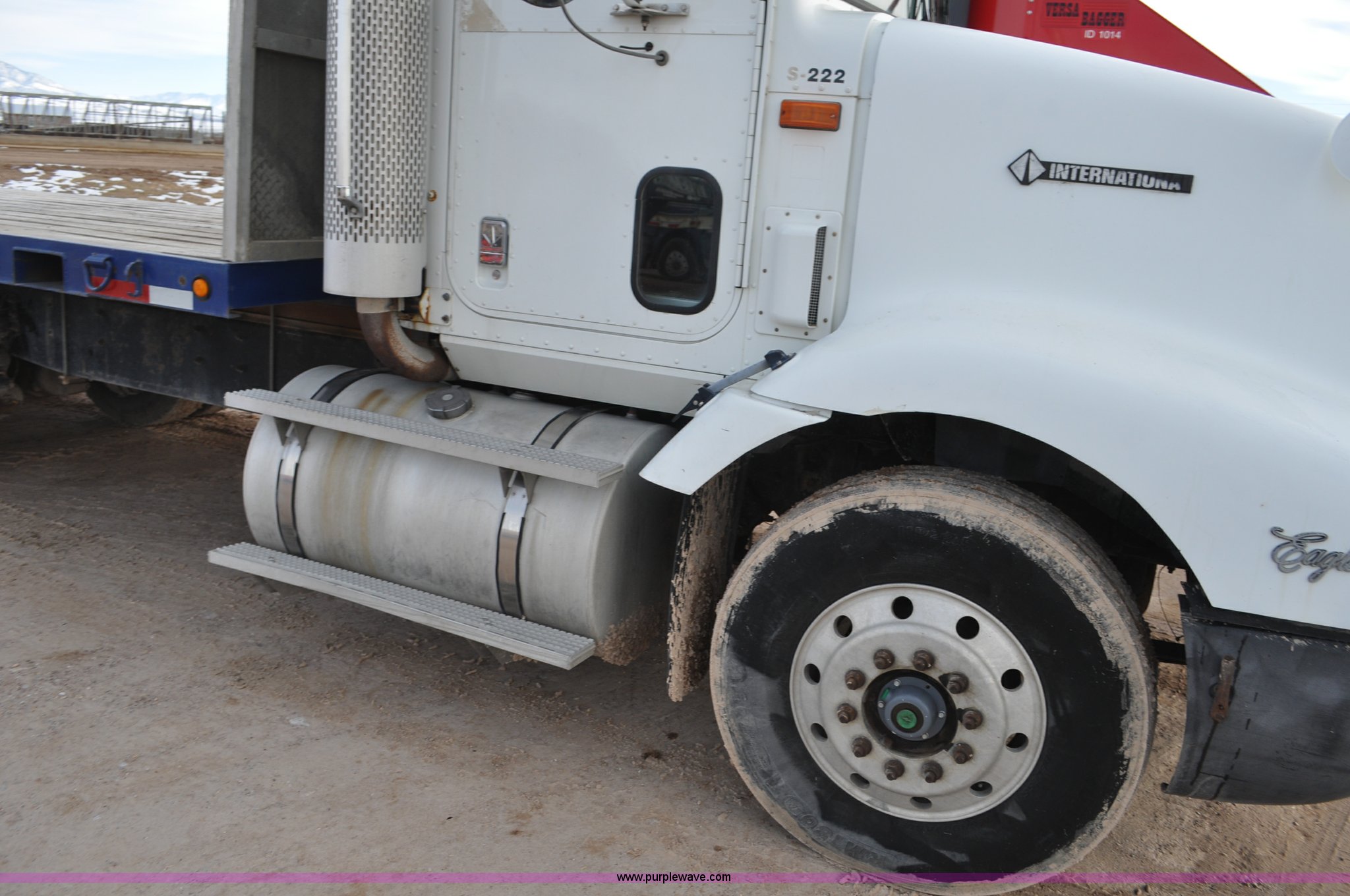 Purple Wave is selling a used Flat Bed Truck in Utah. This item is a 1994 International 9200 flatbed truck with the following: 691,196 miles on odometer, Cummins L10 six cylinder turbo diesel engine, Spicer 10 speed manual transmission, Tandem axle, Inter-axle differential lock, Heat, AM/FM, Tilt, Air suspension seat, Dump valves, Exterior visor, Dual rear exhaust stacks, Aluminum headache rack, 22' x 8' flatbed, D-ring and strap tie downs, Under bed aluminum toolbox, Pintle hitch, Trailer hookups, Air suspension, Air brakes, 215" wheelbase, 11R22.5 tires, GVWR 52,000 lbs, FAWR 12,000 lbs, IAWR 20,000 lbs, RAWR 20,000 lbs, Interior/exterior cosmetic damage