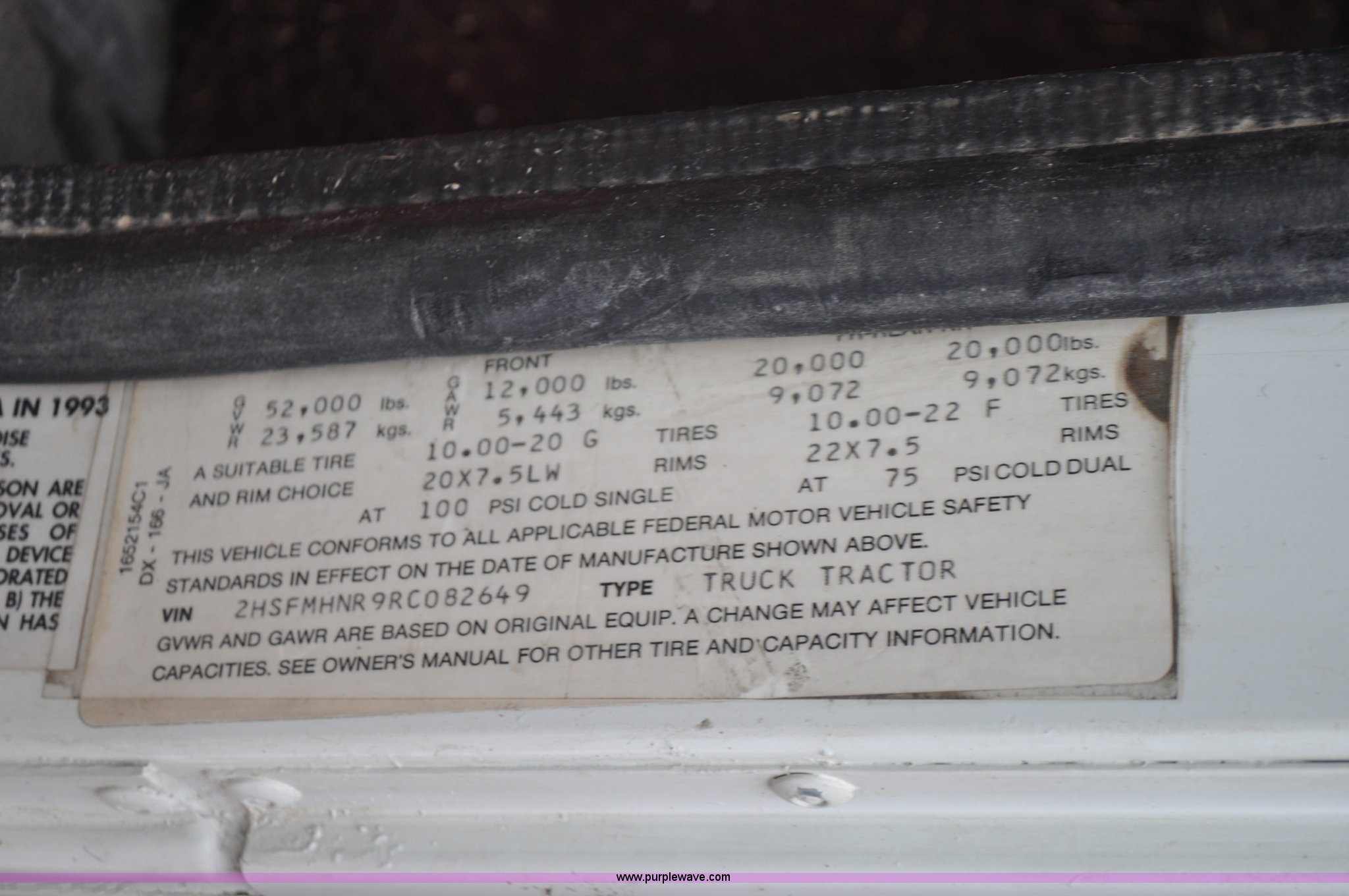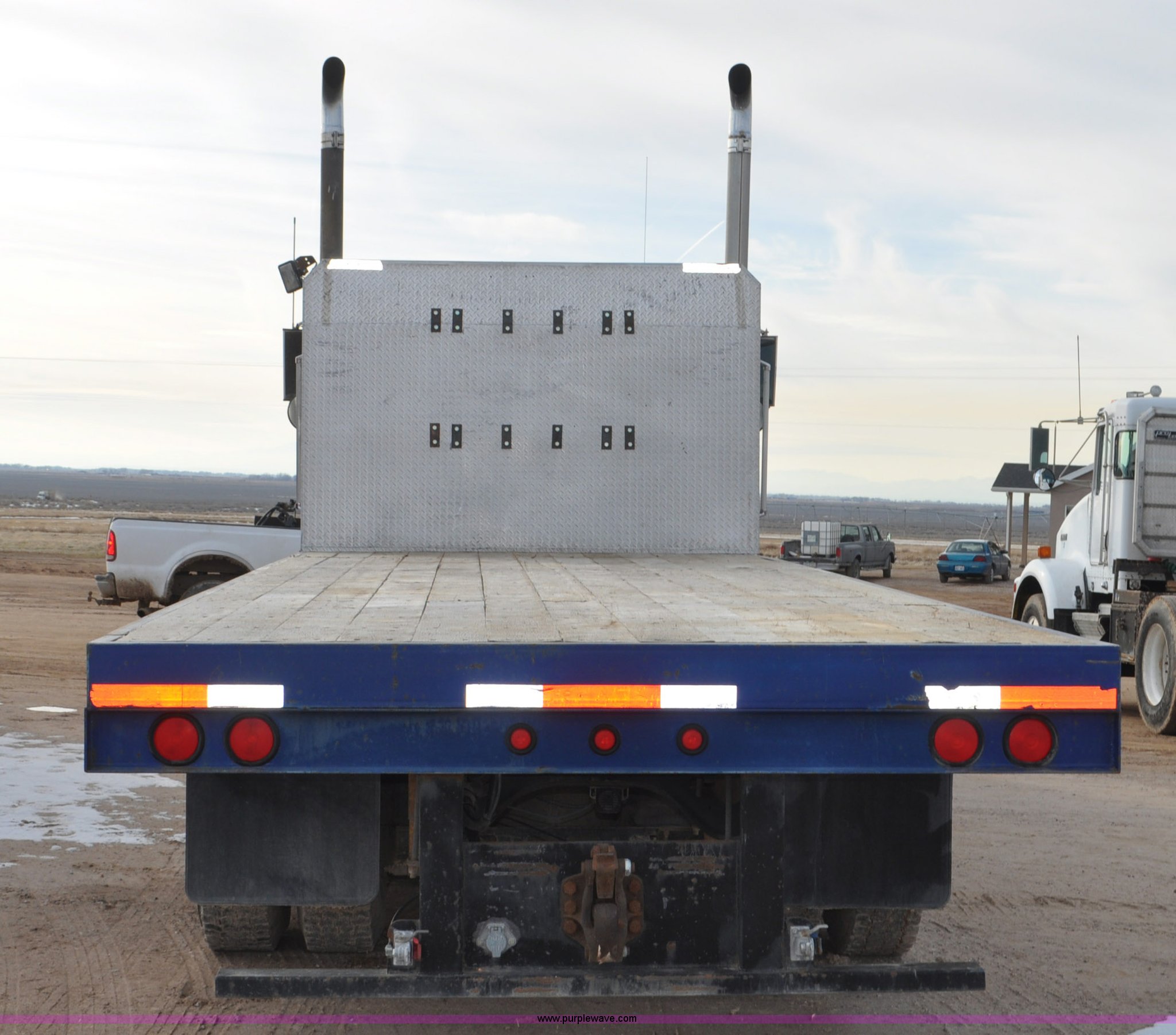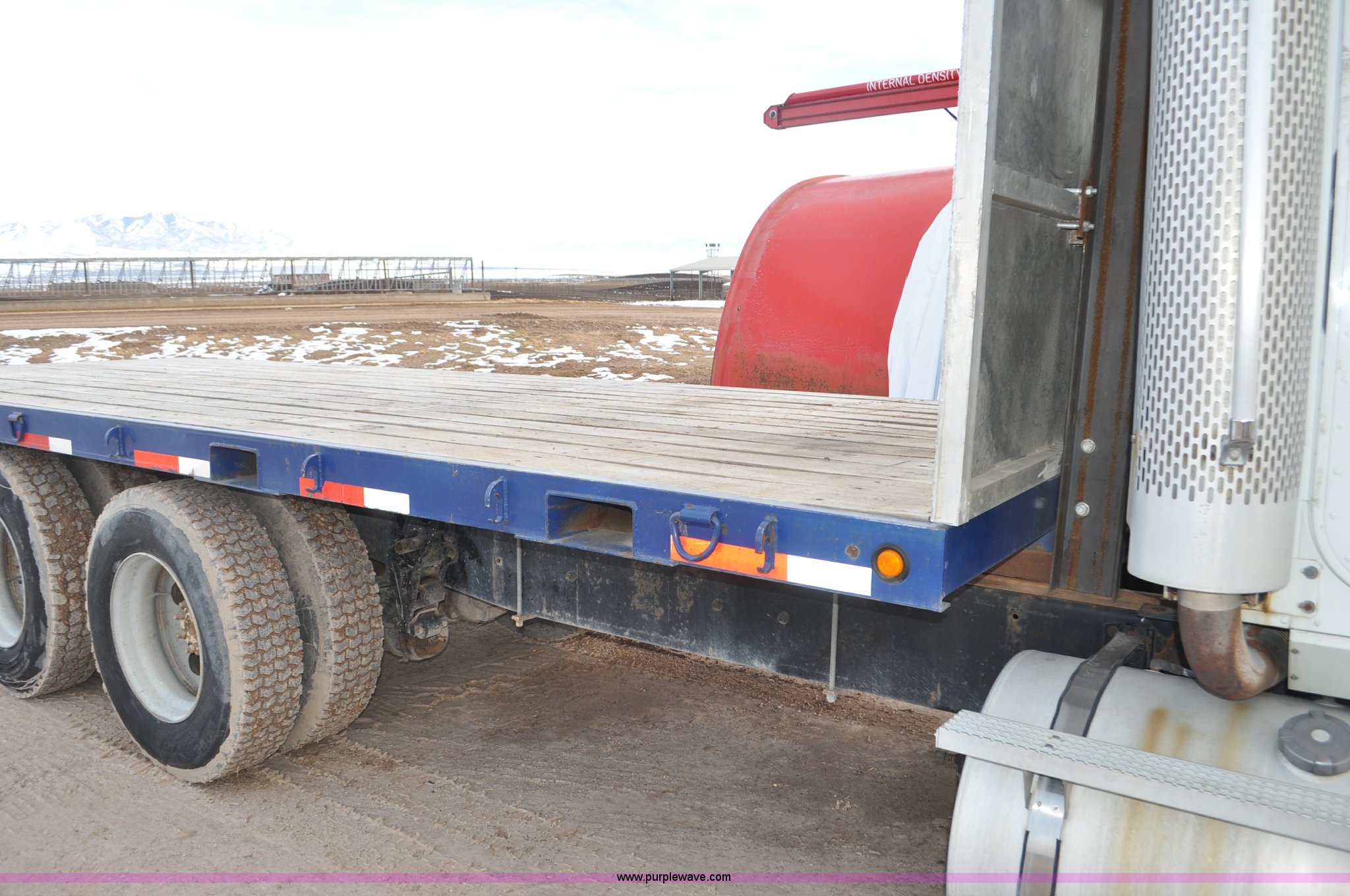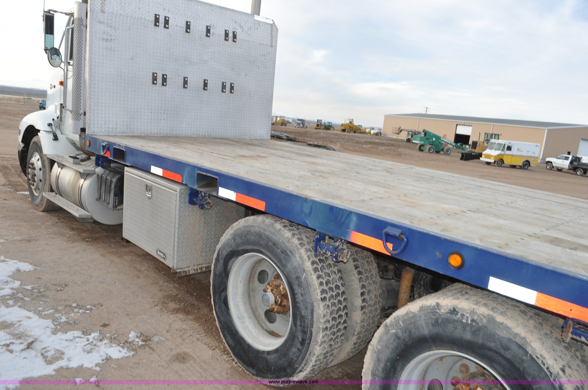Purple Wave is selling a used Flat Bed Truck in Utah. This item is a 1994 International 9200 flatbed truck with the following: 691,196 miles on odometer, Cummins L10 six cylinder turbo diesel engine, Spicer 10 speed manual transmission, Tandem axle, Inter-axle differential lock, Heat, AM/FM, Tilt, Air suspension seat, Dump valves, Exterior visor, Dual rear exhaust stacks, Aluminum headache rack, 22' x 8' flatbed, D-ring and strap tie downs, Under bed aluminum toolbox, Pintle hitch, Trailer hookups, Air suspension, Air brakes, 215" wheelbase, 11R22.5 tires, GVWR 52,000 lbs, FAWR 12,000 lbs, IAWR 20,000 lbs, RAWR 20,000 lbs, Interior/exterior cosmetic damage