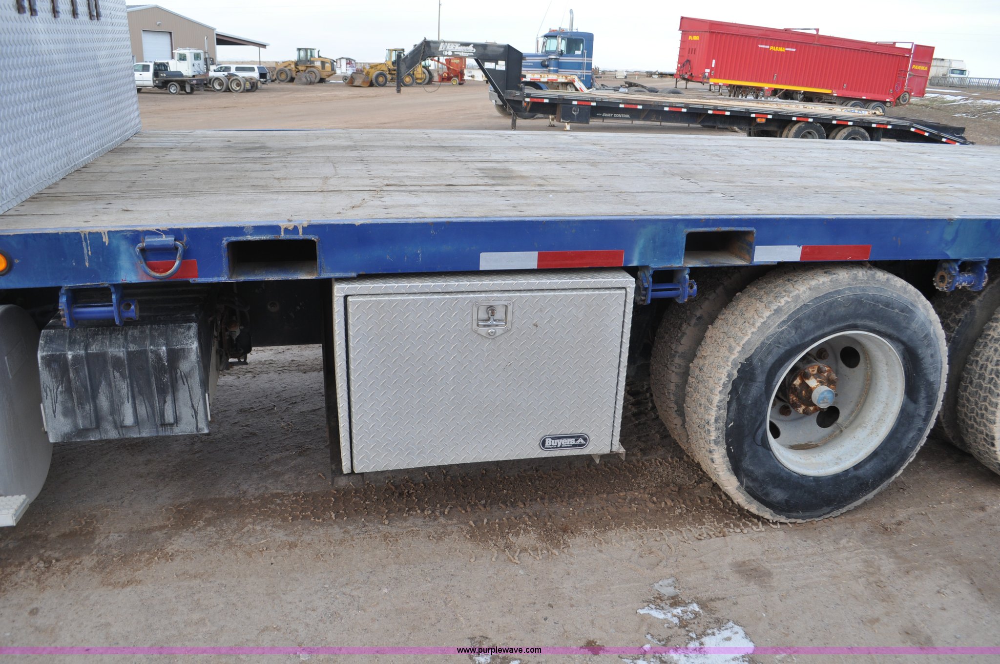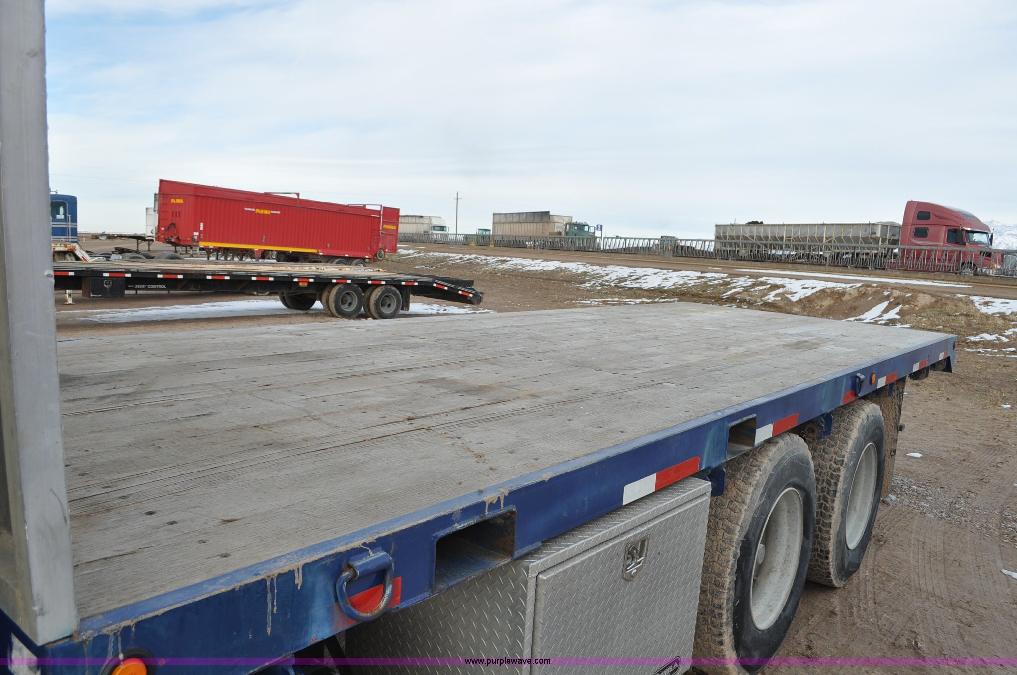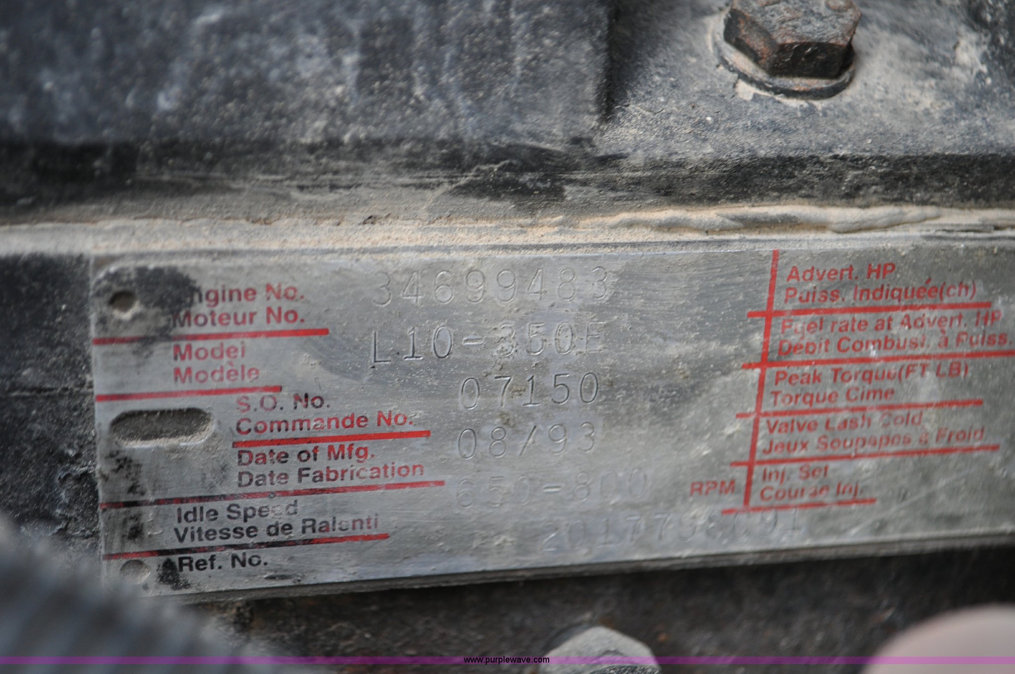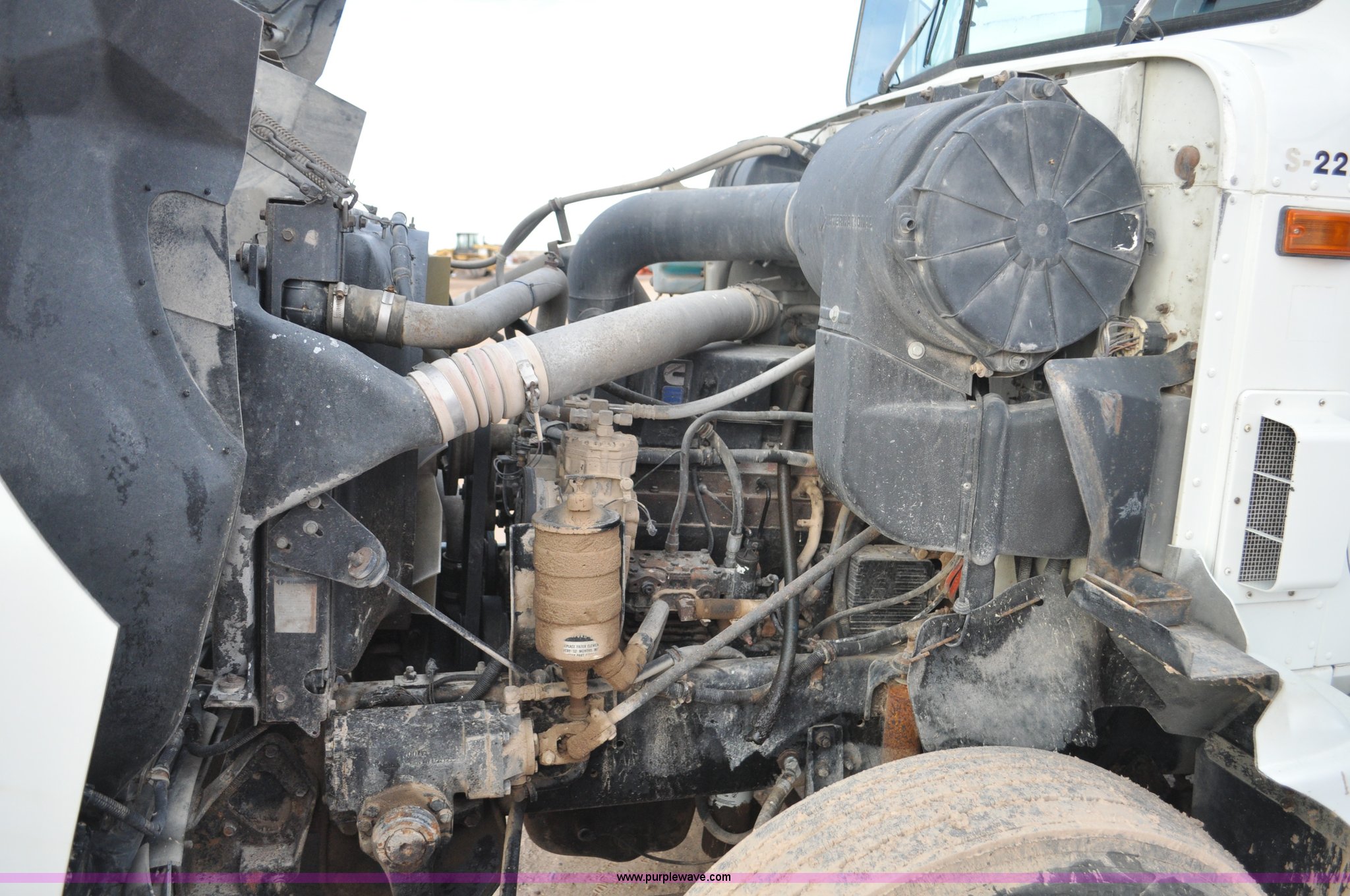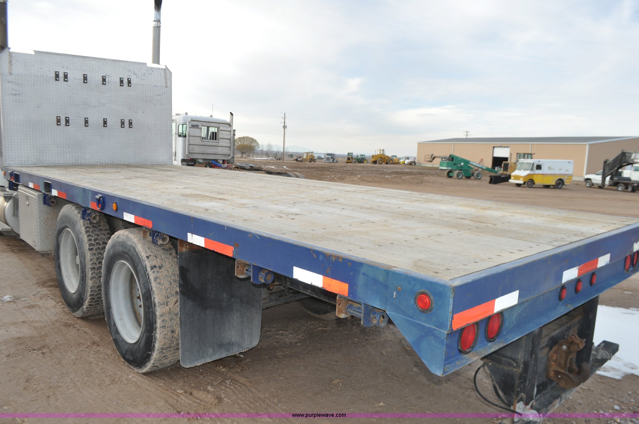 Purple Wave is selling a used Flat Bed Truck in Utah. This item is a 1994 International 9200 flatbed truck with the following: 691,196 miles on odometer, Cummins L10 six cylinder turbo diesel engine, Spicer 10 speed manual transmission, Tandem axle, Inter-axle differential lock, Heat, AM/FM, Tilt, Air suspension seat, Dump valves, Exterior visor, Dual rear exhaust stacks, Aluminum headache rack, 22' x 8' flatbed, D-ring and strap tie downs, Under bed aluminum toolbox, Pintle hitch, Trailer hookups, Air suspension, Air brakes, 215" wheelbase, 11R22.5 tires, GVWR 52,000 lbs, FAWR 12,000 lbs, IAWR 20,000 lbs, RAWR 20,000 lbs, Interior/exterior cosmetic damage