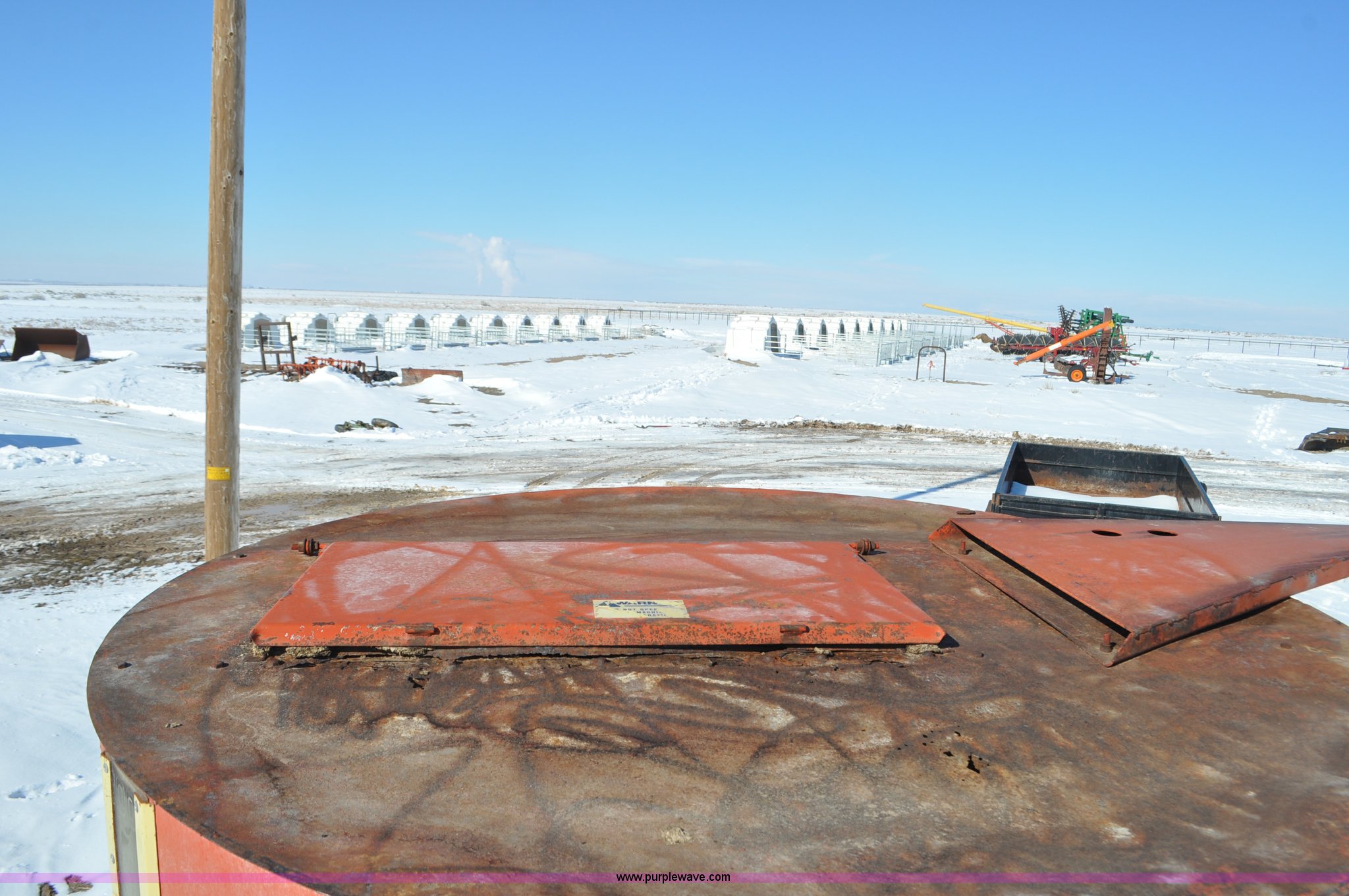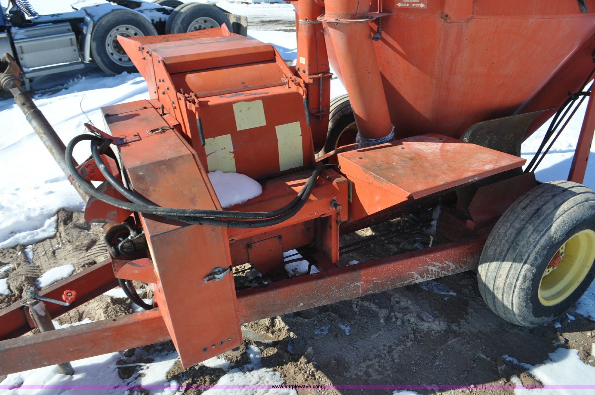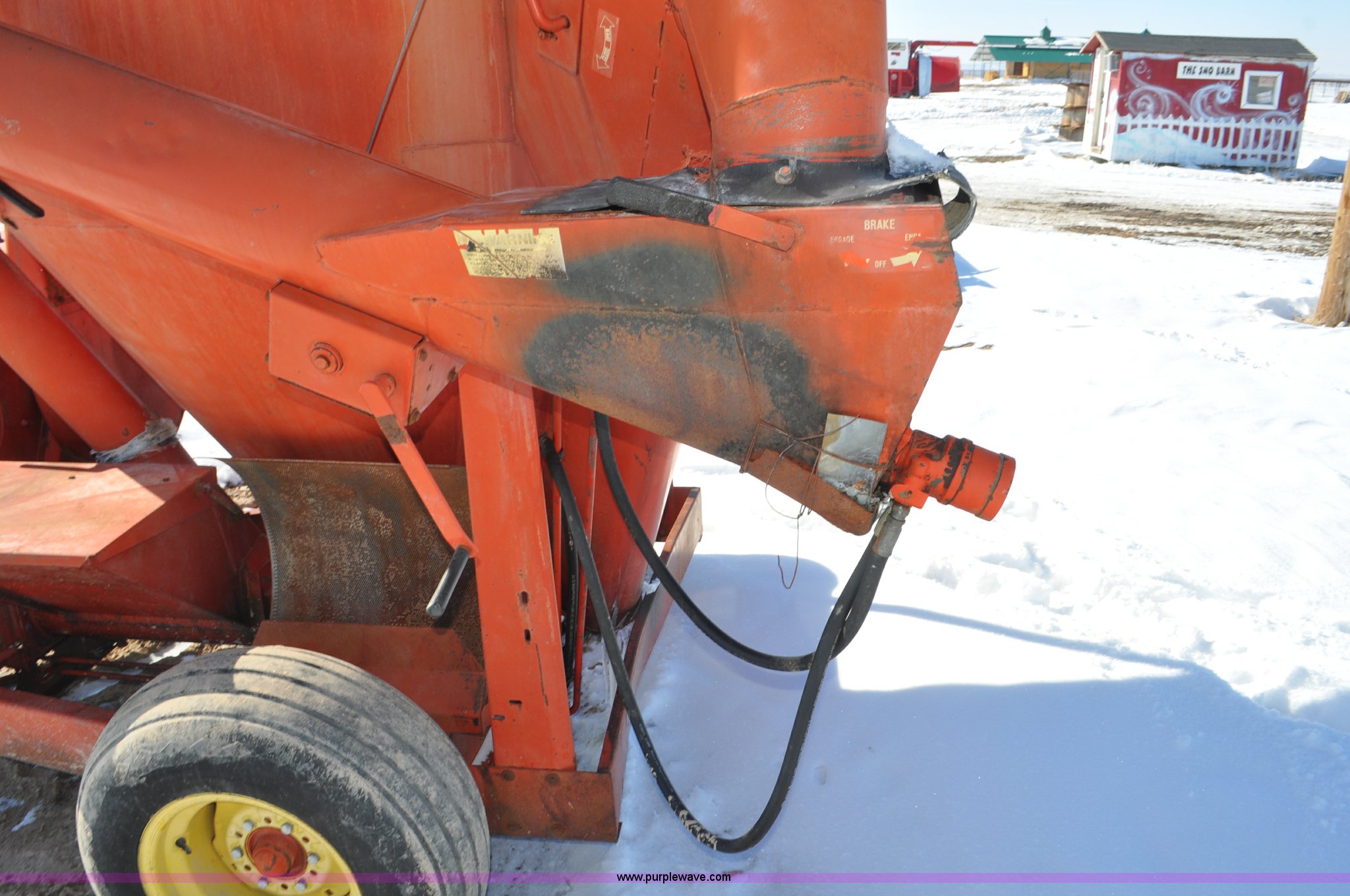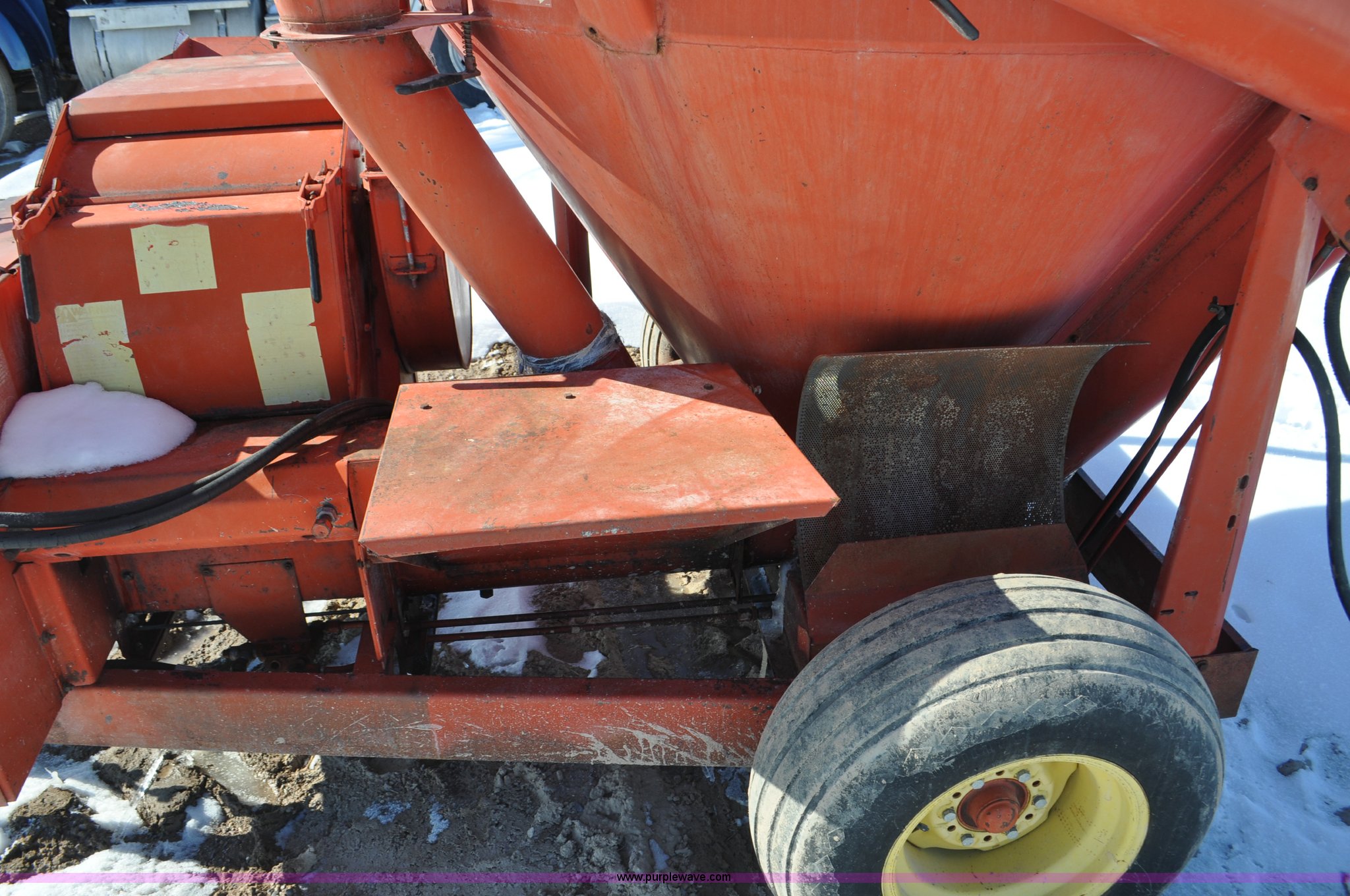 Purple Wave is selling a used Feed Mixer or Bale Processor in Utah. This item is a Gehl 100 grinder mixer with the following: 540 PTO, 20" mill, Pin hitch, 11L-15 tires, Additional screens, Rust, Damage