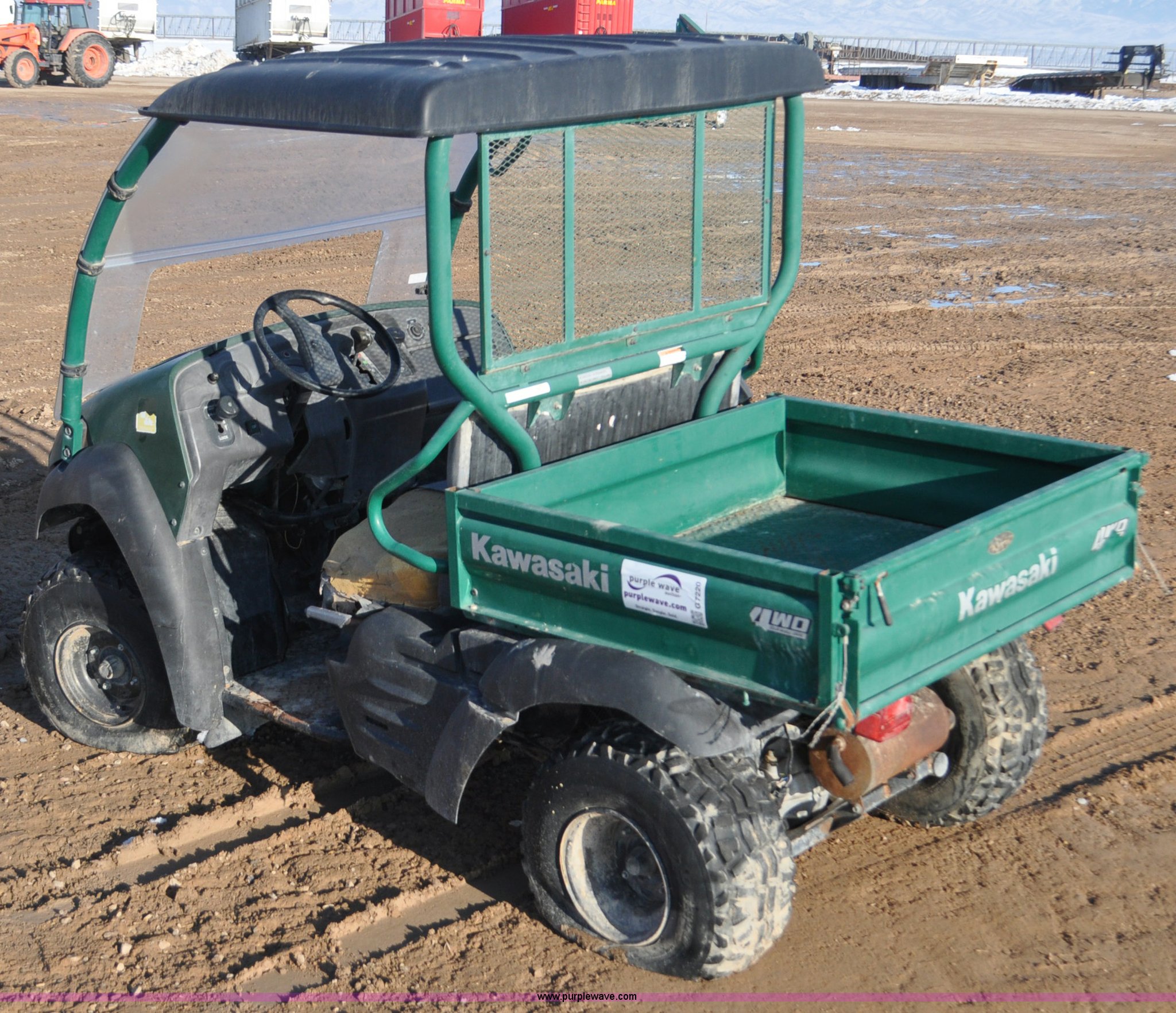 Purple Wave is selling a used Utility Vehicle in Utah. This item is a 2007 Kawasaki Mule 610 utility vehicle with the following: Unknown hours on meter, Model KAF400A, Four wheel drive, Manual dump bed, Front lights, 24x9.00-10 front tires, 22x11.00-10 rear tires, Non-operational unit
