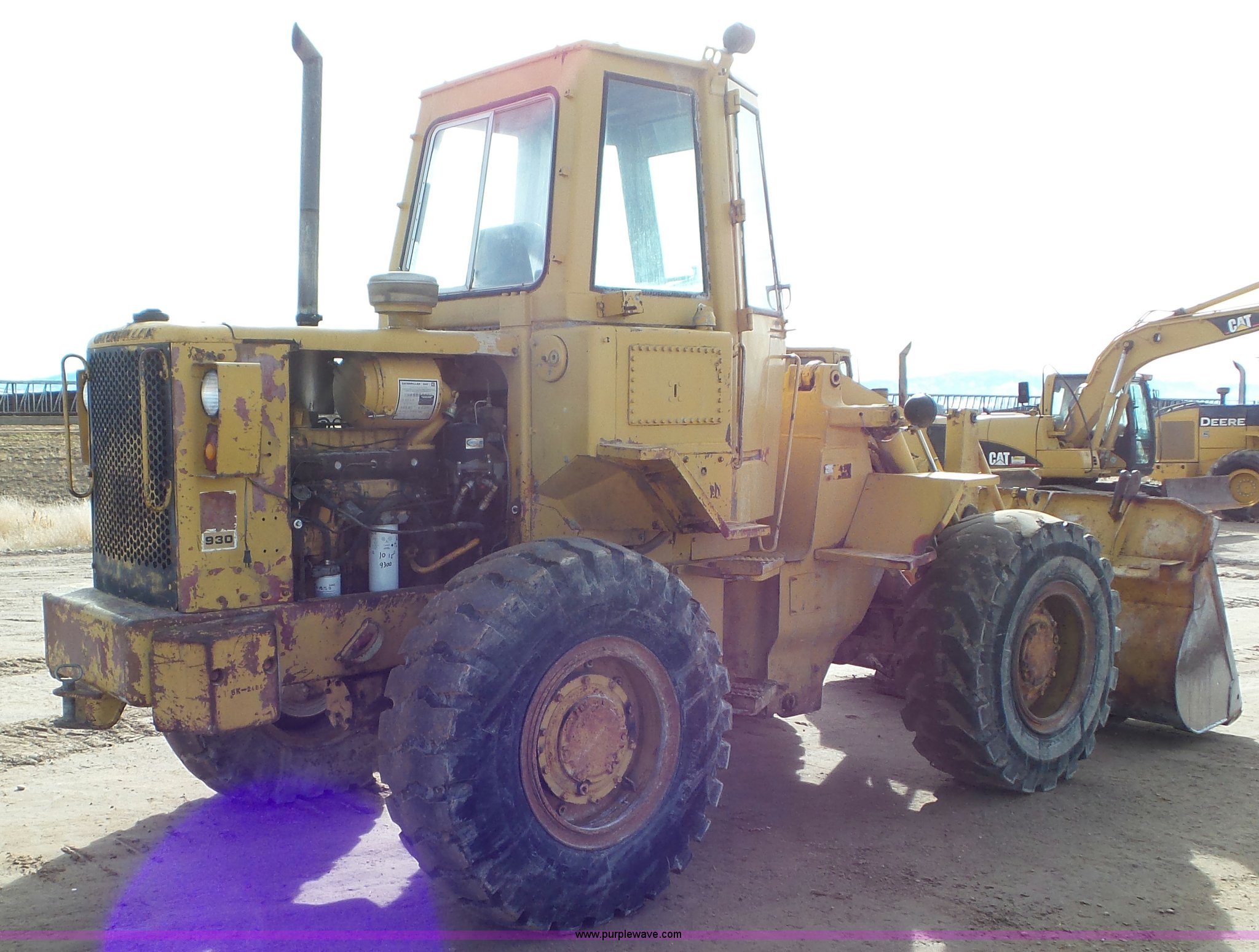 Purple Wave is selling a used Wheel Loader in Utah. This item is a 1976 Caterpillar 930 wheel loader with the following: 9,609 hours on meter, Caterpillar 3304 four cylinder diesel engine, Powershift transmission, 4F-4R gears, EROPS, Suspension seat, Two-lever bucket controls, Wipers, Front and rear work lights, Block heater, 94"W general purpose bucket, Bolt-on cutting edge, Counterweights, 17.5-25 tires, 19,768 lbs. base operating weight, Interior/exterior cosmetic damage, Engine issue, runs weak, Serial 79J4960