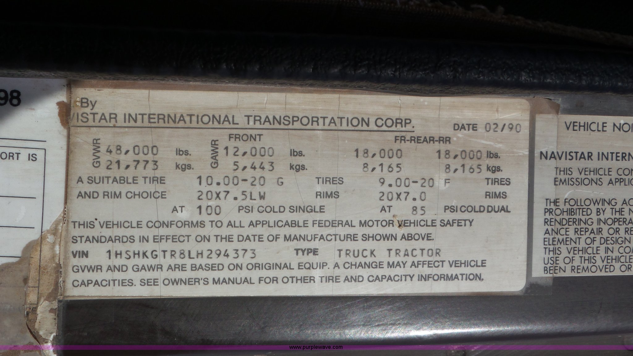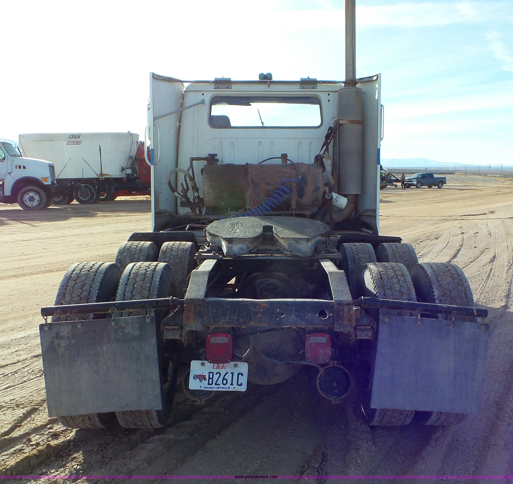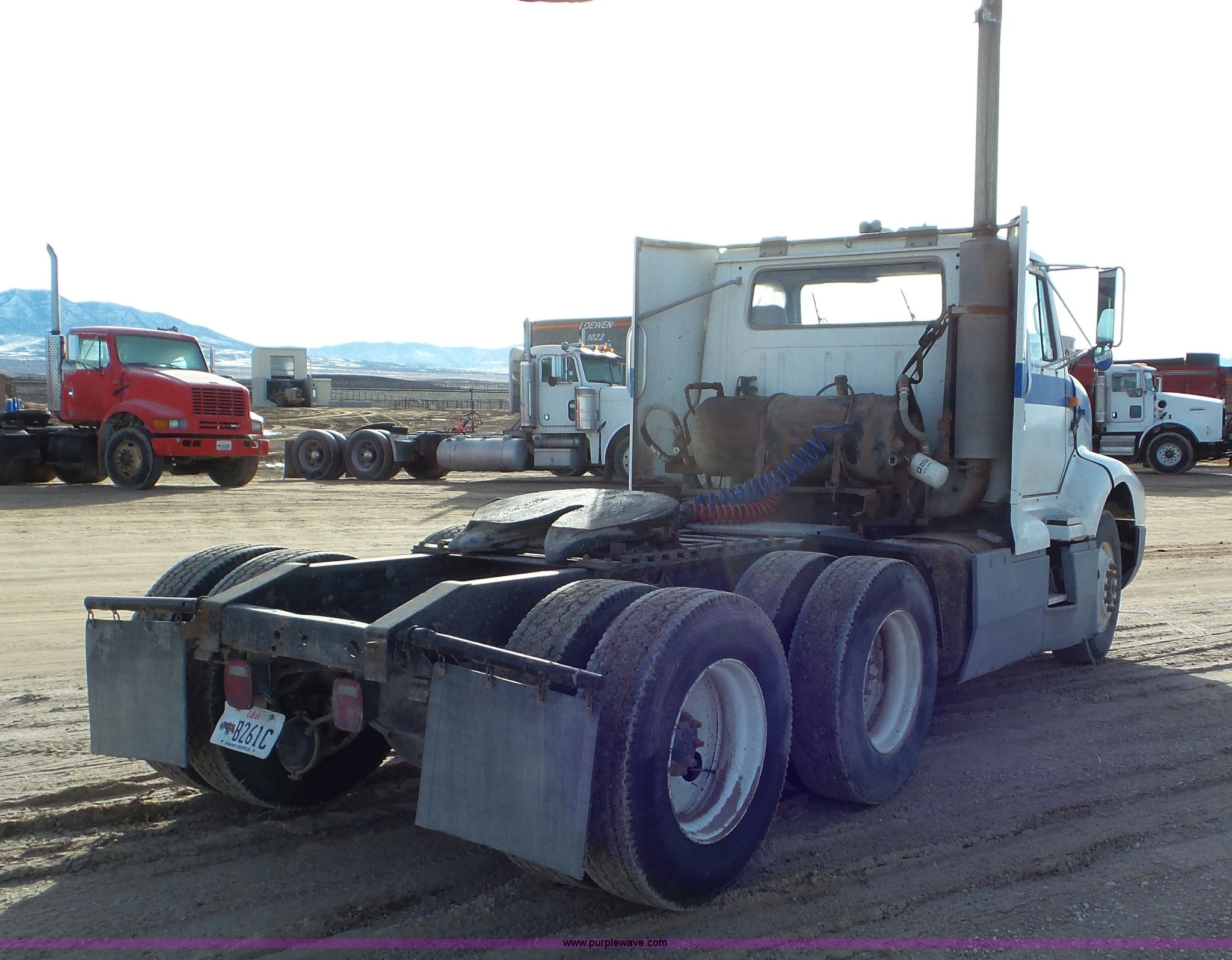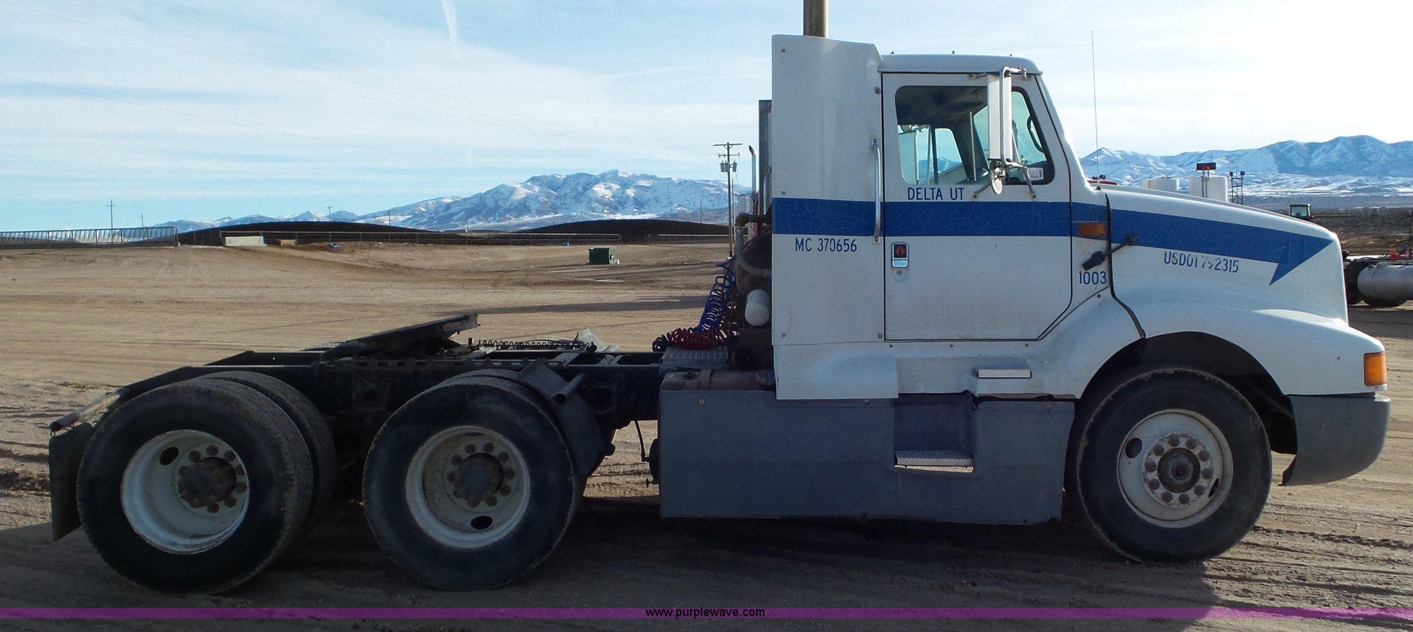 Purple Wave is selling a used Truck Tractor in Utah. This item is a 1990 International 8300 semi truck with the following: 522,014 miles on odometer, 5,529 hours on meter, Cummins 855 turbo diesel engine, 300 HP, Eaton Fuller Road Ranger nine speed manual transmission, Inter-axle differential lock, PTO, Wet kit, Tandem axle, AC and heat, AM/FM, Air suspension seat, Front tow hooks, Dual fuel tanks, Aluminum deck plate, Quarter fenders, Mud flaps, Single rear exhaust stack, Air operated sliding fifth wheel plate, Spring suspension, Air brakes, 295/75R22.5 tires, GVWR 48,000 lbs, FAWR 12,000 lbs, IAWR 18,000 lbs, RAWR 18,000 lbs