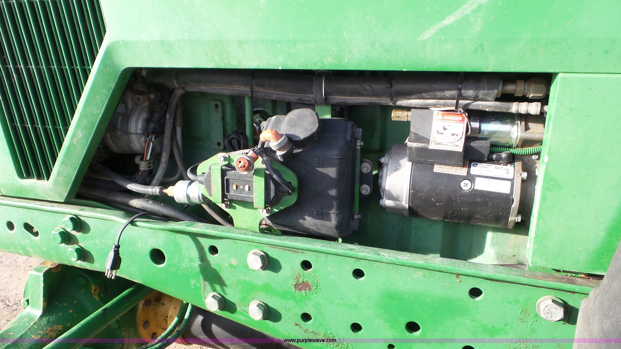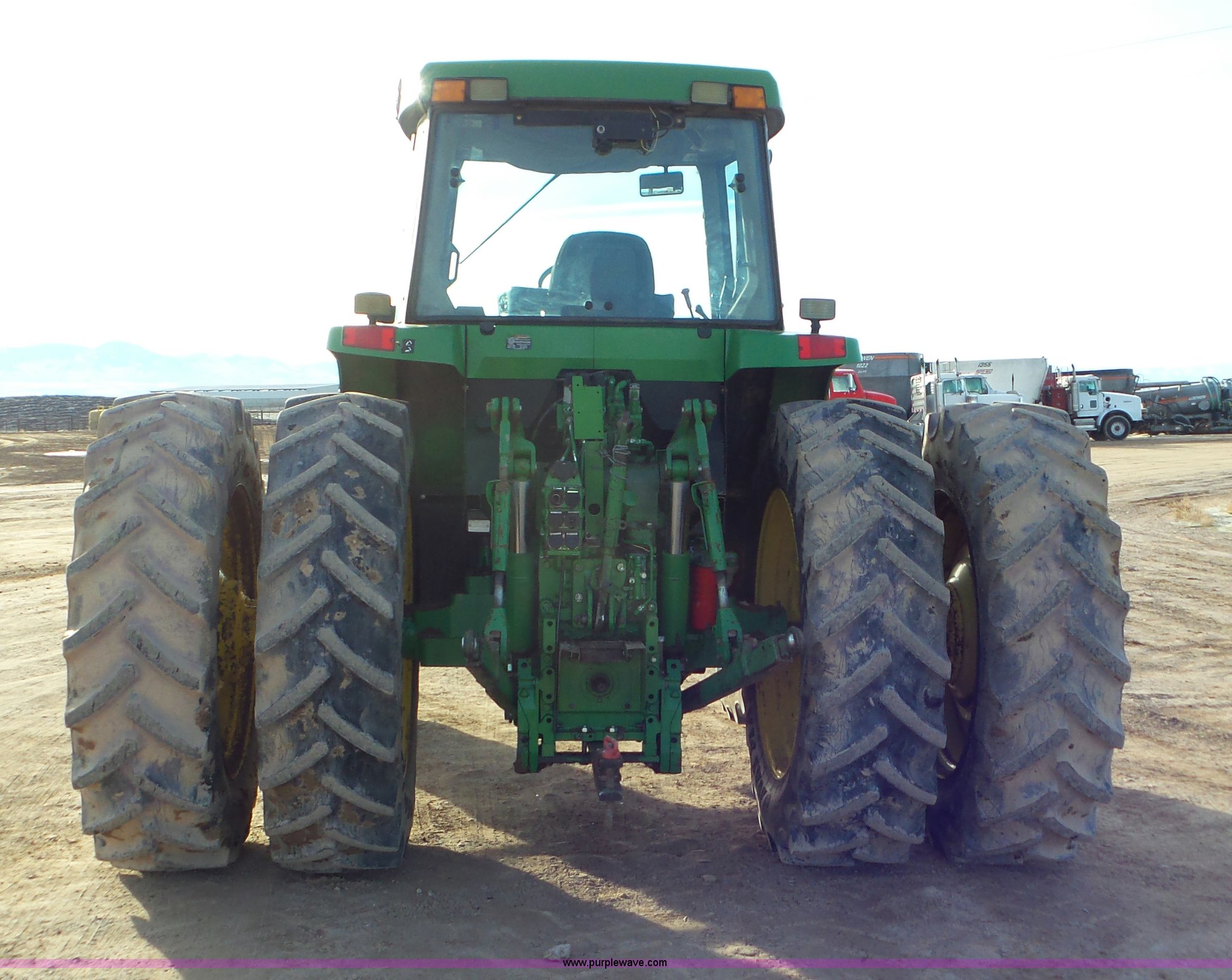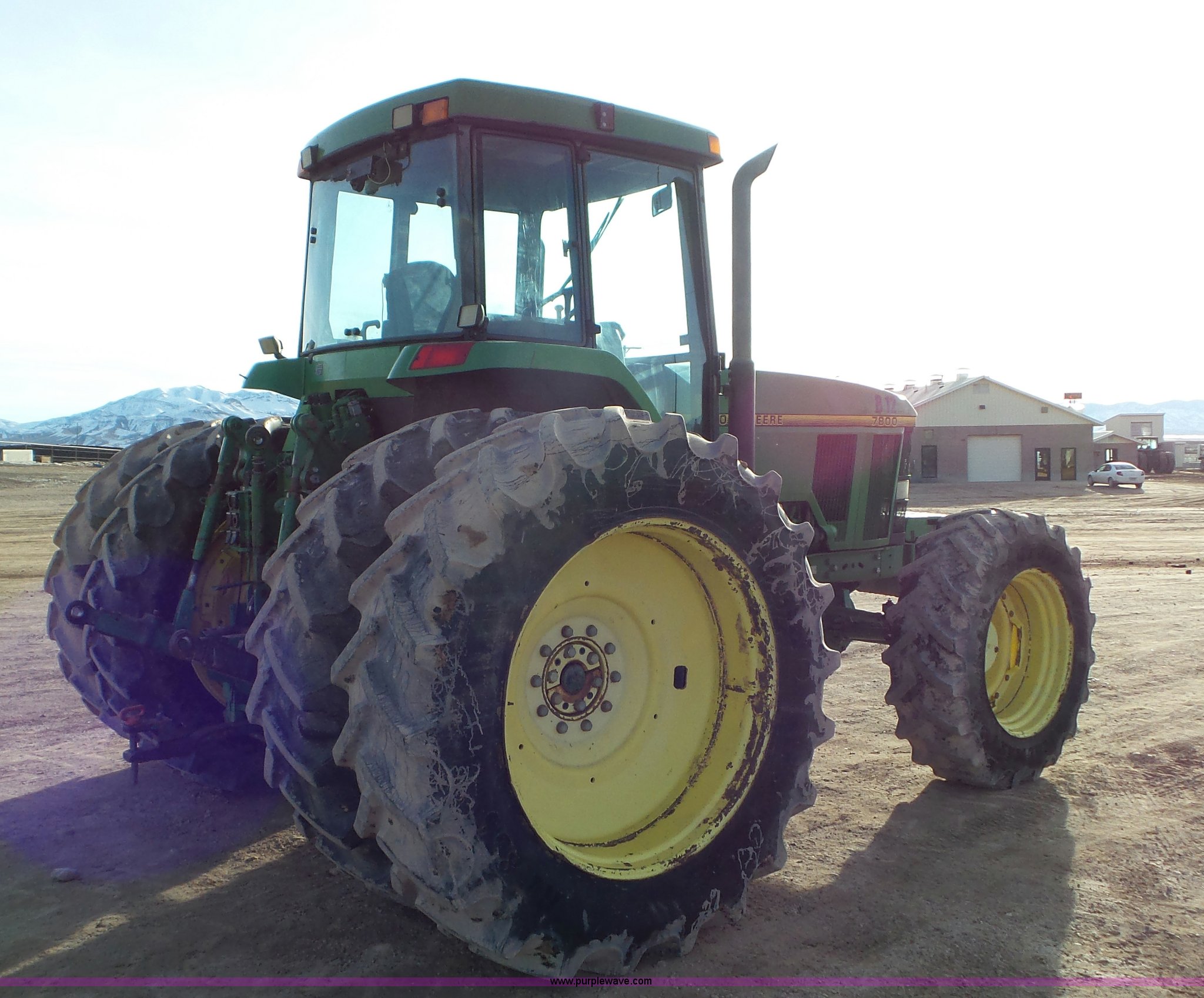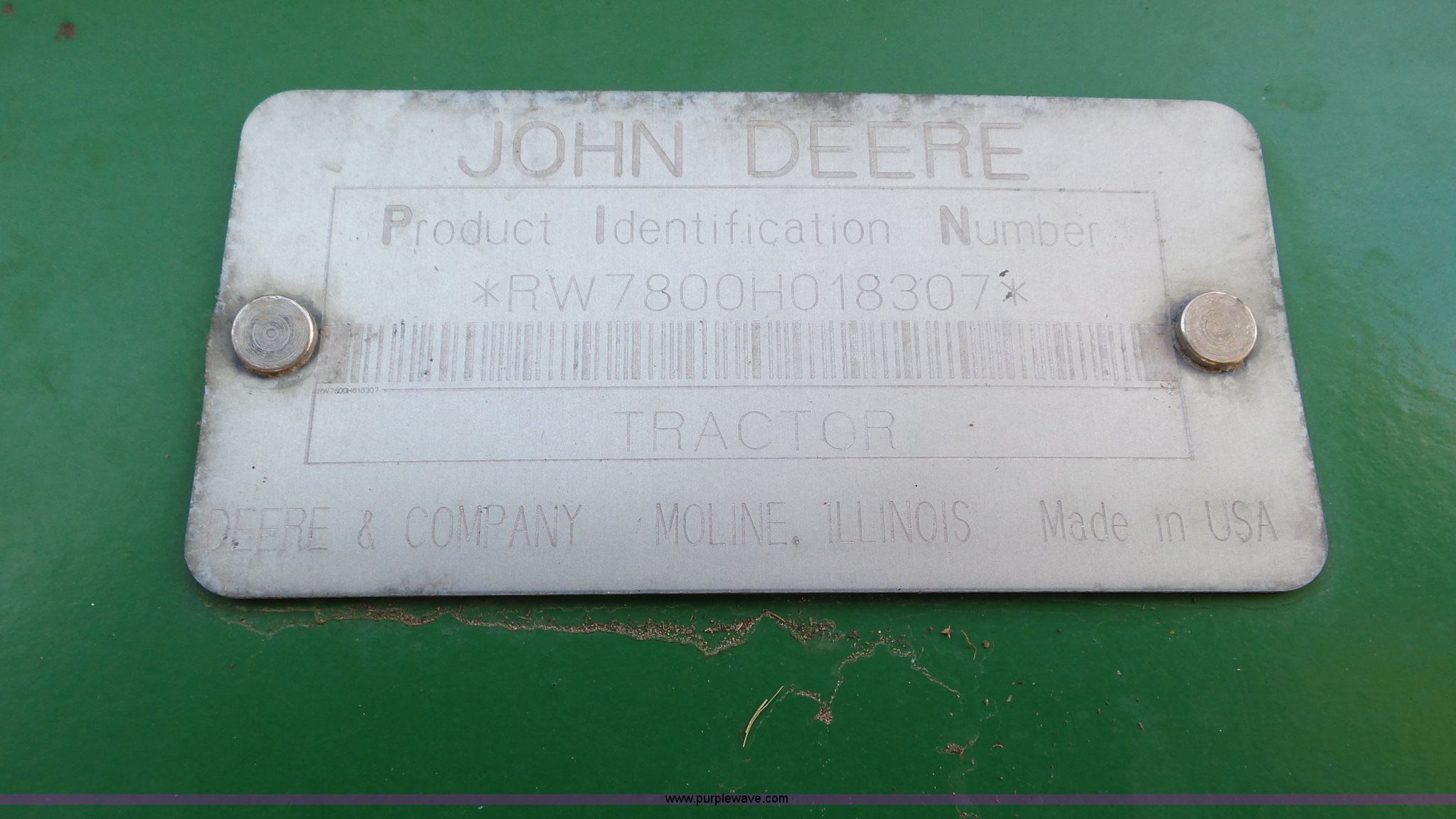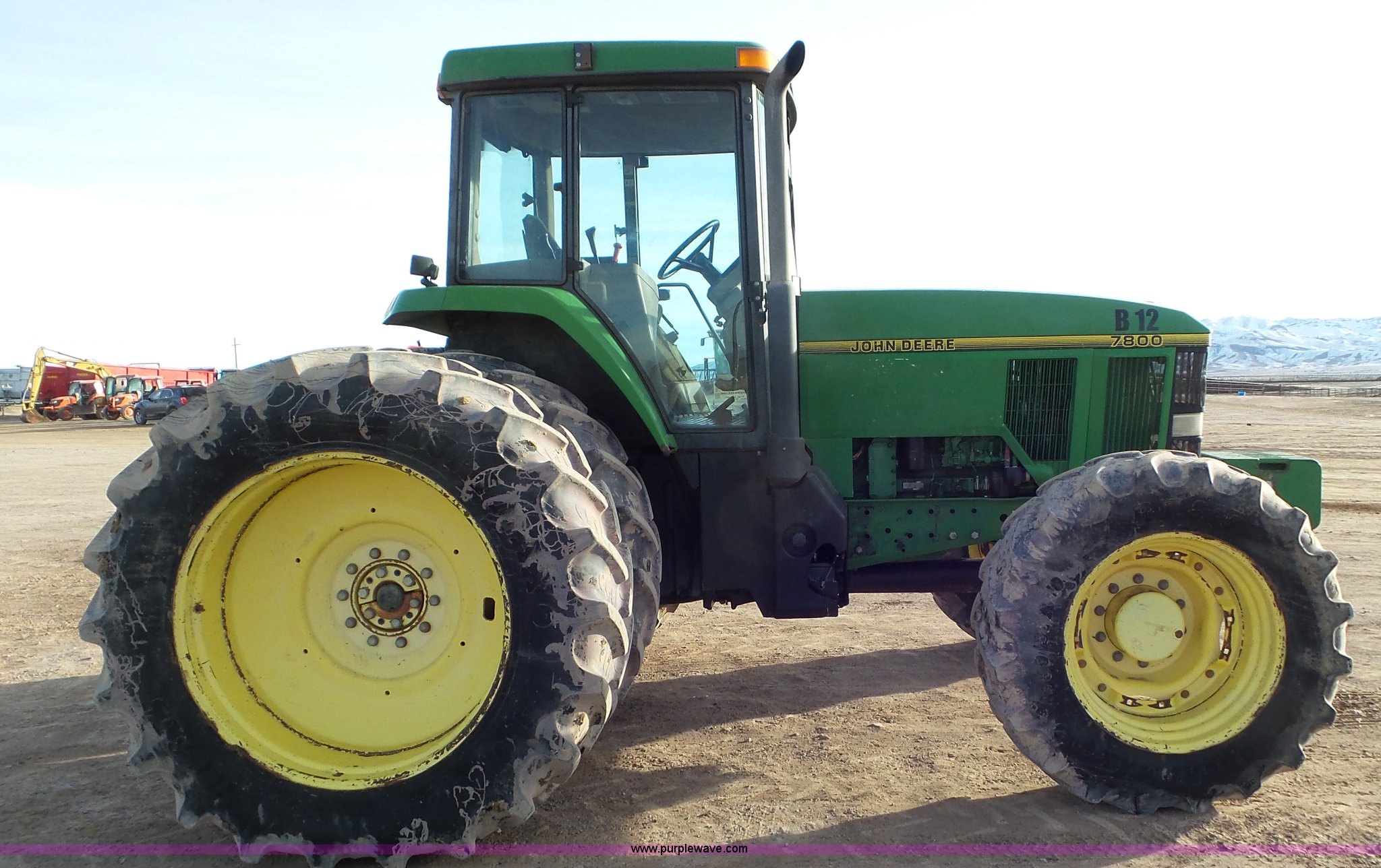 Purple Wave is selling a used Tractor in Utah. This item is a 1996 John Deere 7800 MFWD tractor with the following: 4,608 hours on meter, John Deere 6076TRW30 7.6L six cylinder turbo diesel engine, Quad-Range transmission, 16F-12R gears, Differential lock, AC and heat, AM/FM, Air suspension seat, Tilt steering wheel, Block heater, Three point, Top link, 1000 PTO, (3) rear hydraulic remote sets, (10) suitcase weights, 380/85R30 front tires, 480/80R42 dual rear tires, Transmission issue with first gear in power shift forward, Interior/exterior cosmetic damage, Serial RW7800H018307