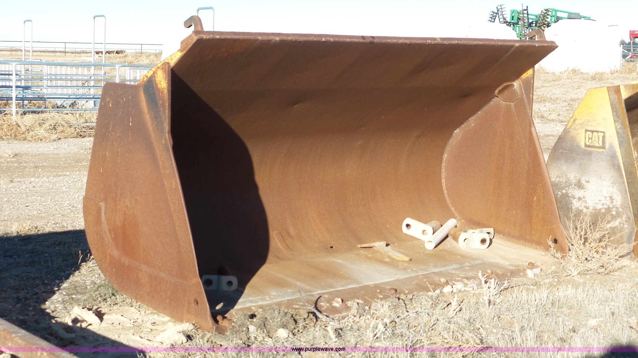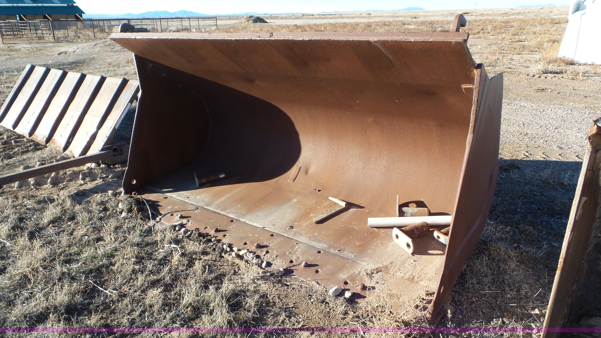 Purple Wave is selling a used Wheel Loader Attach. in Utah. This item is a Wheel loader bucket with the following: 9'W, Bolt-on cutting edge, 3 1/4" top pin diameter, 2.5" bottom pin diameter
