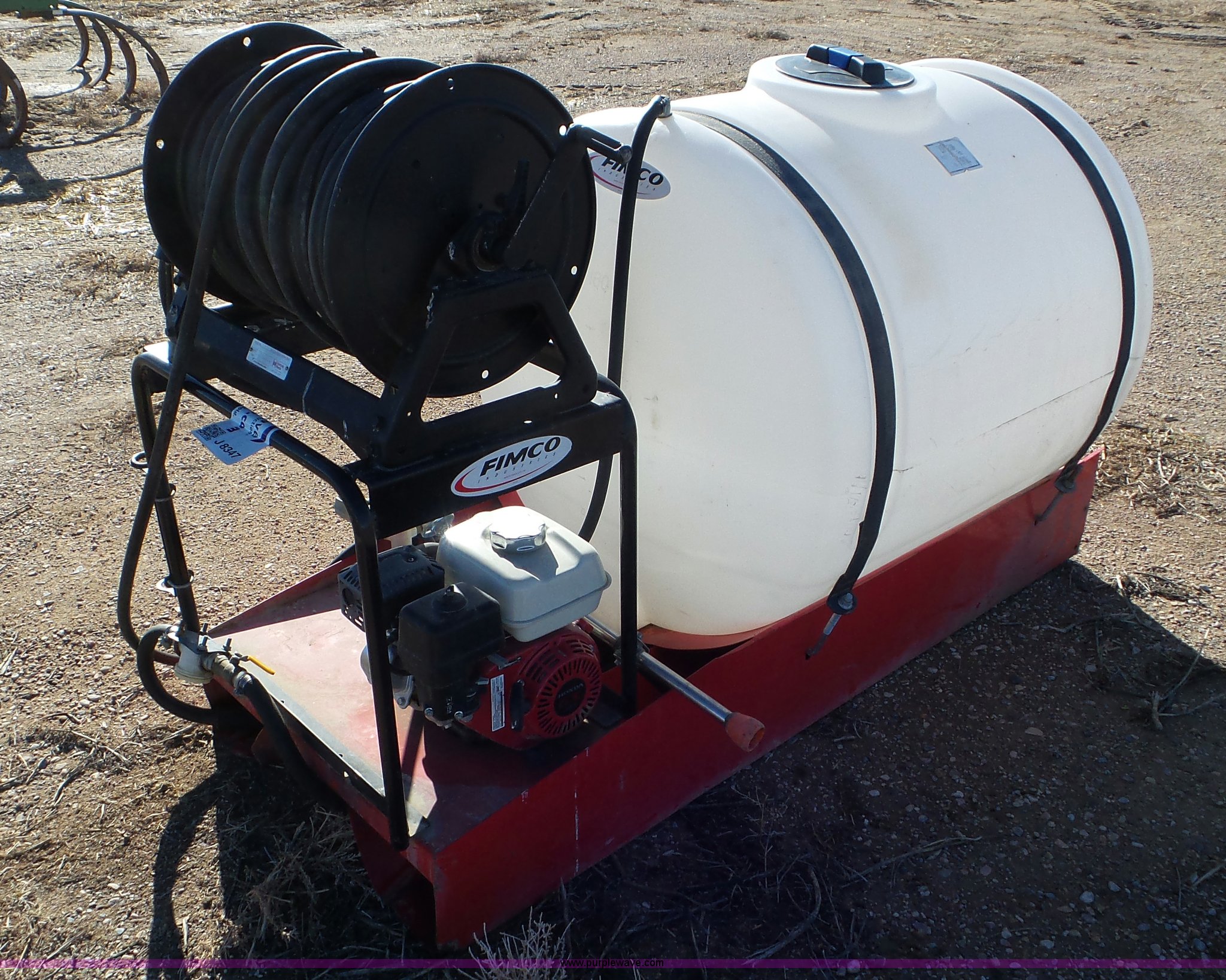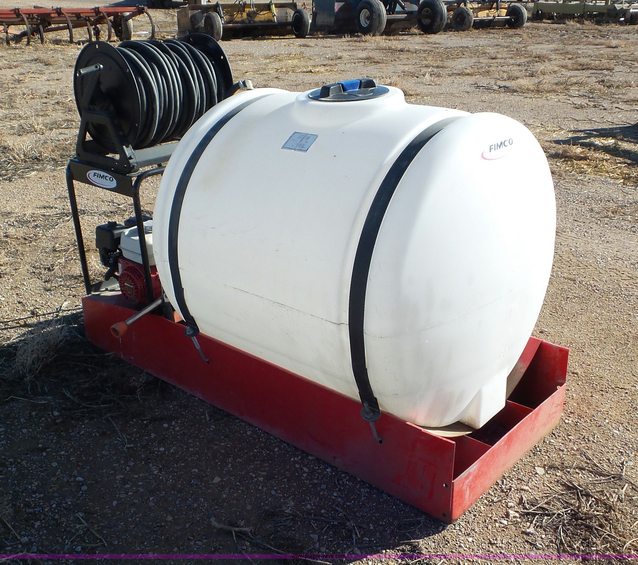 Purple Wave is selling a used Pressure Washer in Utah. This item is a Fimco pressure washer with the following: Honda GX160 gas engine, Hannay 160 water reel, 200 gallon poly tank, Gun, 72"L x 28"W skid