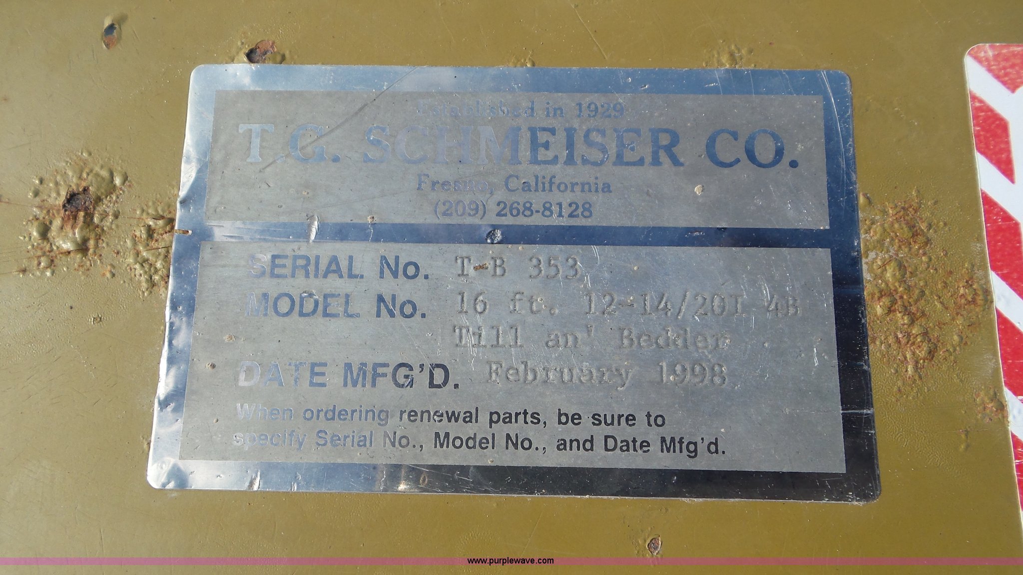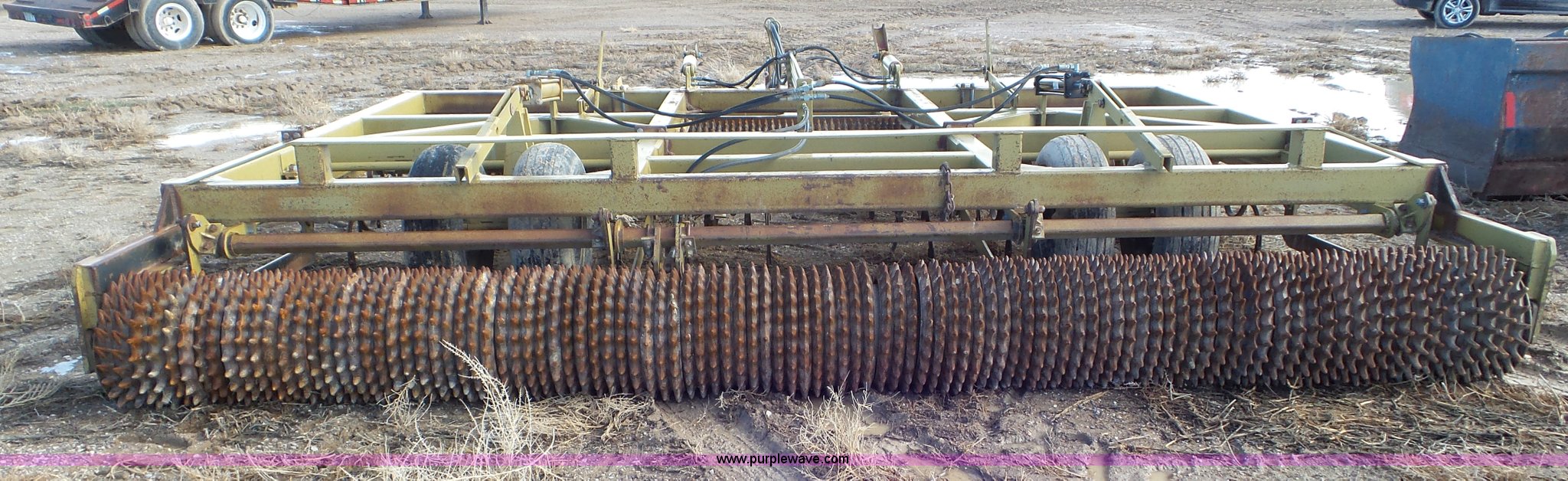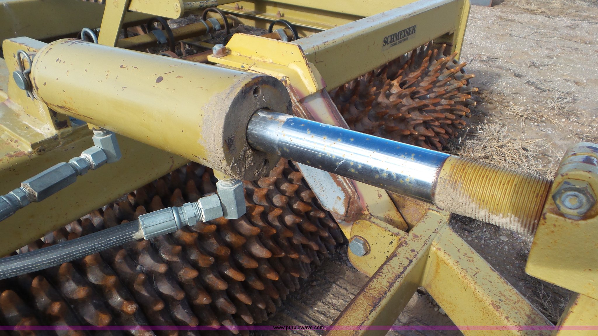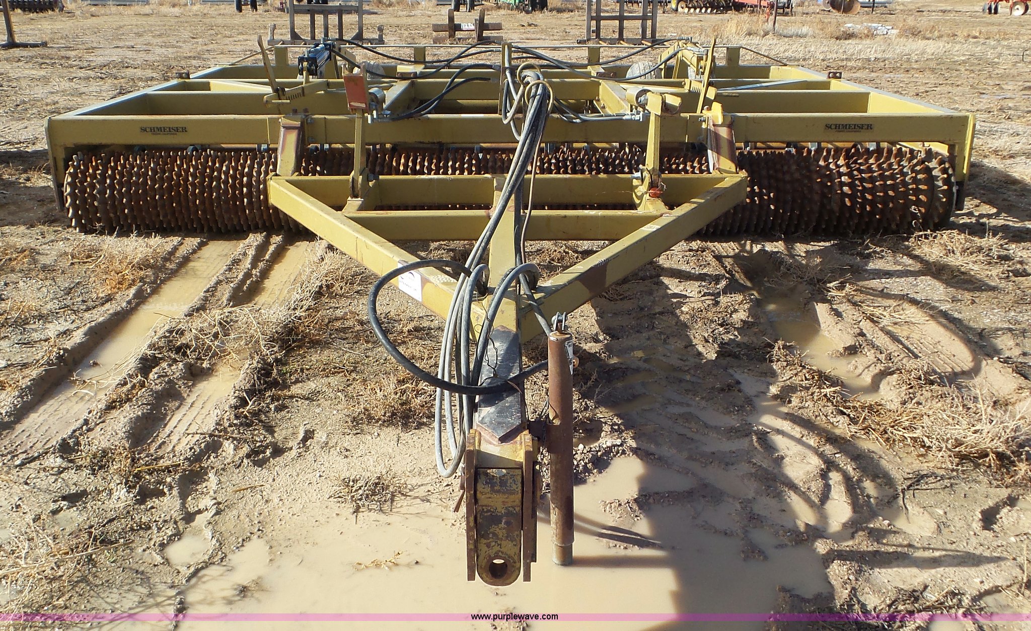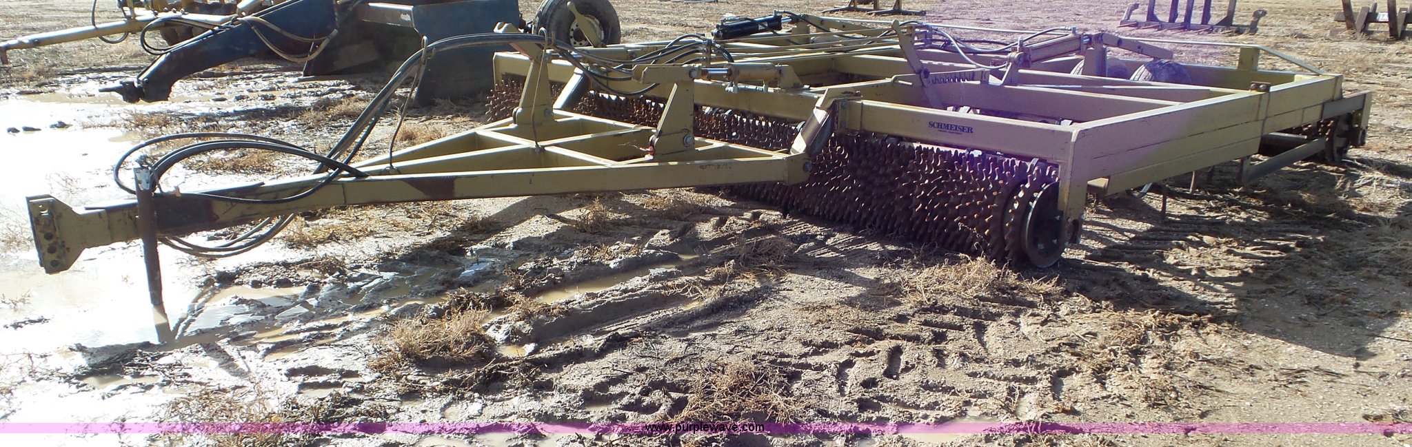 Purple Wave is selling a used Rotary Tillage in Utah. This item is a 1998 Schmeiser roller harrow with the following: 16'W, Solid spike wheels, (4) rows of s-tines, Hydraulic fold and lift, Pin hitch, 9.5-15 tires, Serial T-B353