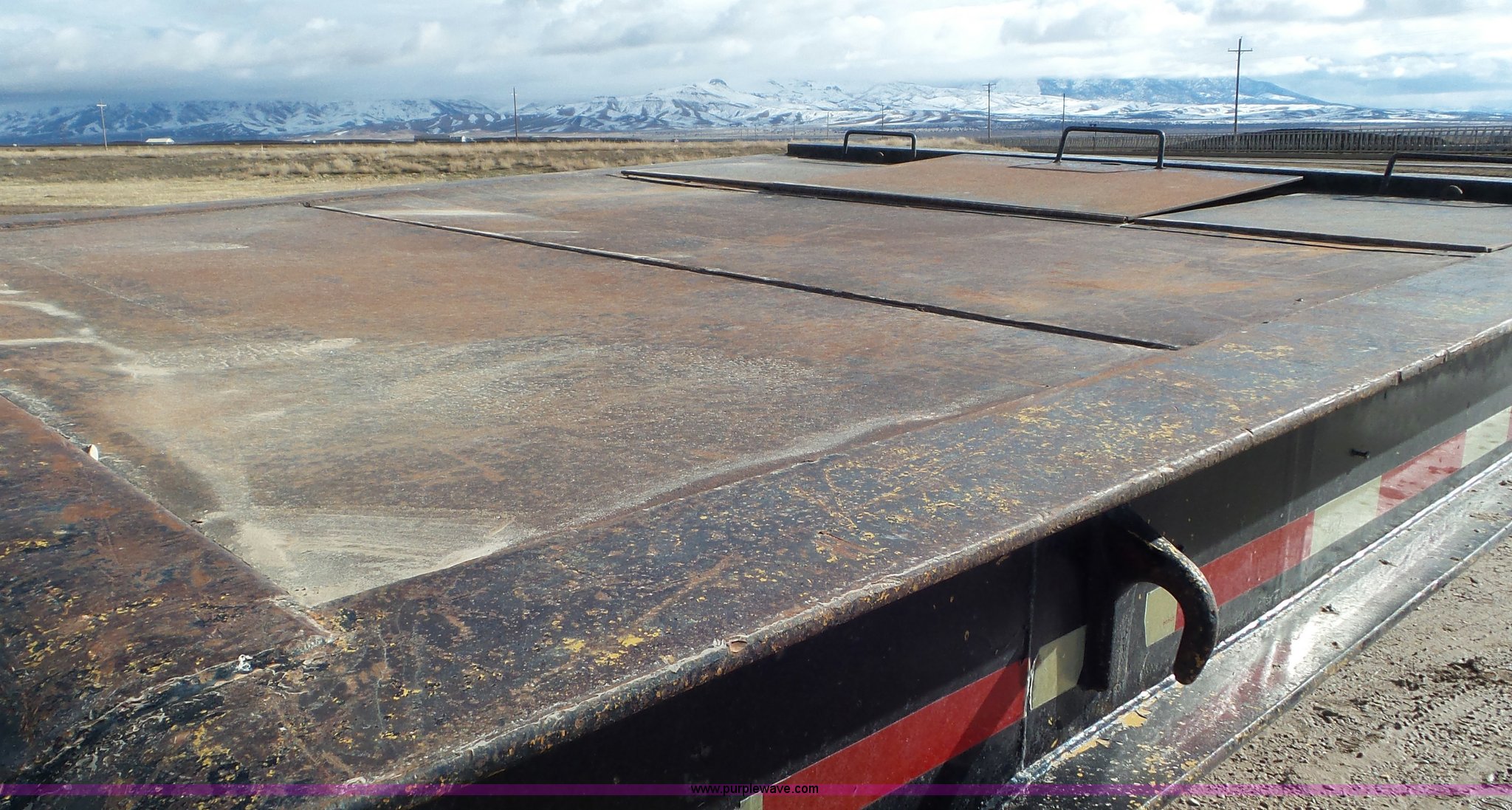 Purple Wave is selling a used Flat or Drop Deck Trailer in Utah. This item is a 1971 Fruehauf CN2-25-L drop deck trailer with the following: 35' overall length, 24'L x 8'W main deck, 9'L x 8'W upper deck, 3'L dovetail, Wood deck, D-ring tie downs, Swing out outriggers, Recessed toolbox, Dual leg landing gear, Fifth wheel plate, Tandem axle, Spring suspension, Air brakes, 285/75R24.5 tires
