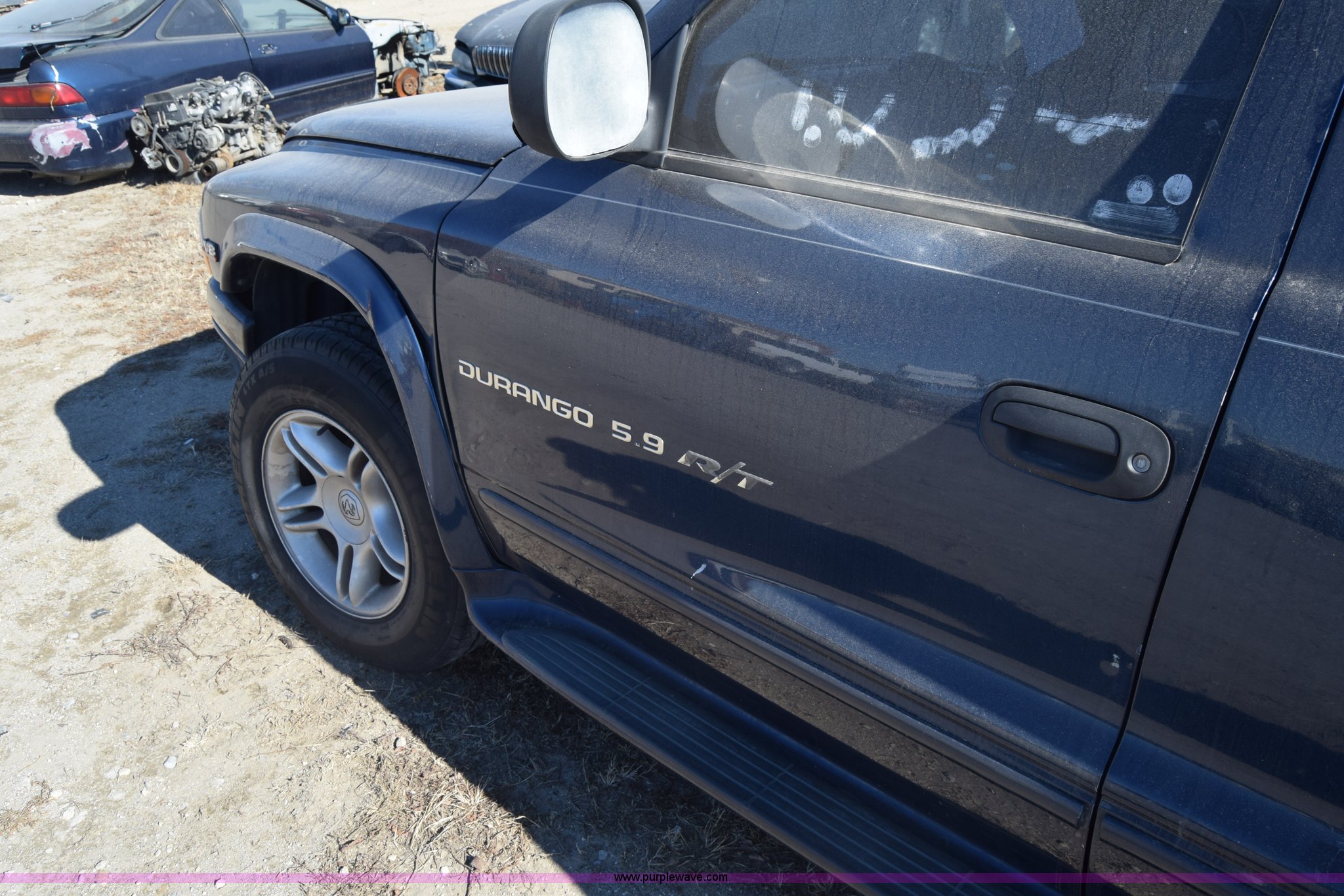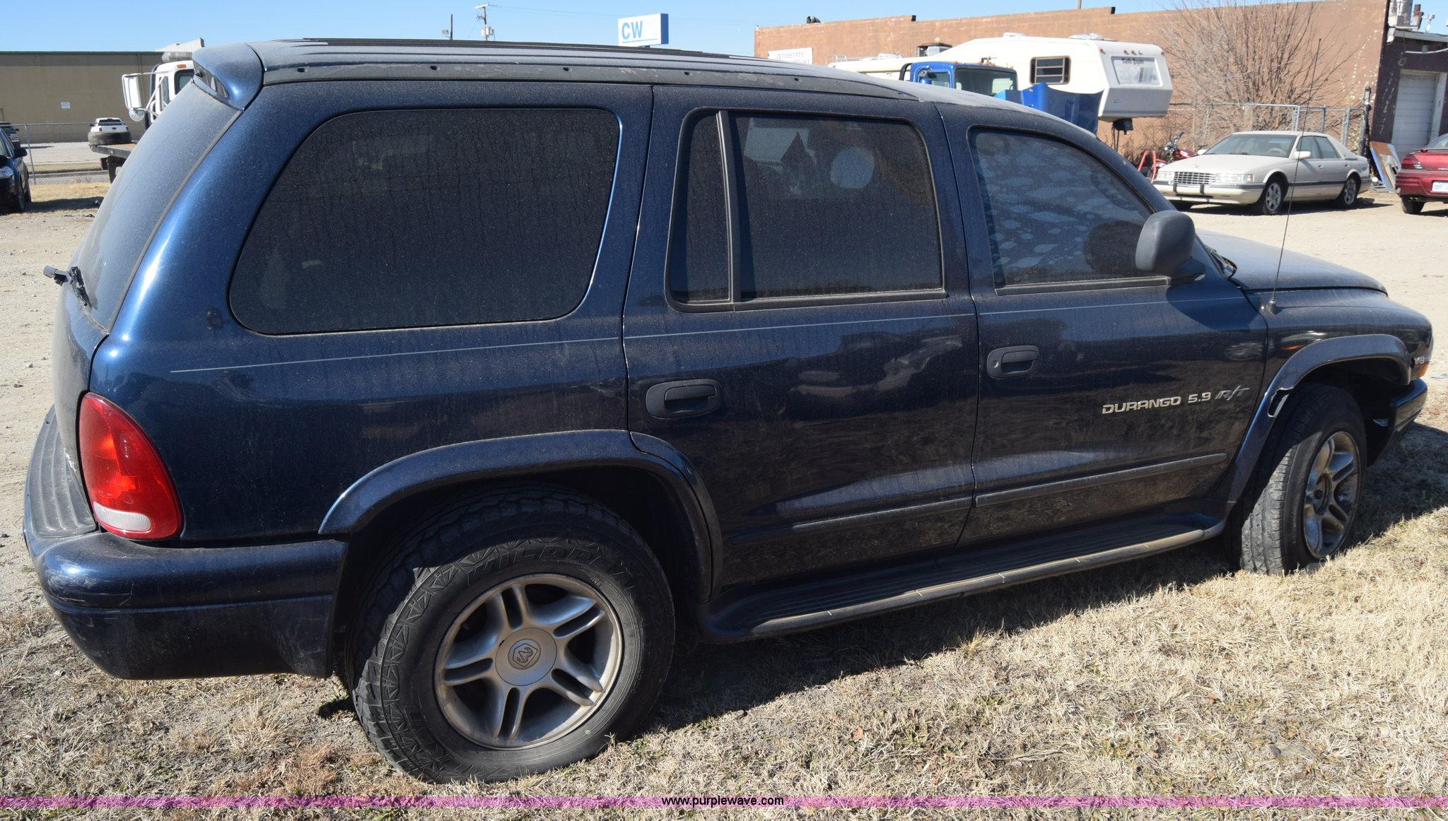 Purple Wave is selling a used Passenger Vehicle in Kansas. This item is a 2000 Dodge Durango SUV with the following: Unknown miles on odometer, 5.9L V8 OHV 16V gas engine, Automatic transmission, Four wheel drive, AC and heat, Tilt, Cruise, Power windows, locks, mirrors, and seats, Leather interior, Fog lights, Running boards, Receiver hitch, 265/70R17 tires, Radio missing, Dents and scratches, Tires flat, Interior/exterior cosmetic damage, Case# 15C71465