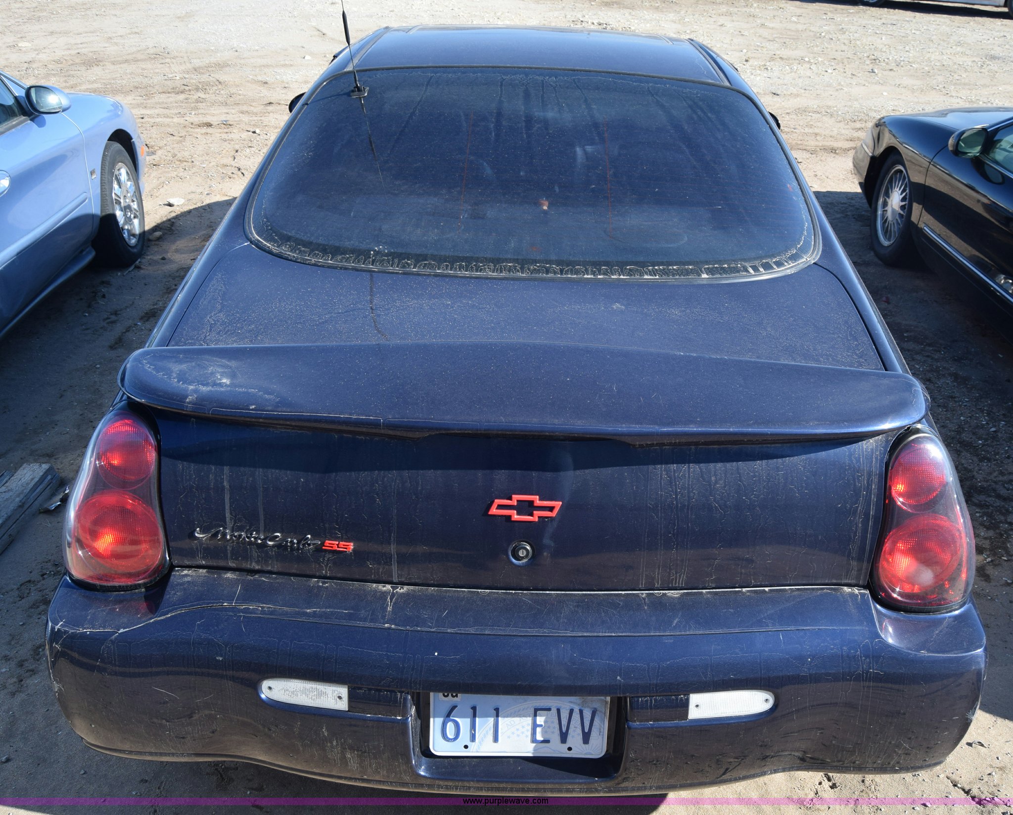 Purple Wave is selling a used Passenger Vehicle in Kansas. This item is a 2001 Chevrolet Monte Carlo SS with the following: Unknown miles on odometer, 3.8L V6 OHV 12V gas engine, Automatic transmission, AC and heat, Tilt, Cruise, Power windows, locks, mirrors, and seats, Leather interior, 235/50R18 tires, Keys, Dents and scratches, Radio face plate removed, Interior/exterior cosmetic damage, Case# 15C069438