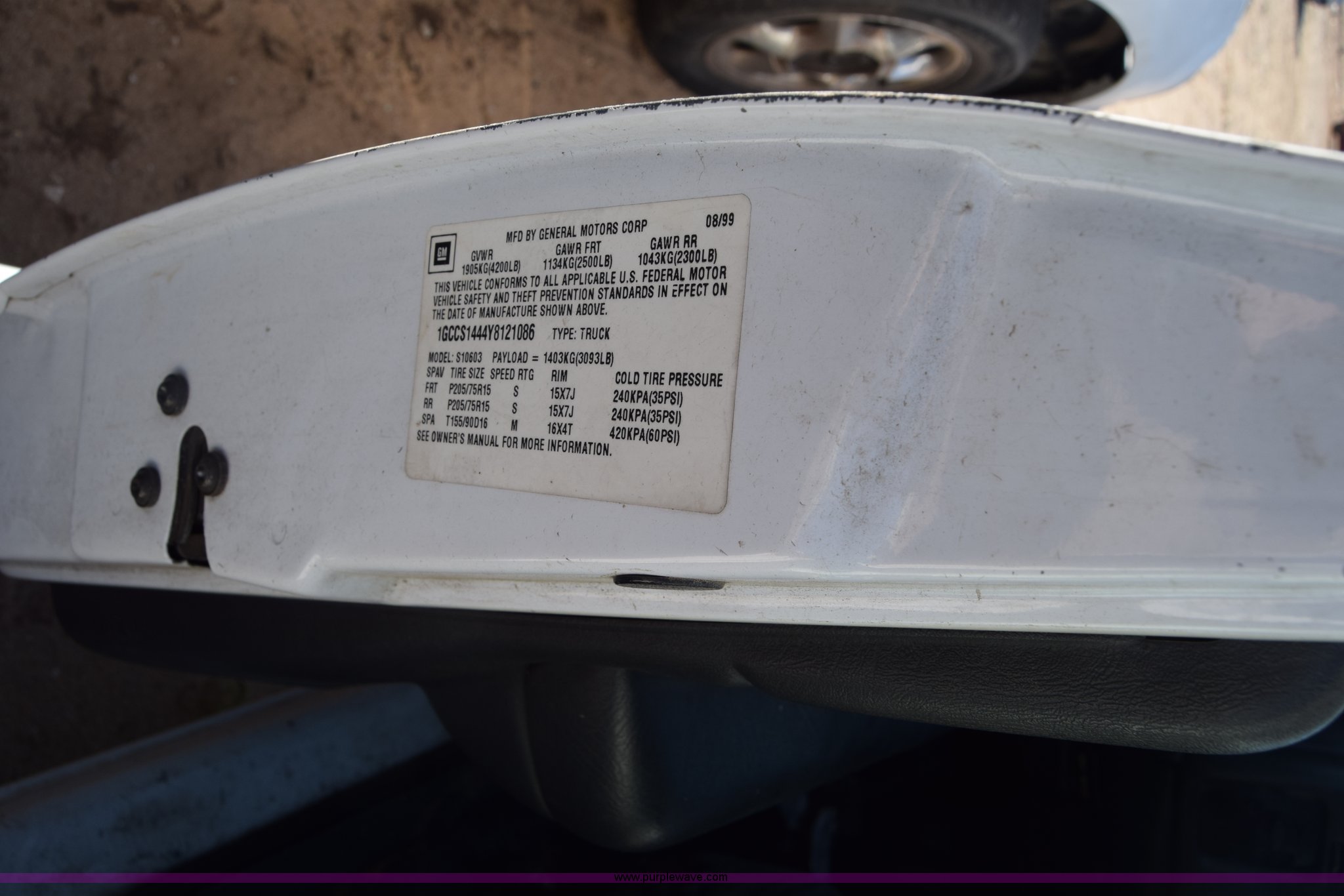 Purple Wave is selling a used Compact Pickup or Van in Kansas. This item is a 2000 Chevrolet S10 pickup truck with the following: Unknown miles on odometer, 2.2L L4 OHV 8V gas engine, Four speed manual transmission, AC and heat, AM/FM/CD, Manual windows and locks, Cloth interior, 215/70R15 tires, Interior/exterior cosmetic damage, Dents and scratches, Case# 15C072831